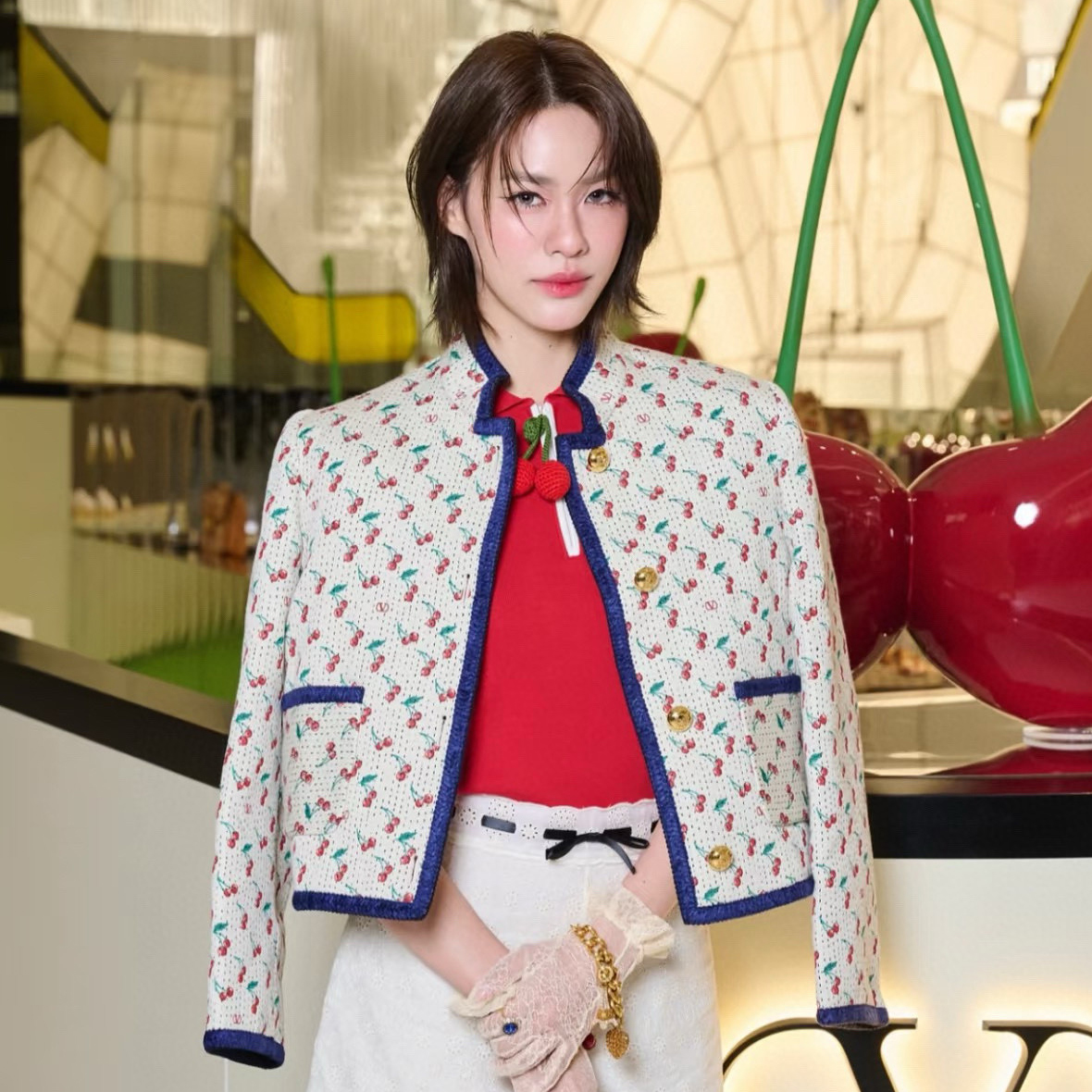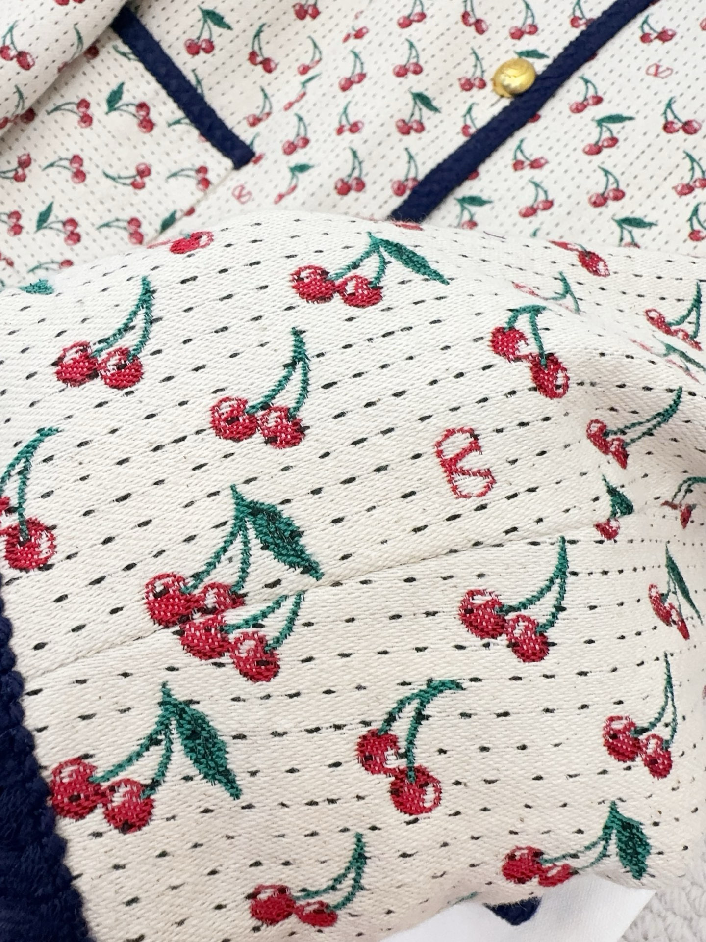 NIGO Valentino CHERRYFIC Women's Fall/Winter Fashion Casual Crew Neck Single Button Cherry Embroidery Jacquard Lined Short Jacket #nigo79124