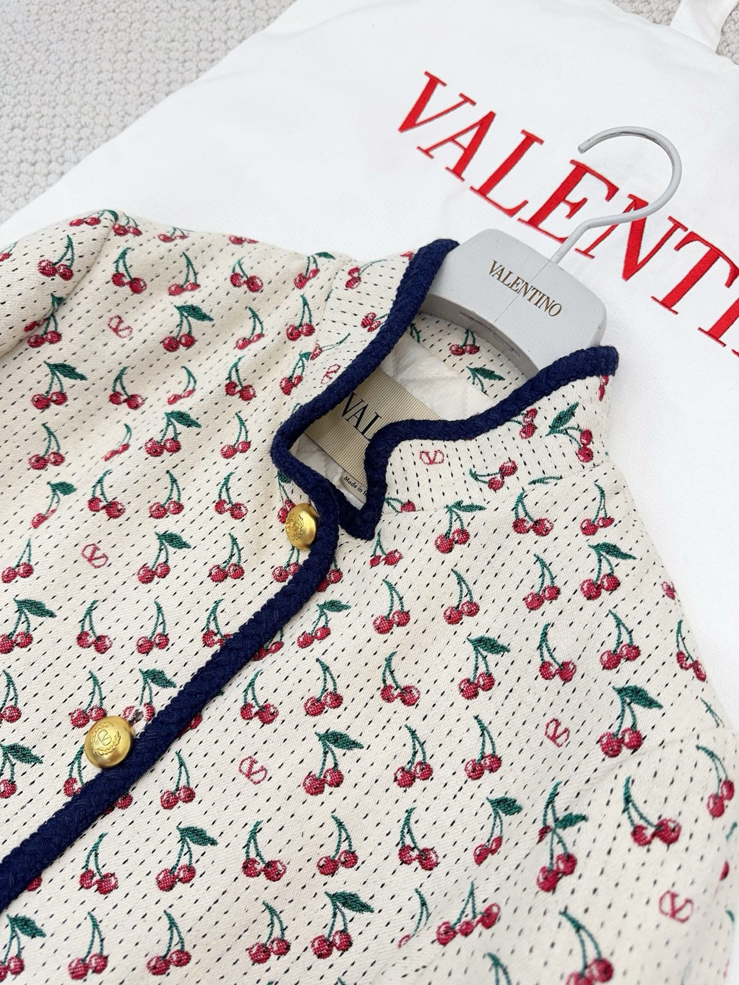 Home / Valentino / NIGO Valentino CHERRYFIC Women's Fall/Winter Fashion Casual Crew Neck Single Button Cherry Embroidery Jacquard Lined Short Jacket #nigo79124