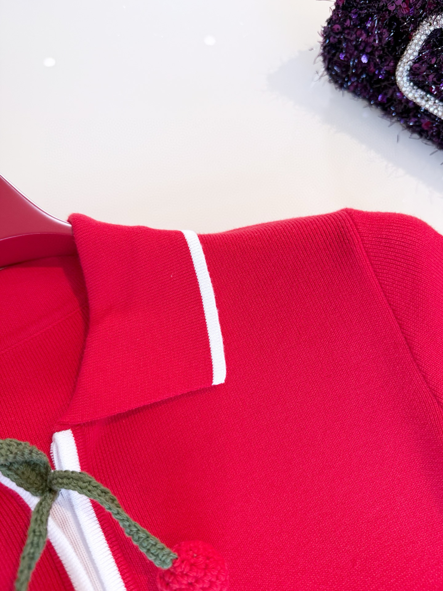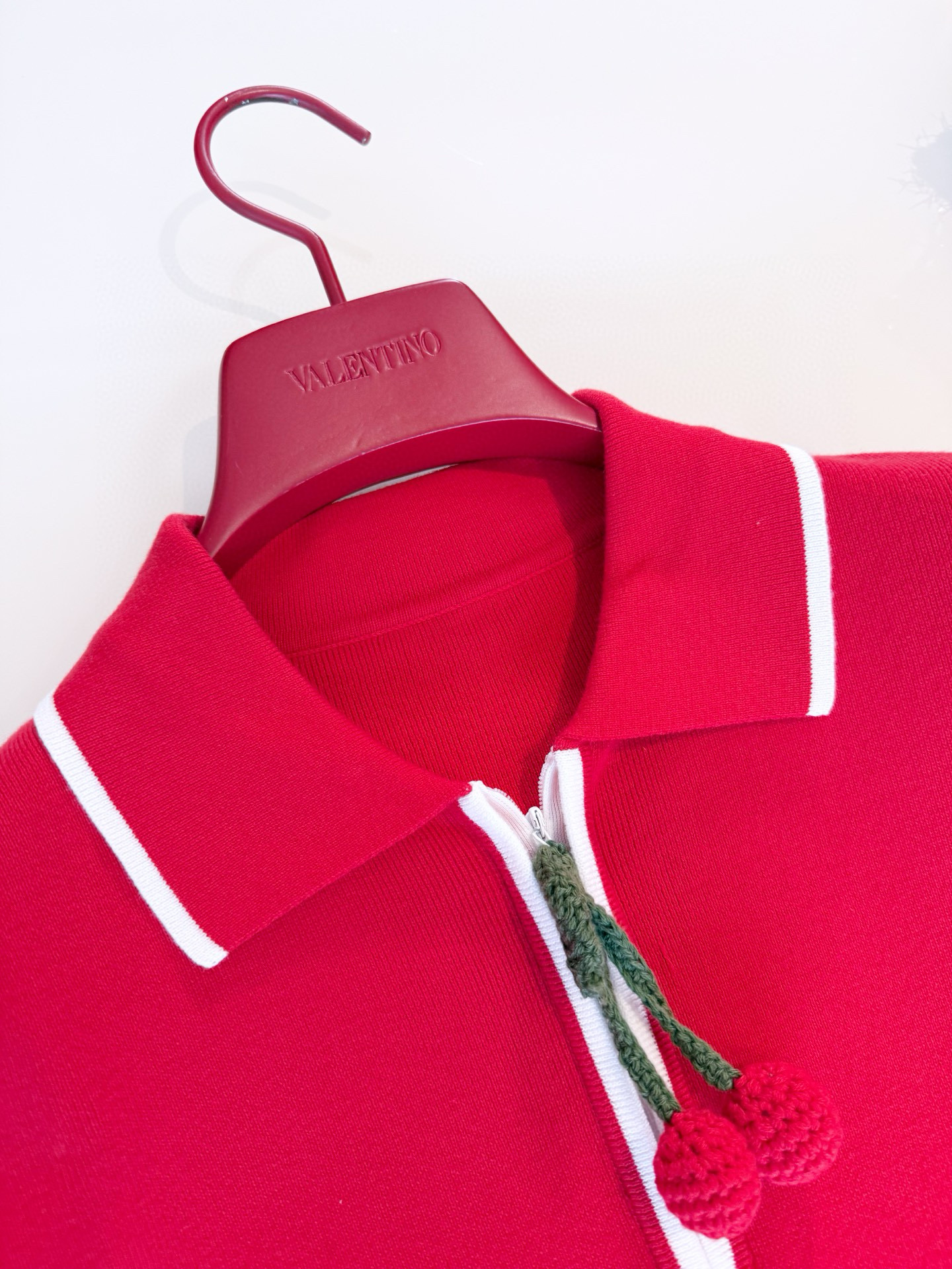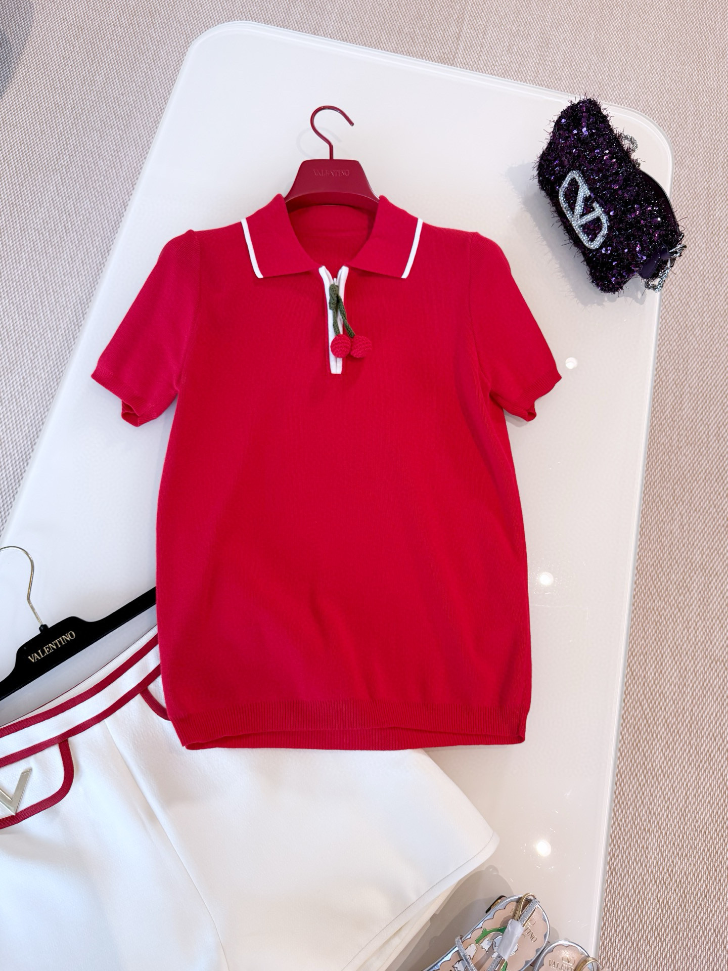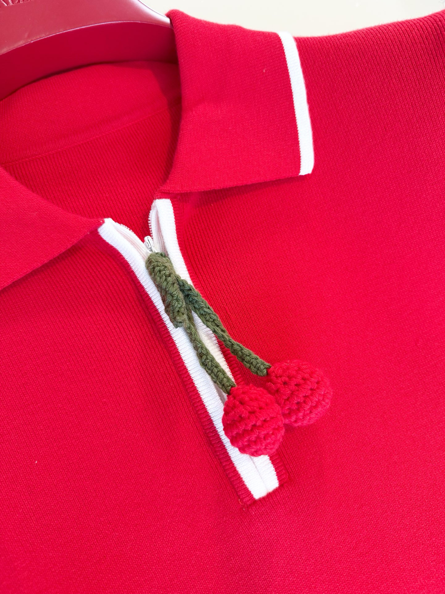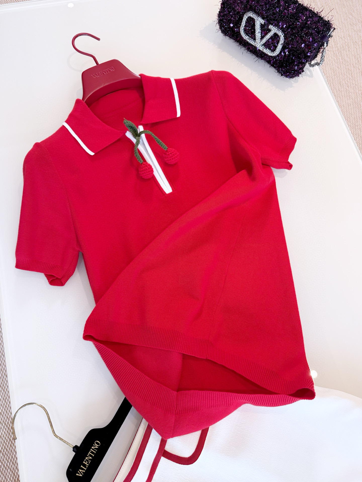 NIGO Valentino Cotton Top With Cherry Women's Spring And Summer Red Knit Polo Collar Top Fashion Casual Temperament Youthful Vigor T-shirt Ngvp #nigo1965