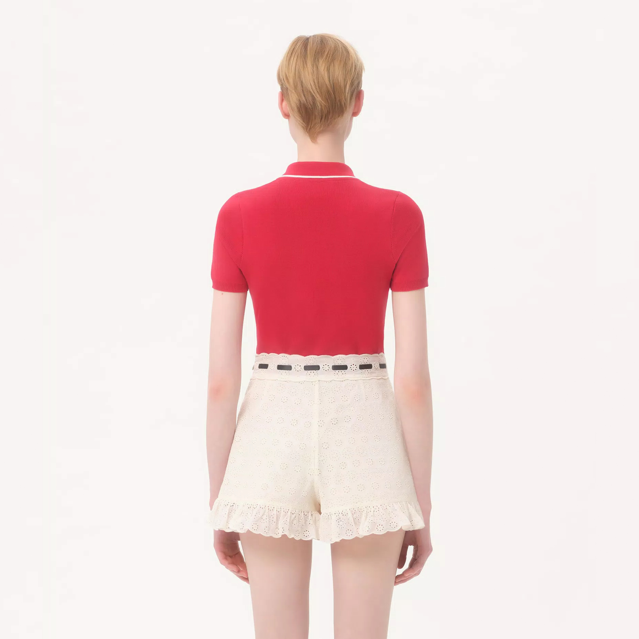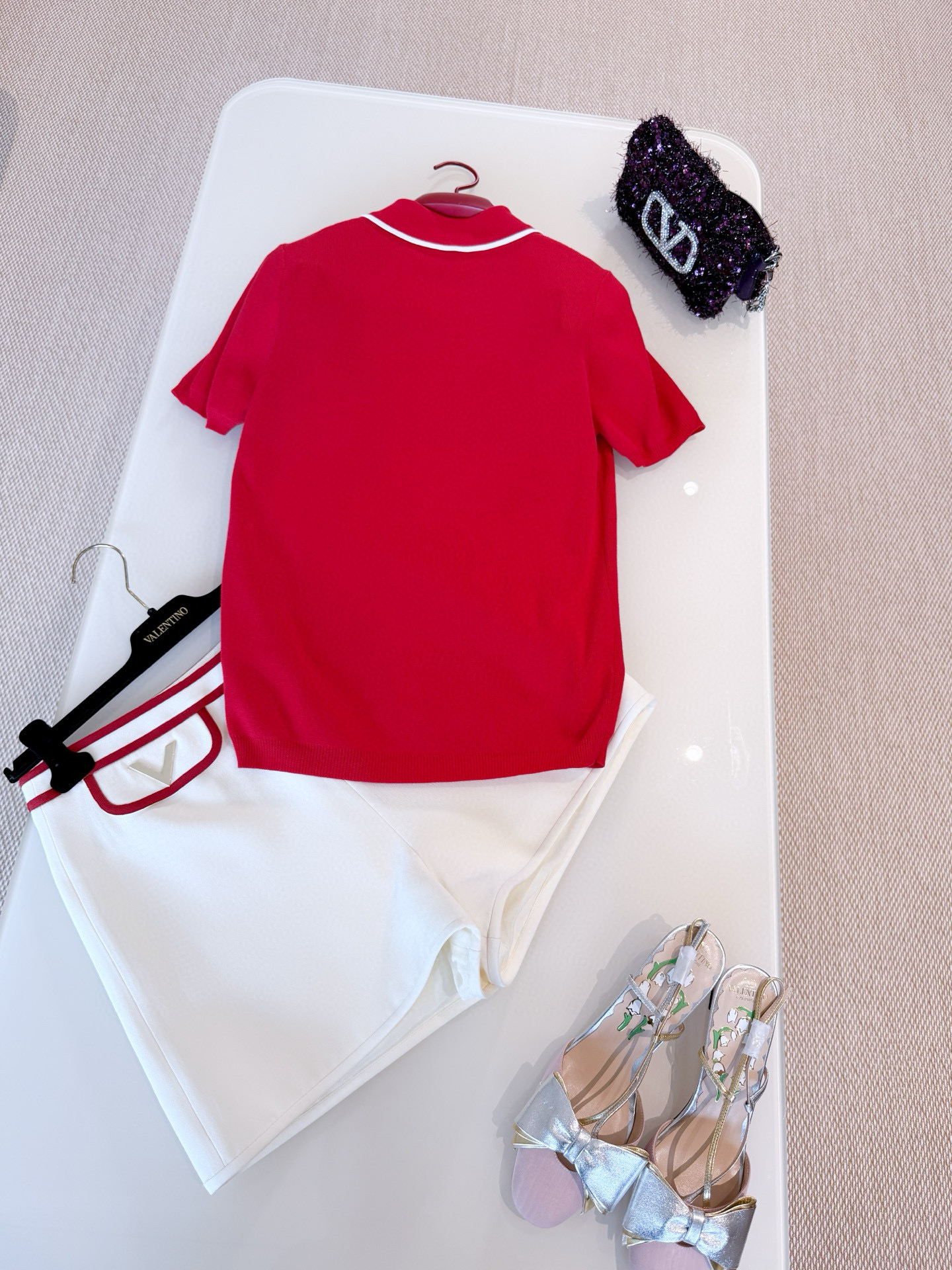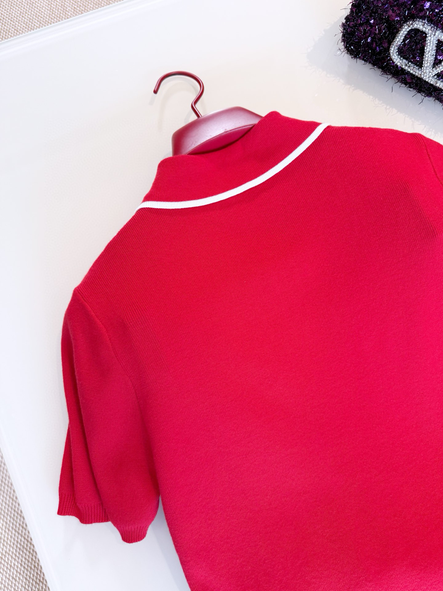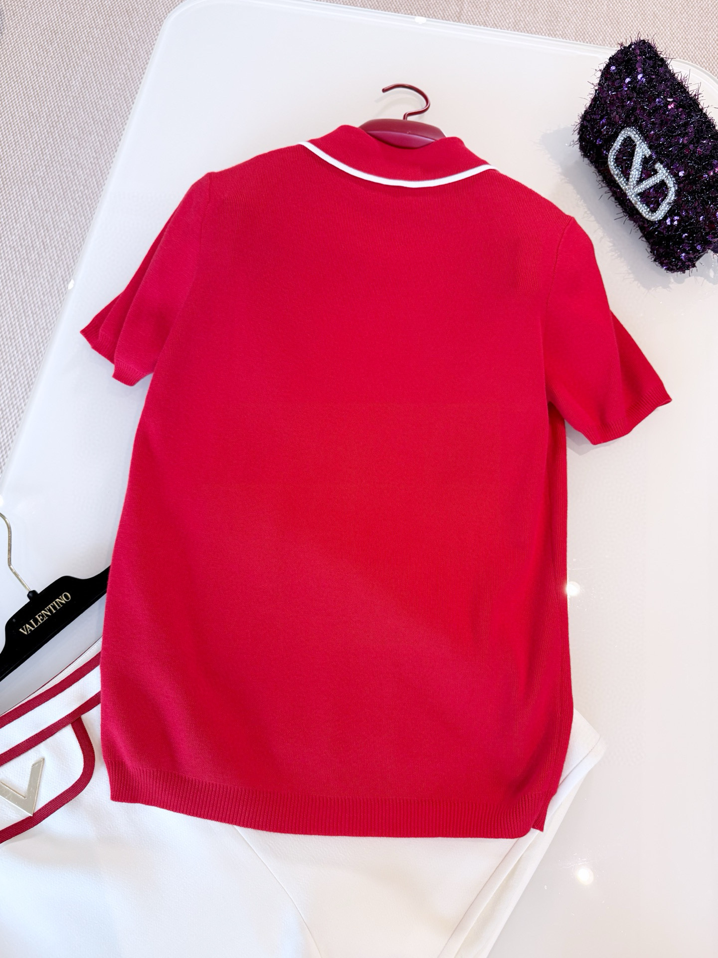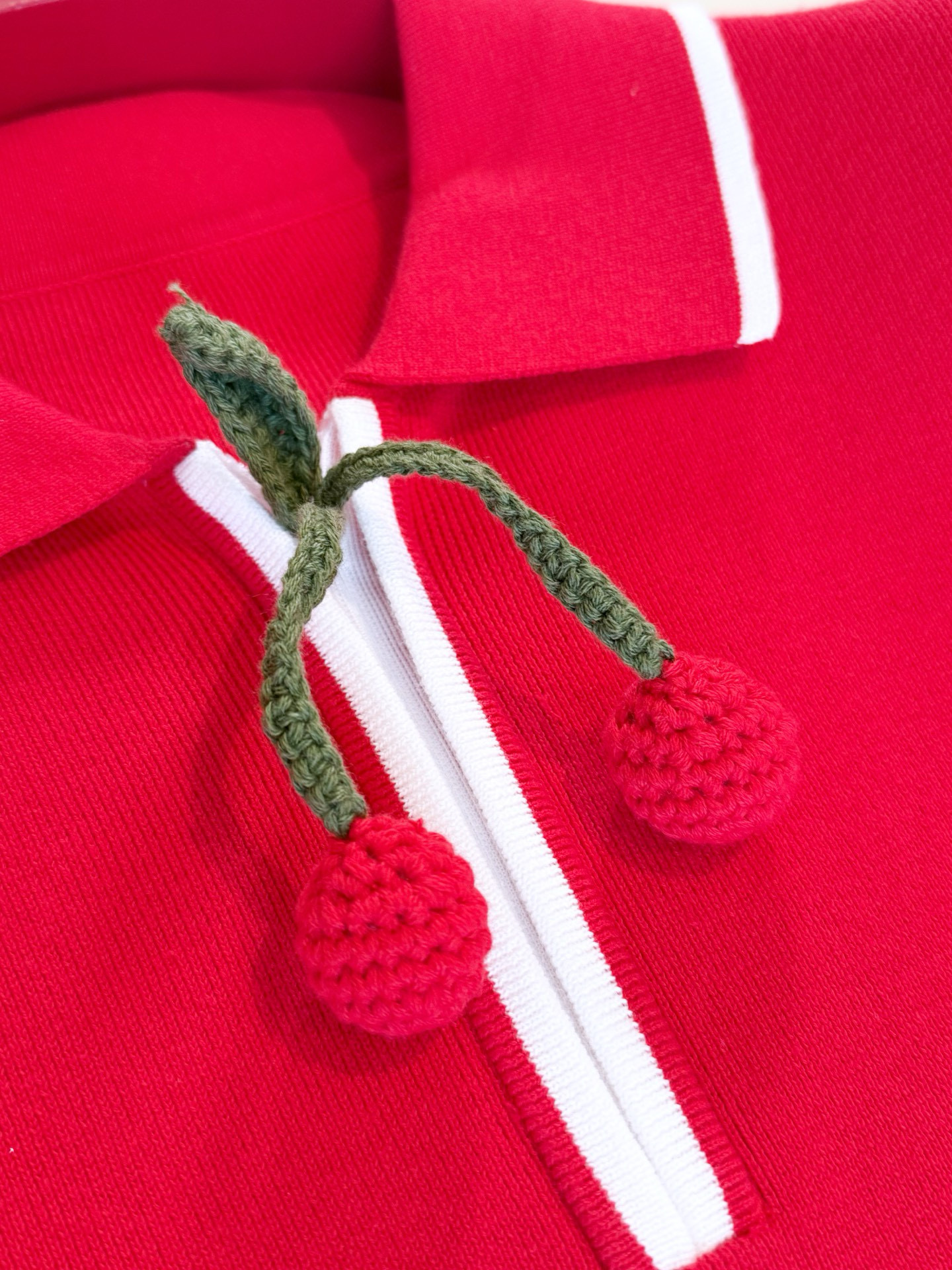 NIGO Valentino Cotton Top With Cherry Women's Spring And Summer Red Knit Polo Collar Top Fashion Casual Temperament Youthful Vigor T-shirt Ngvp #nigo1965