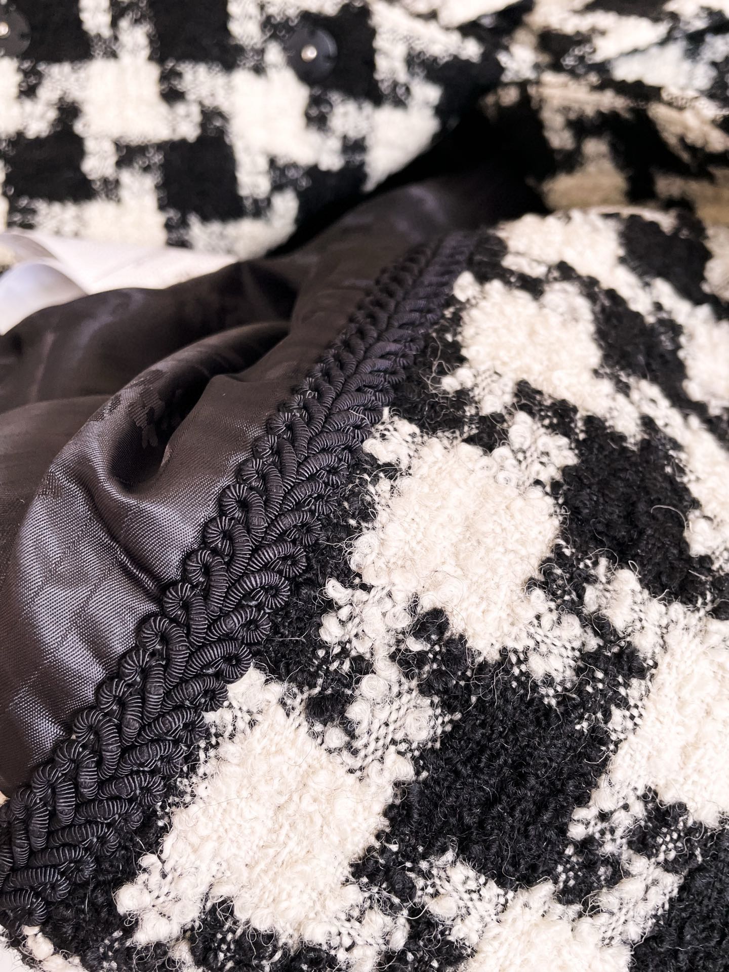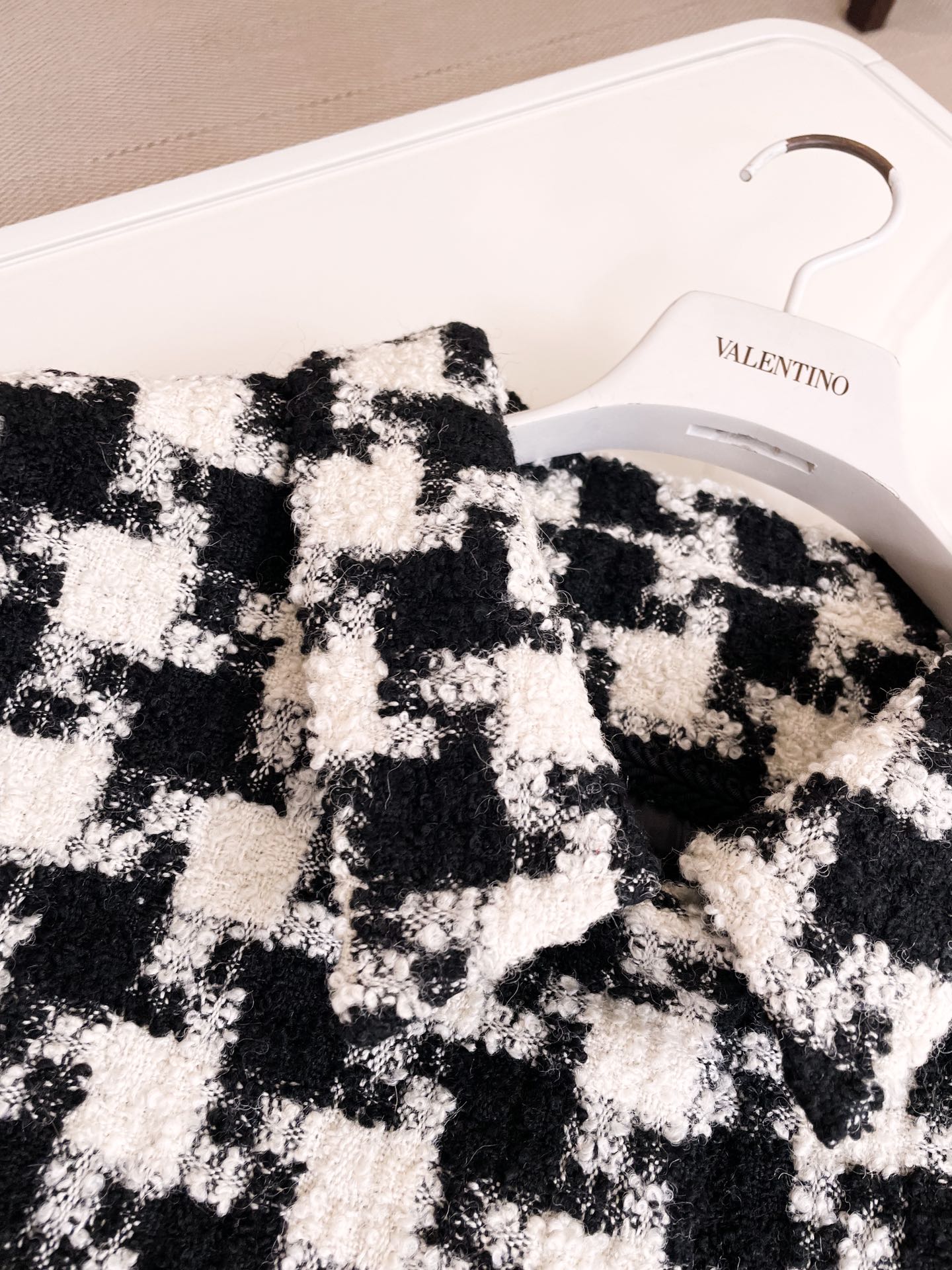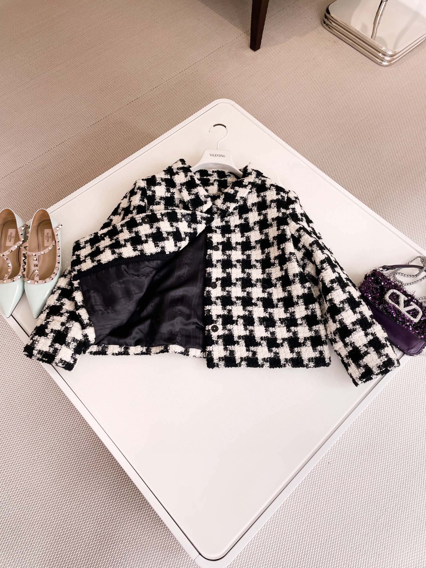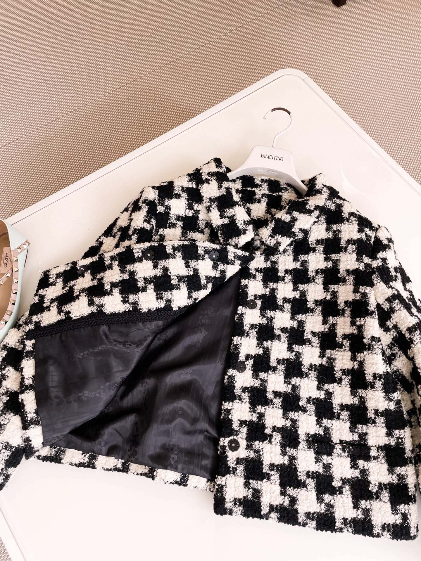 NIGO Valentino Women's Autumn and Winter Black and White Chibi Check Wool Tweed Lapel Single Breasted Long Sleeve Jacket #nigo75231