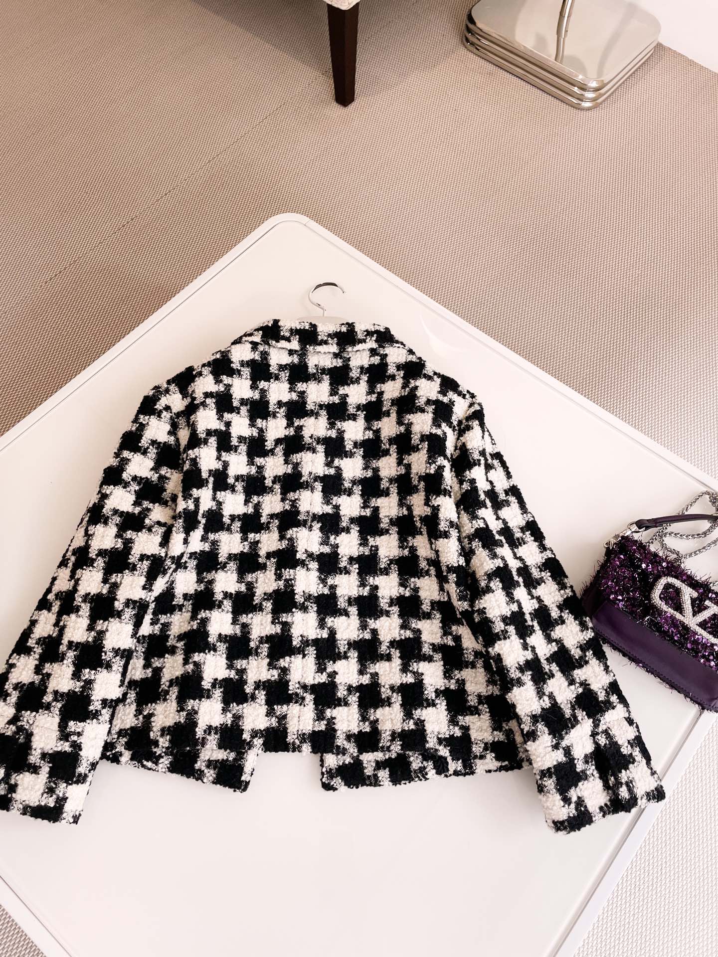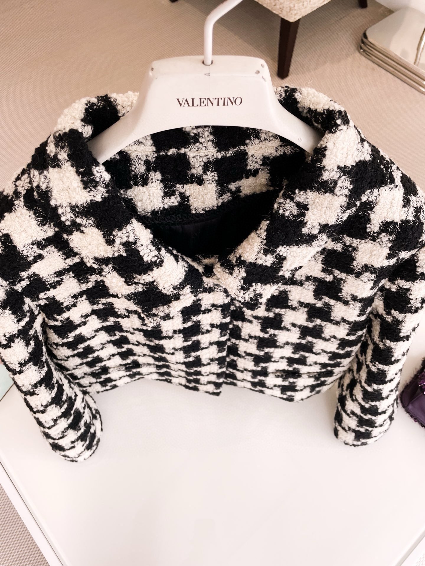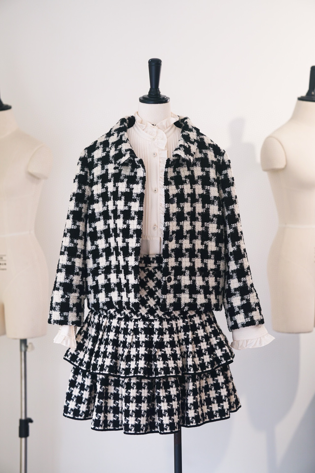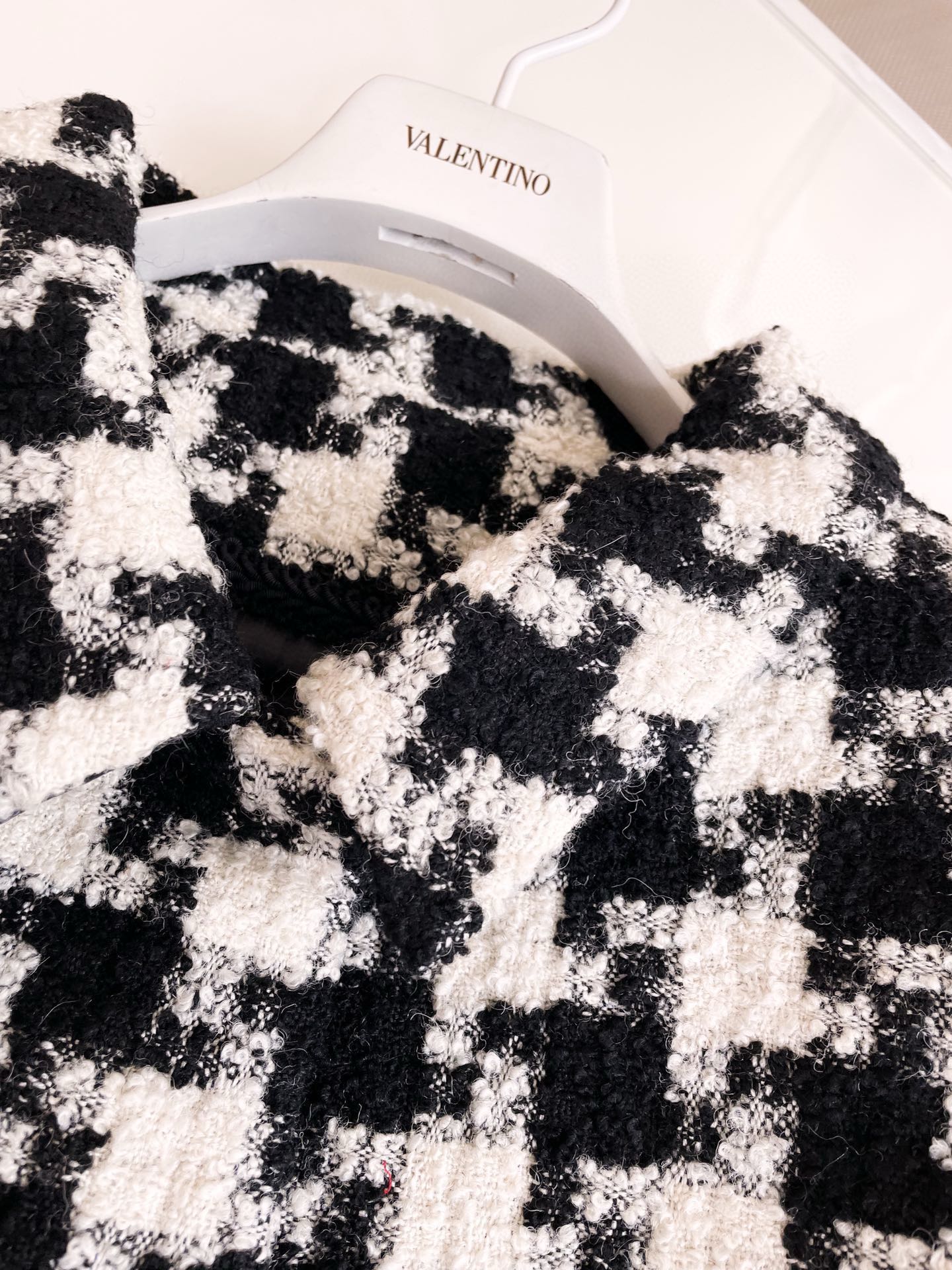 NIGO Valentino Women's Autumn and Winter Black and White Chibi Check Wool Tweed Lapel Single Breasted Long Sleeve Jacket #nigo75231