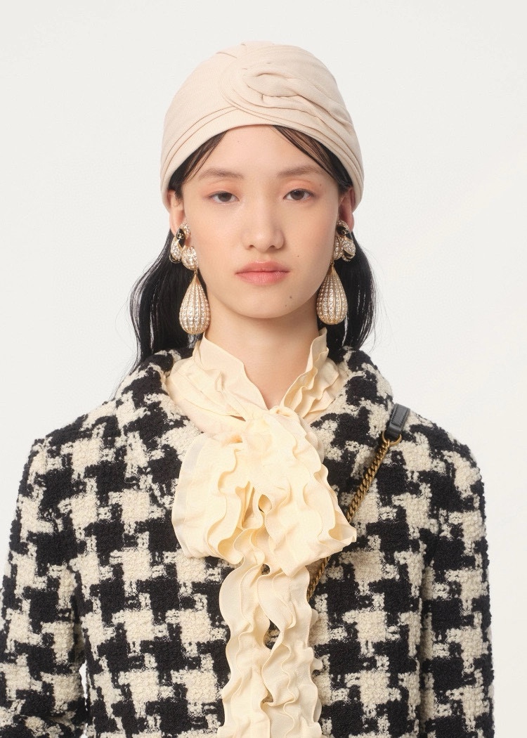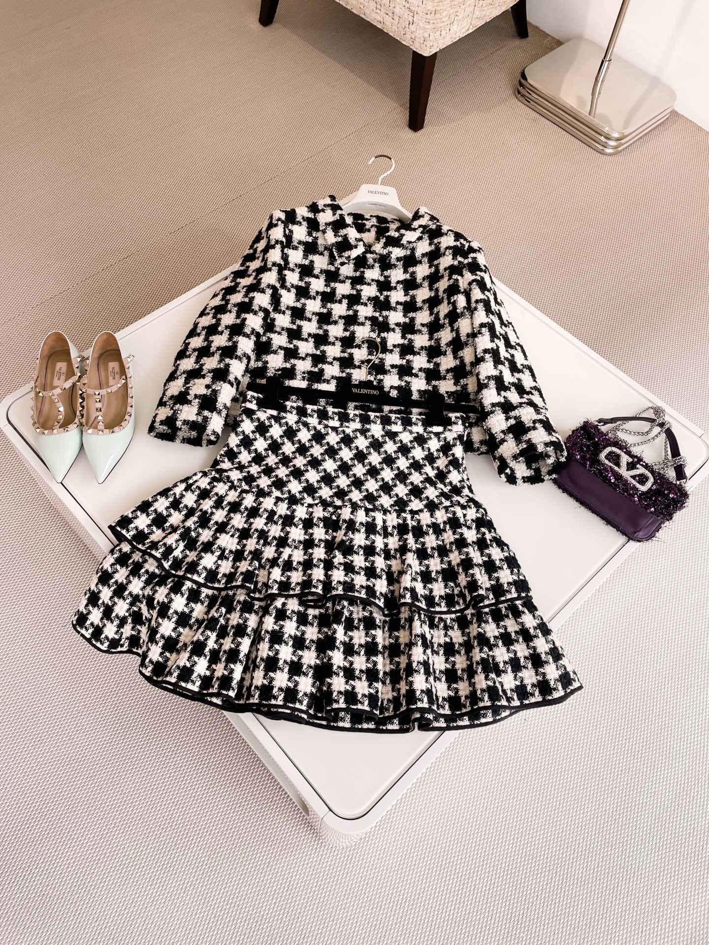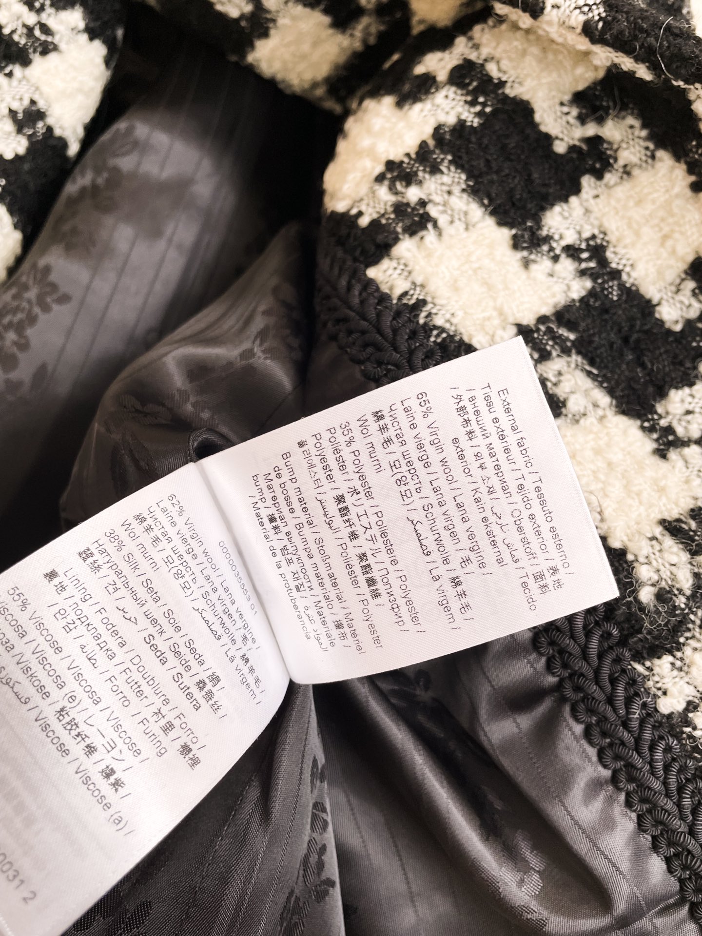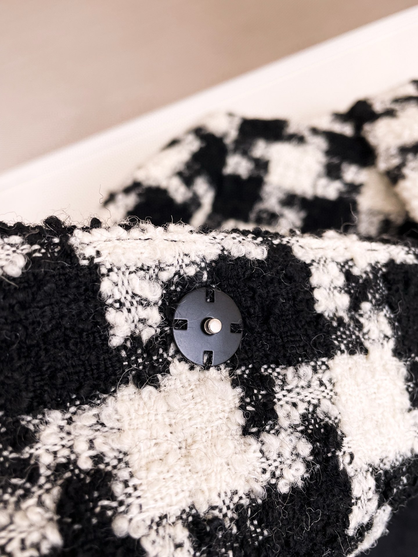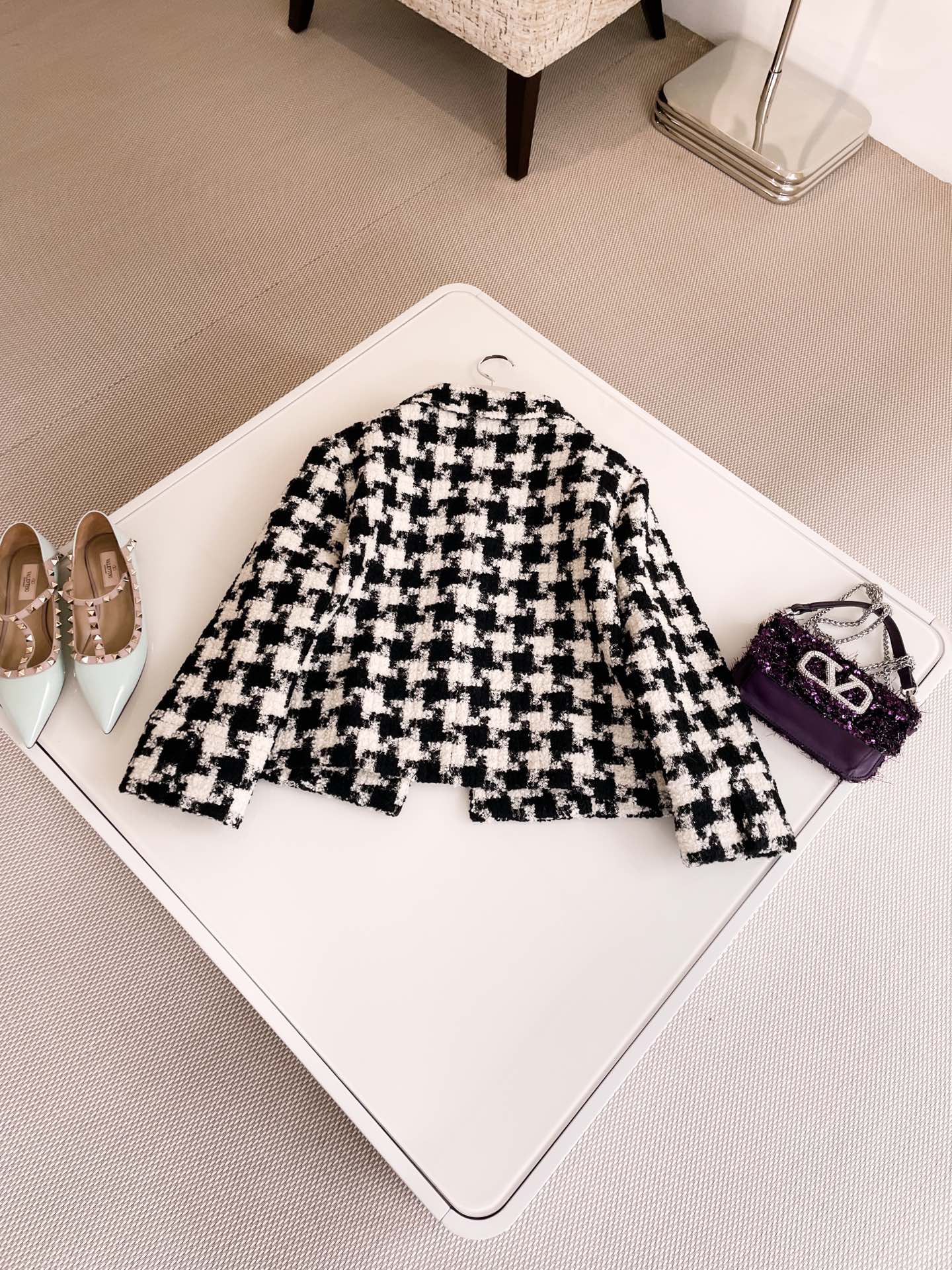 NIGO Valentino Women's Autumn and Winter Black and White Chibi Check Wool Tweed Lapel Single Breasted Long Sleeve Jacket #nigo75231
