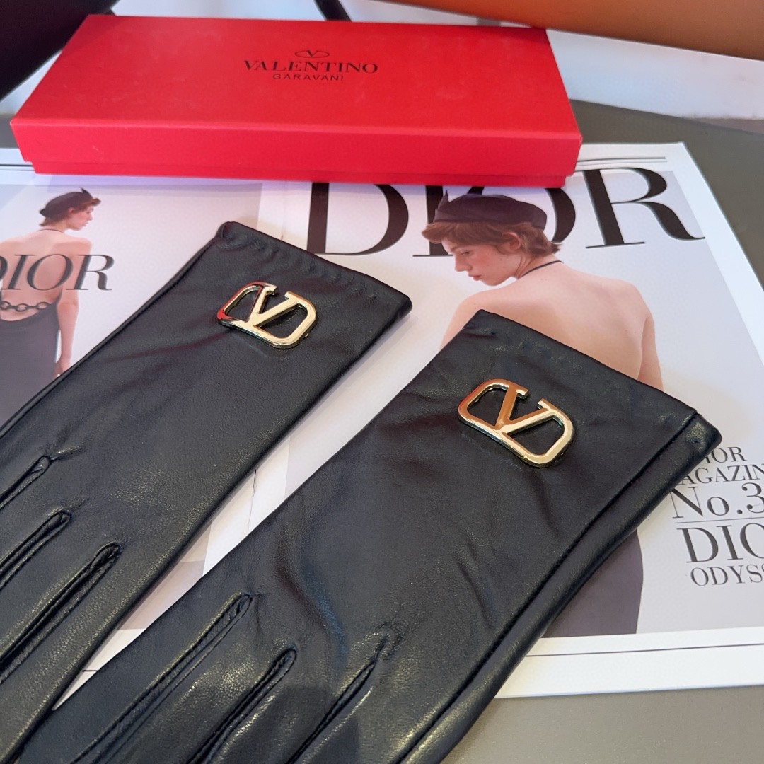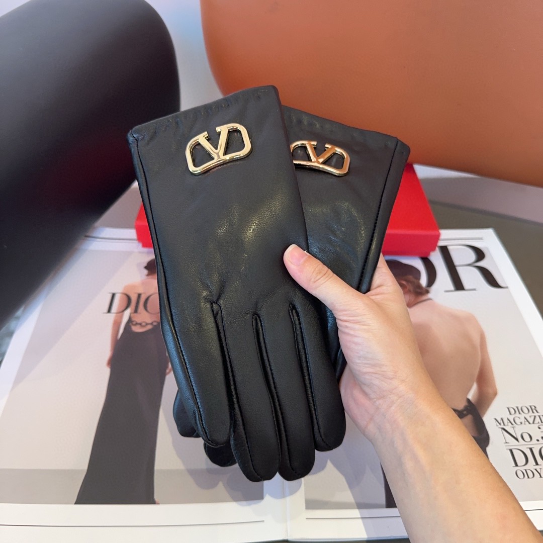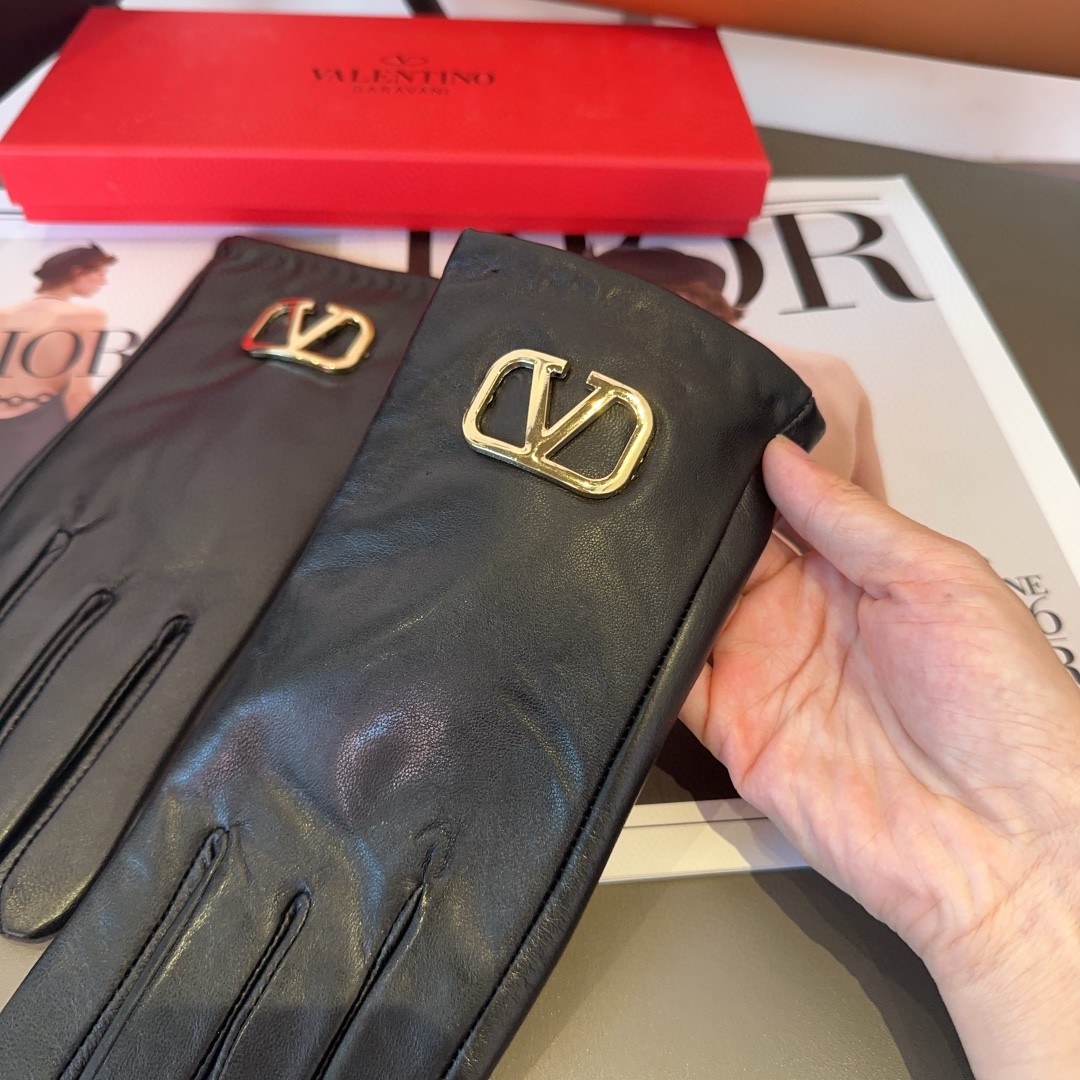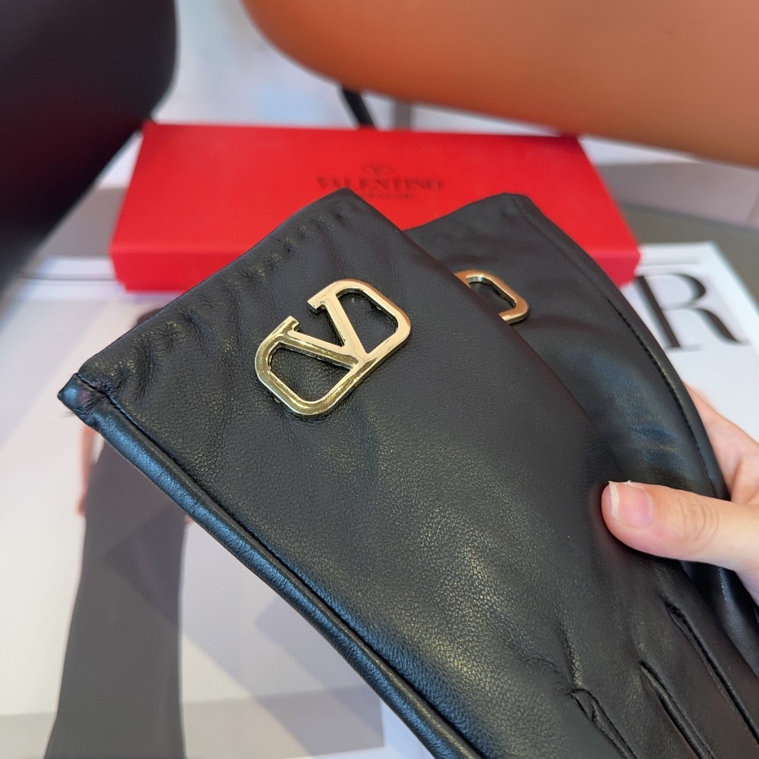 NIGO Valentino Women's Autumn and Winter Padded Lined Black Leather Women's Gloves #nigo73971
