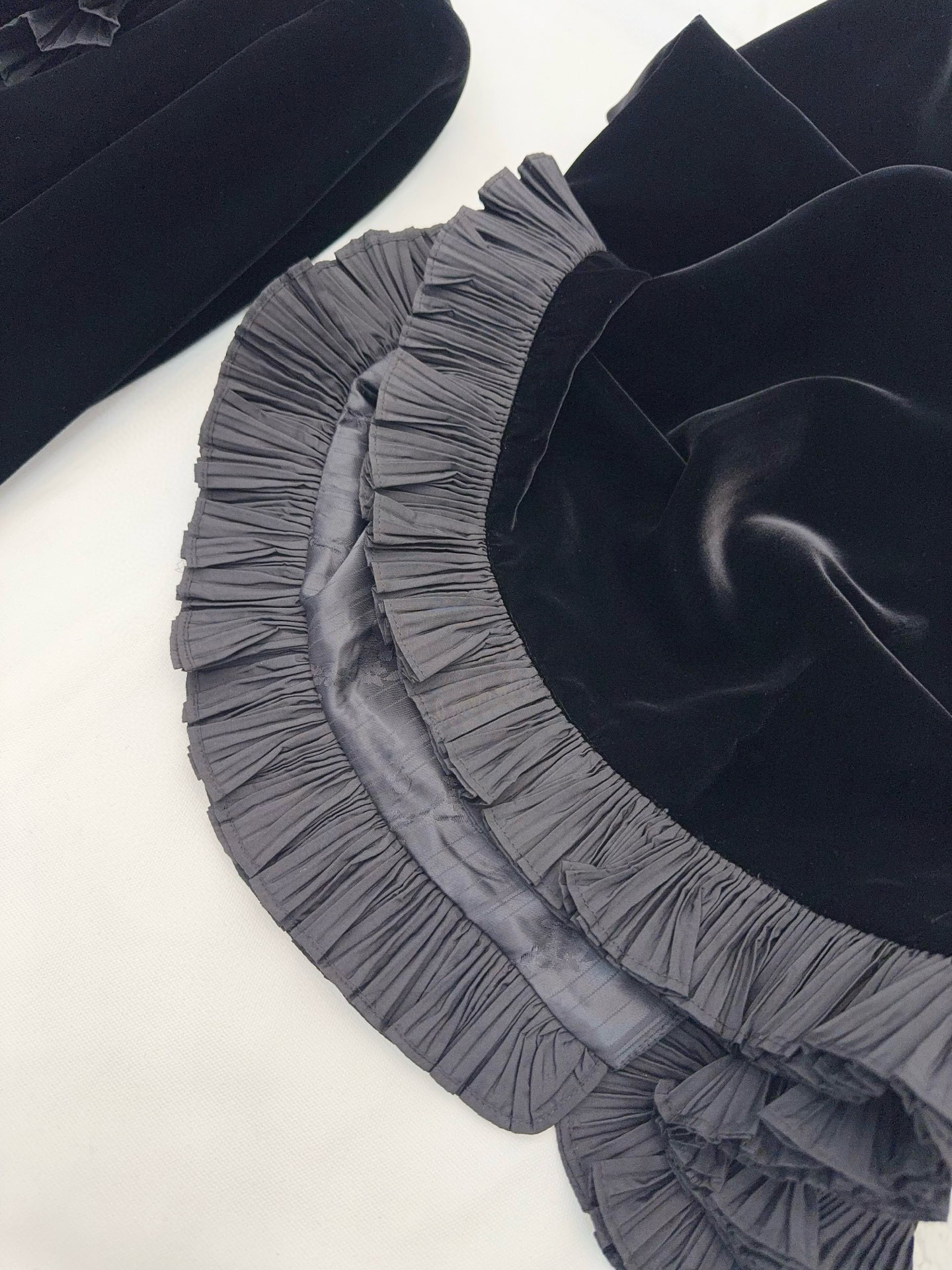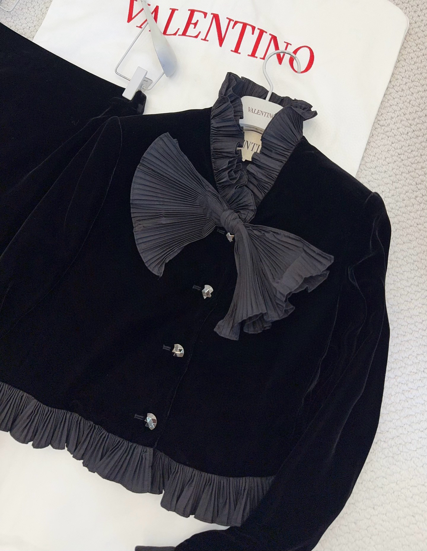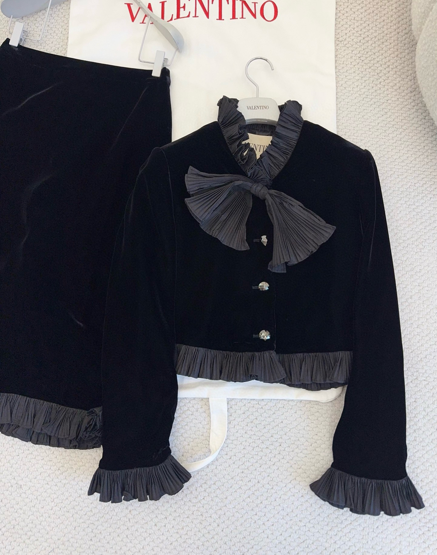 NIGO Valentino Women's Autumn Velvet Black Shirt Bow Jacket Slim Elegant Temperament Fashion Half-body Skirt Set Suit Ngvp #nigo2633