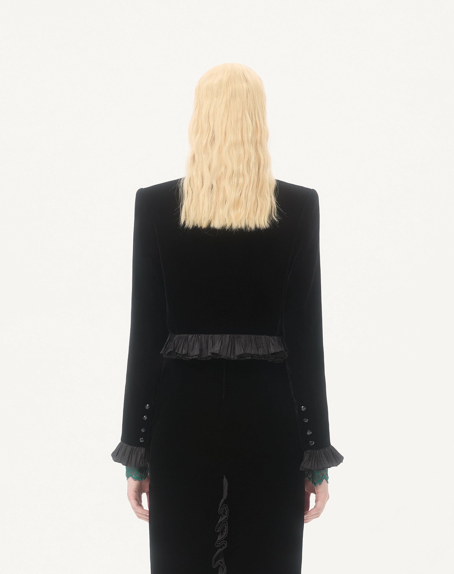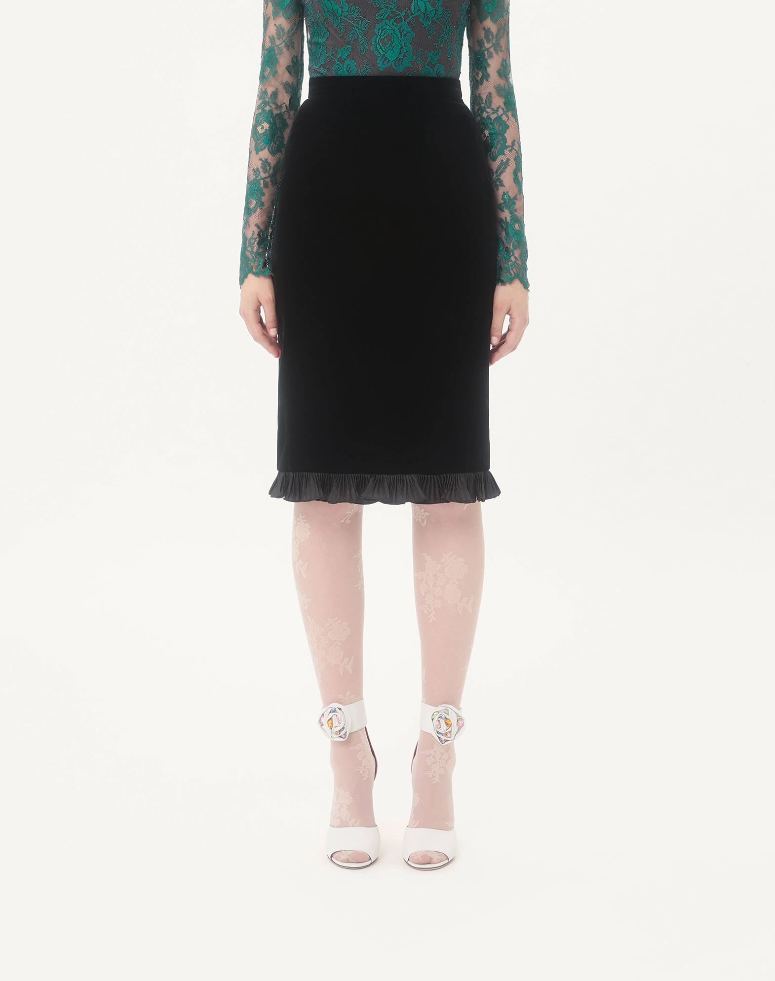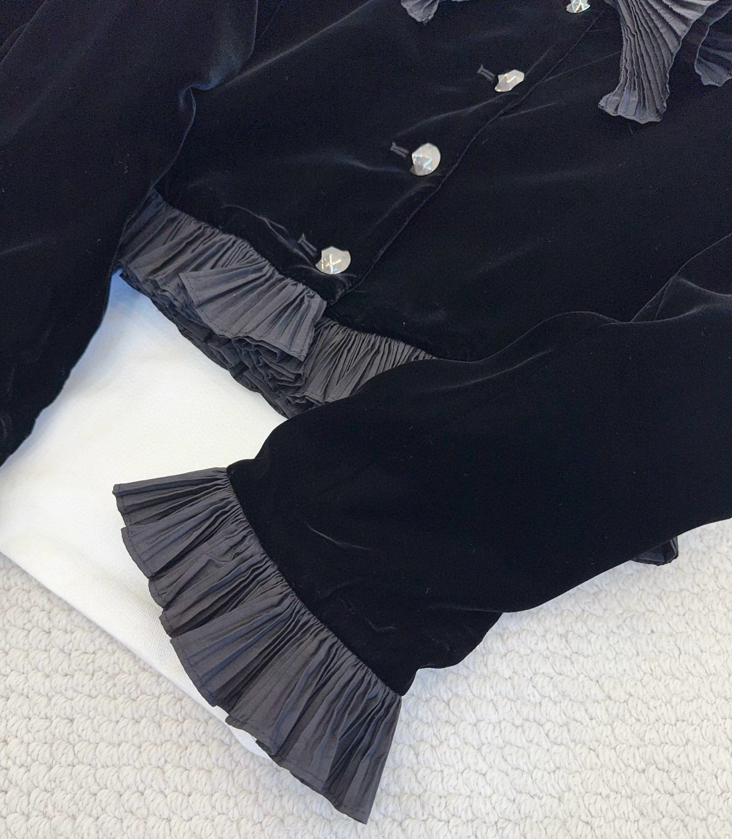 NIGO Valentino Women's Autumn Velvet Black Shirt Bow Jacket Slim Elegant Temperament Fashion Half-body Skirt Set Suit Ngvp #nigo2633
