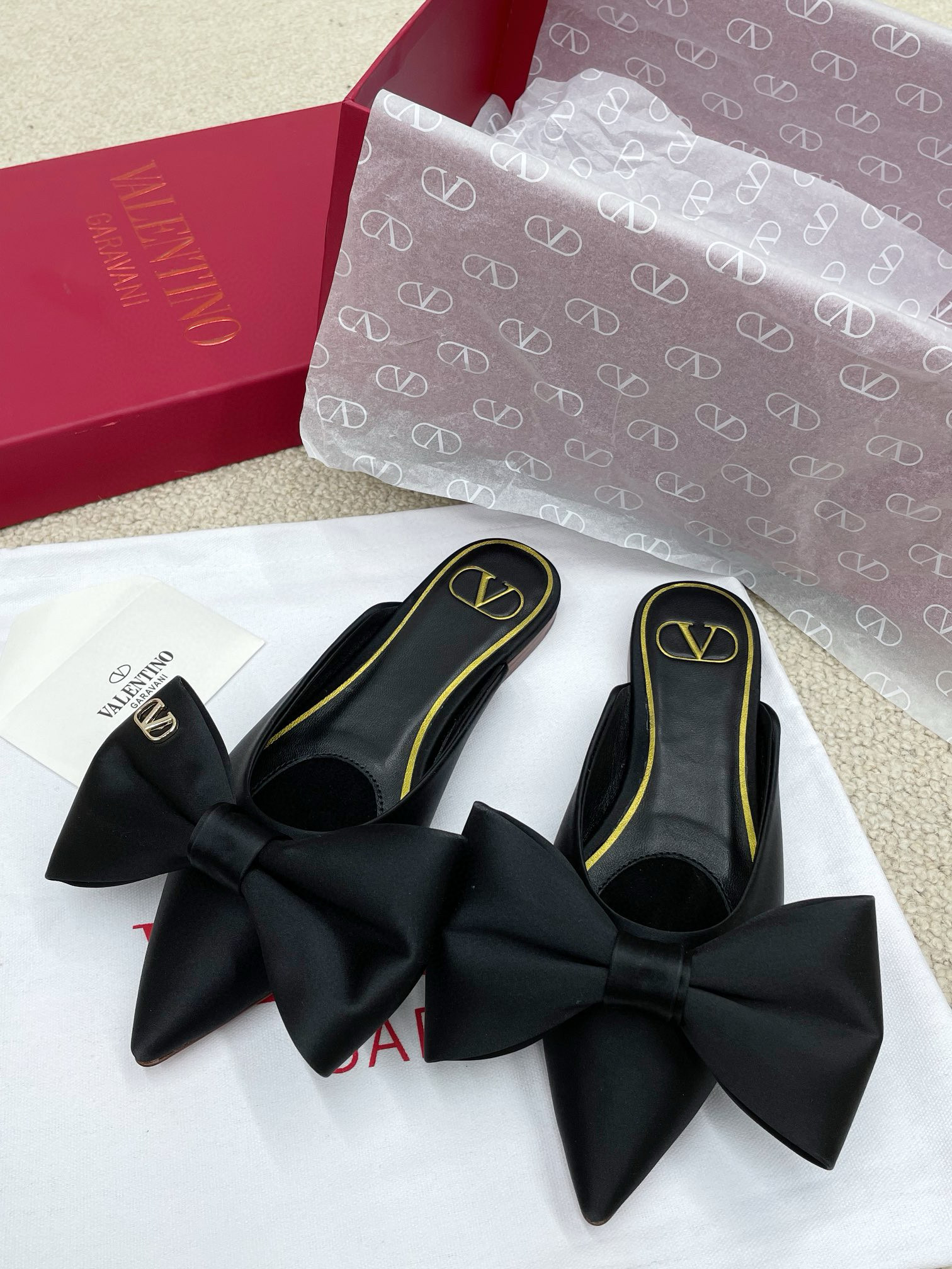 NIGO Valentino Women's Fashionable Silk Satin Leather Bow Muller Pointed Flat Bottom Slippers Casual Shoes #nigo98634