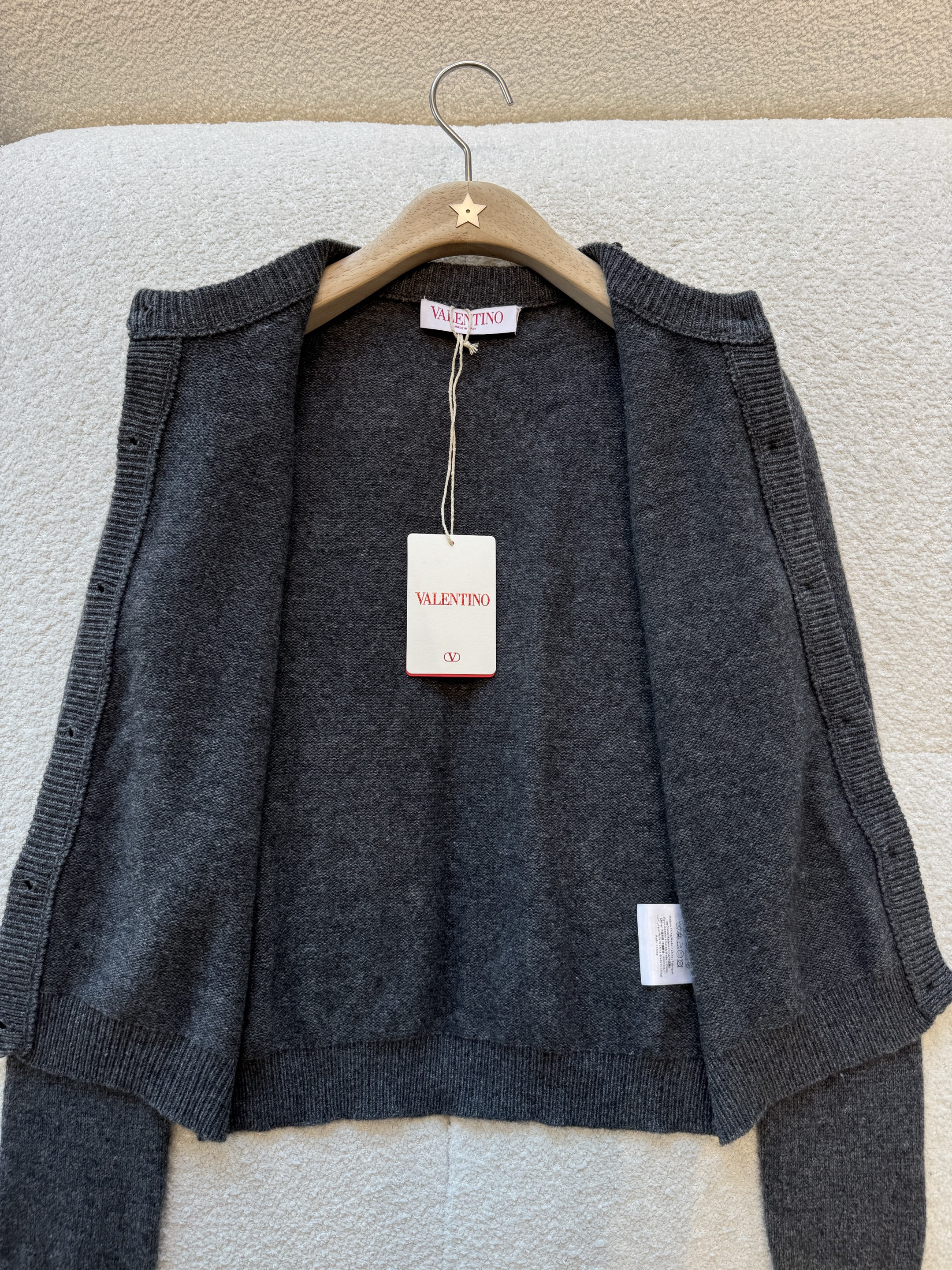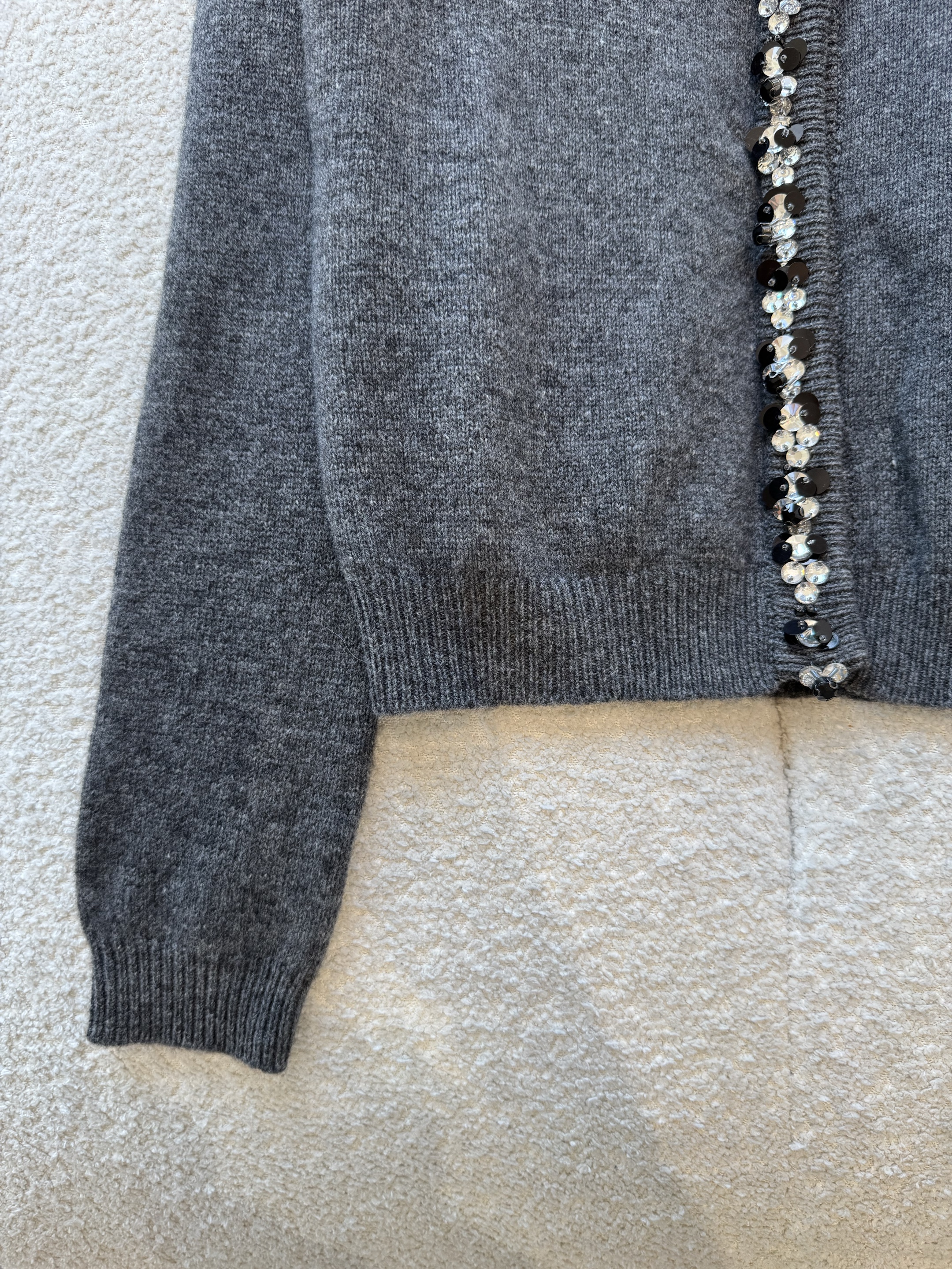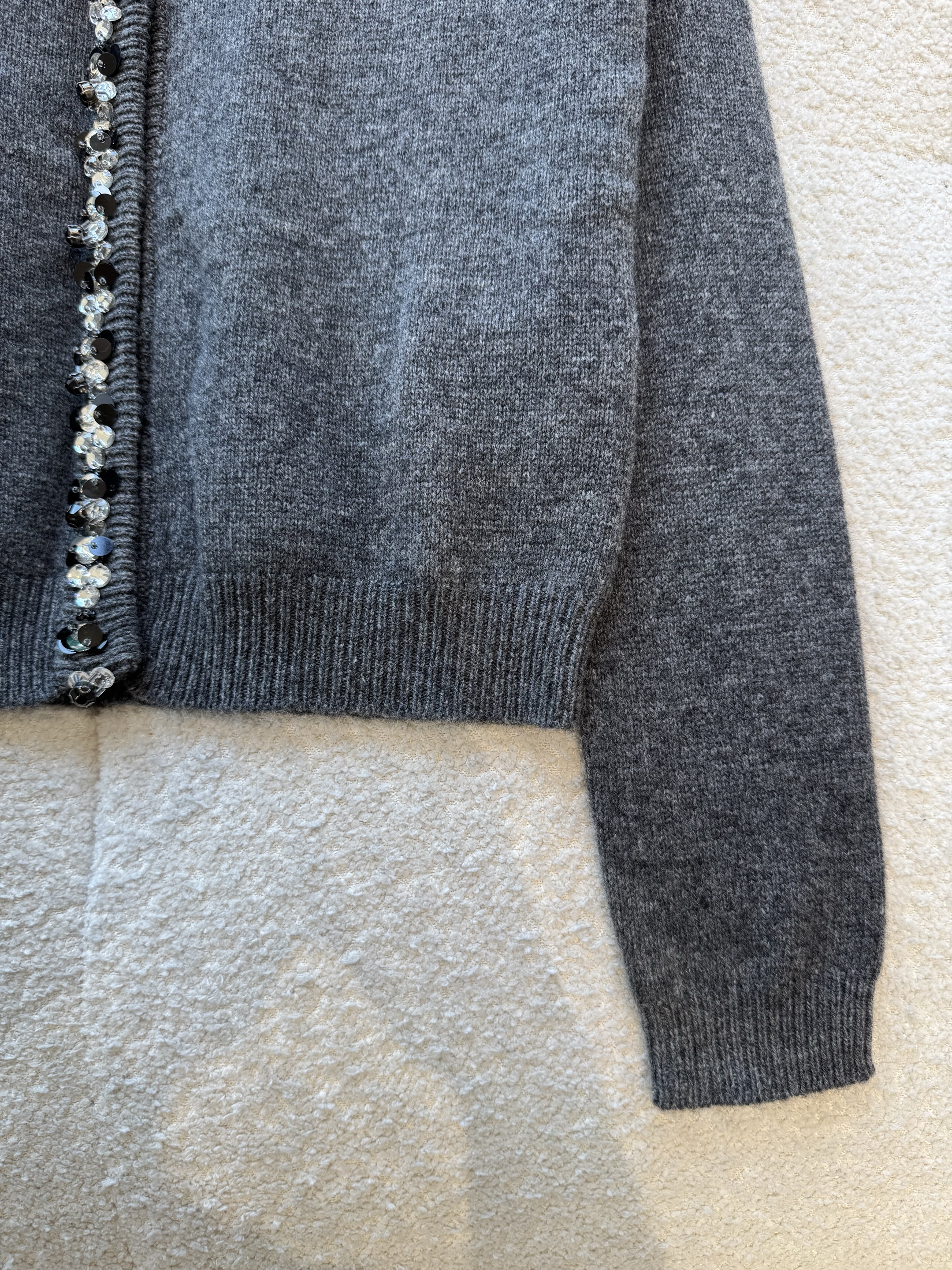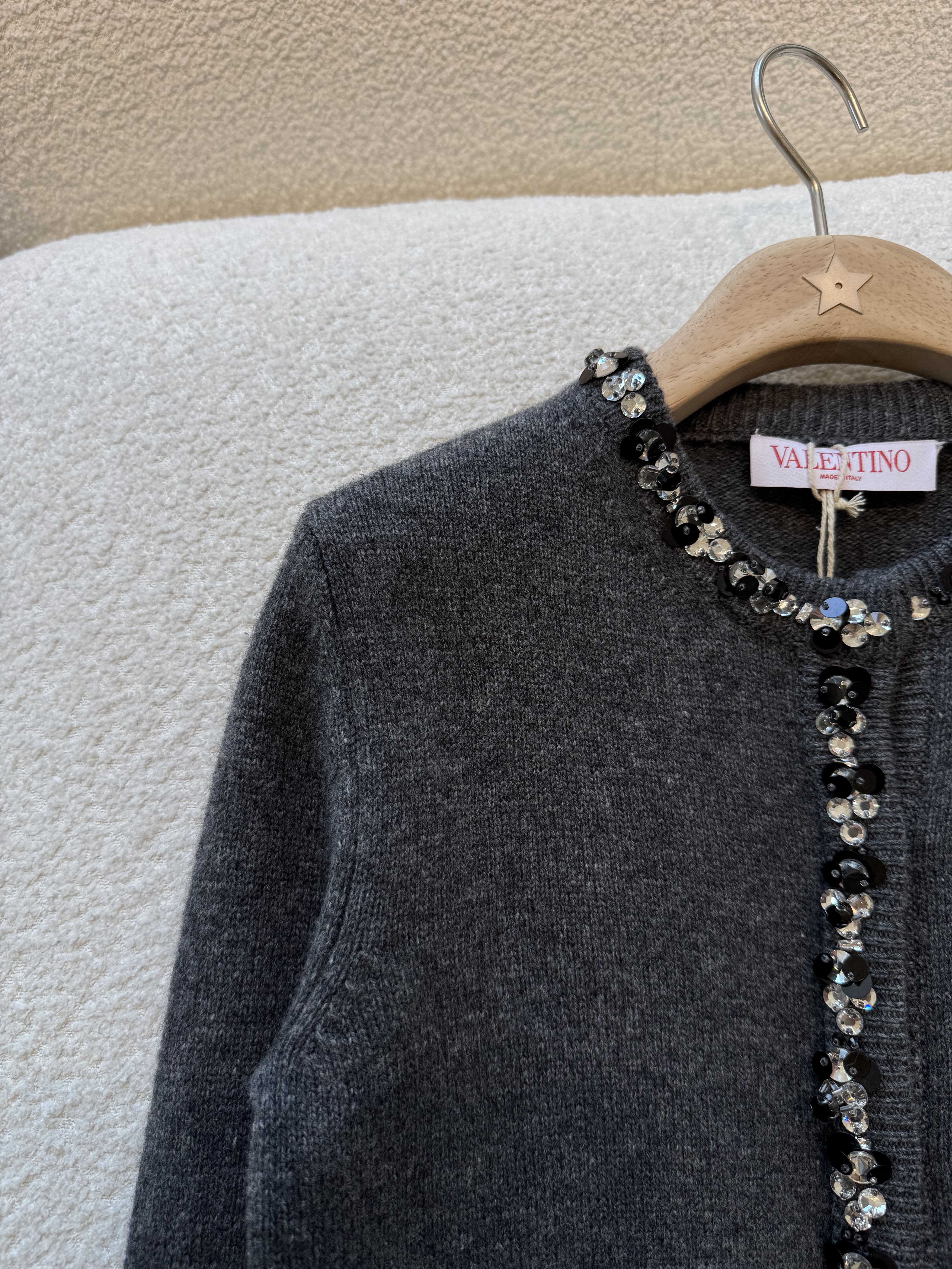 NIGO Valentino Women's Luxury Sequins Gray Wool Cardigan Autumn And Winter Fashion Trend Leisure Exquisite Single-breasted Knitted Cardigan Ngvp #nigo2449