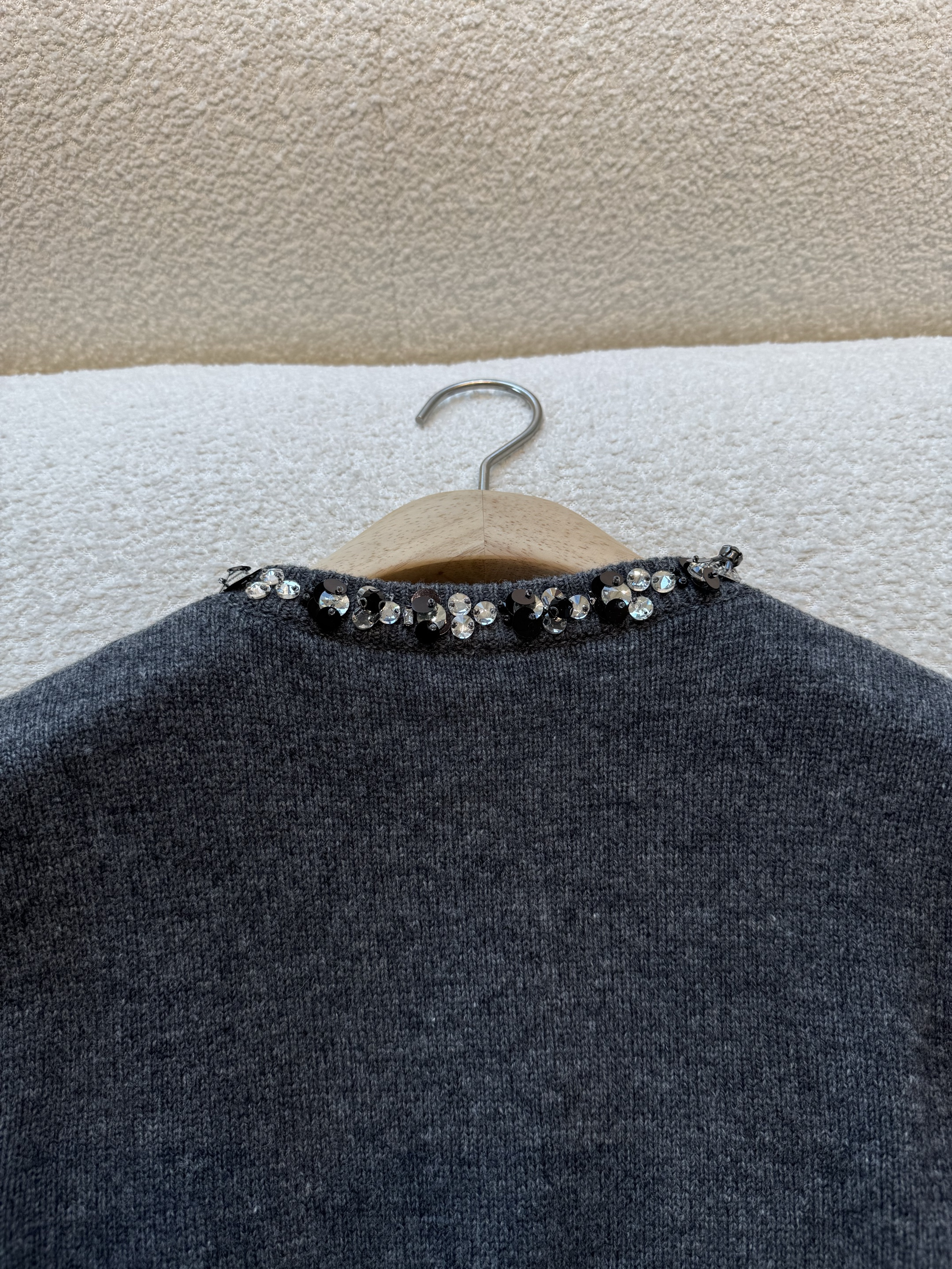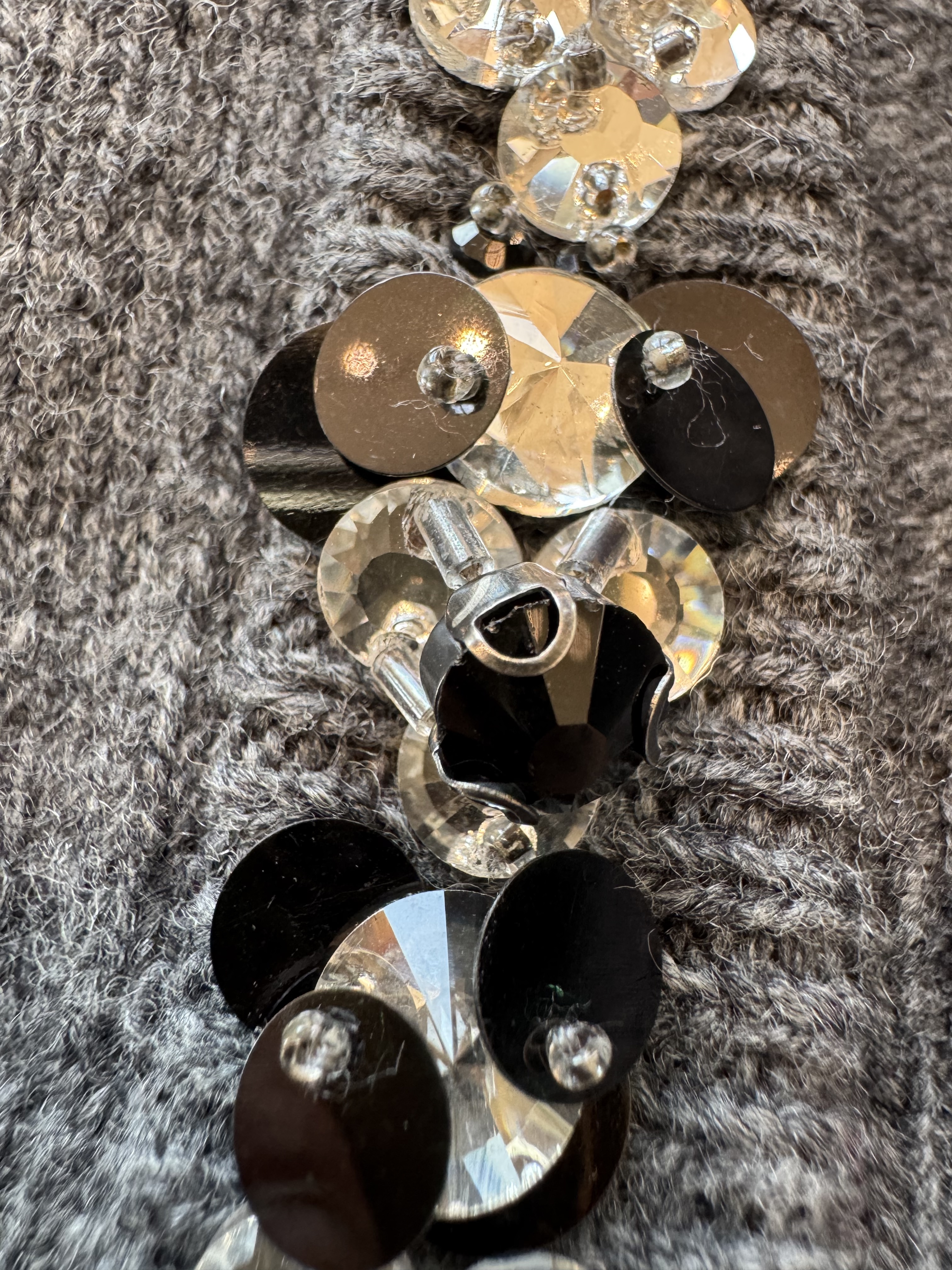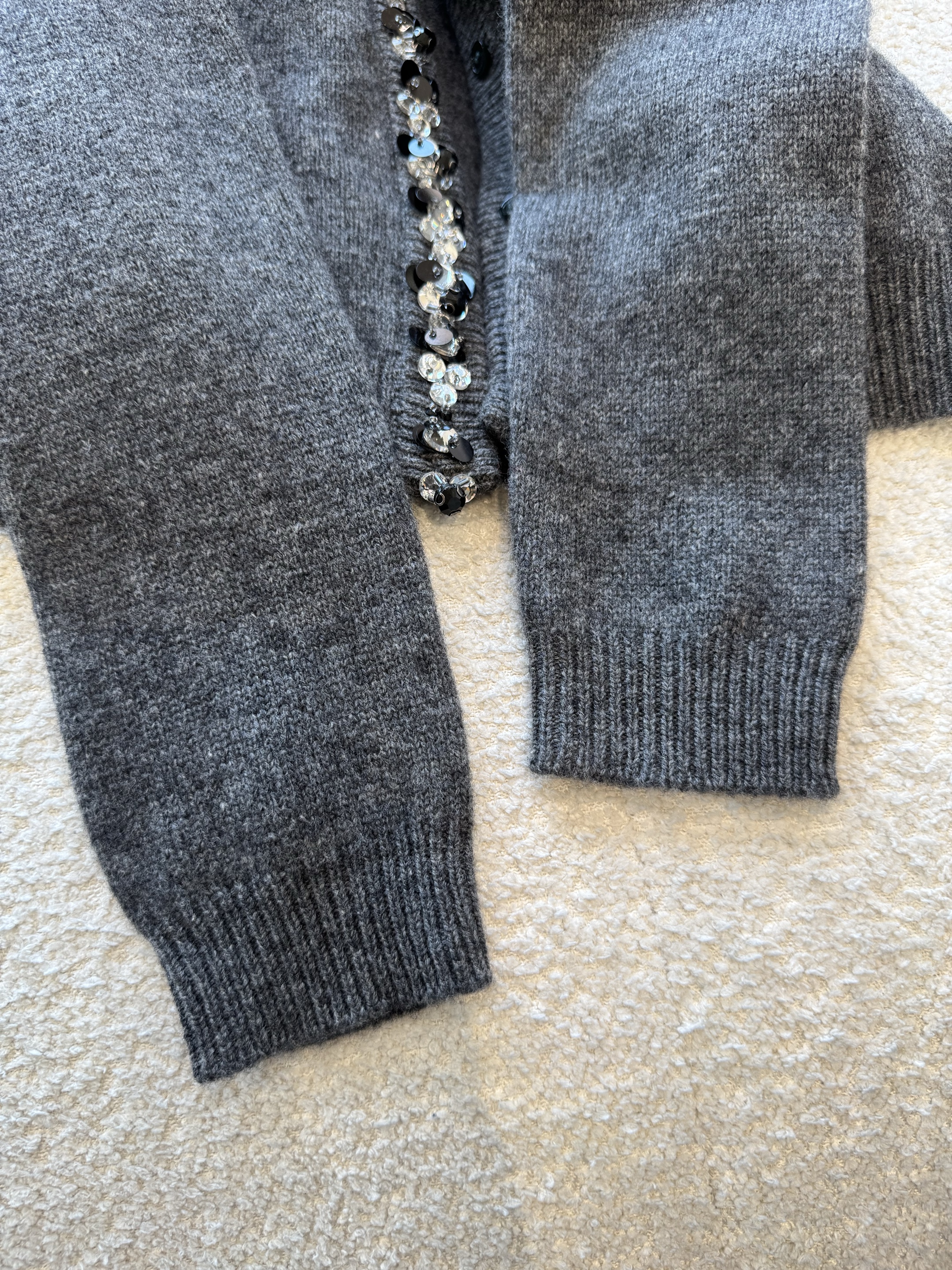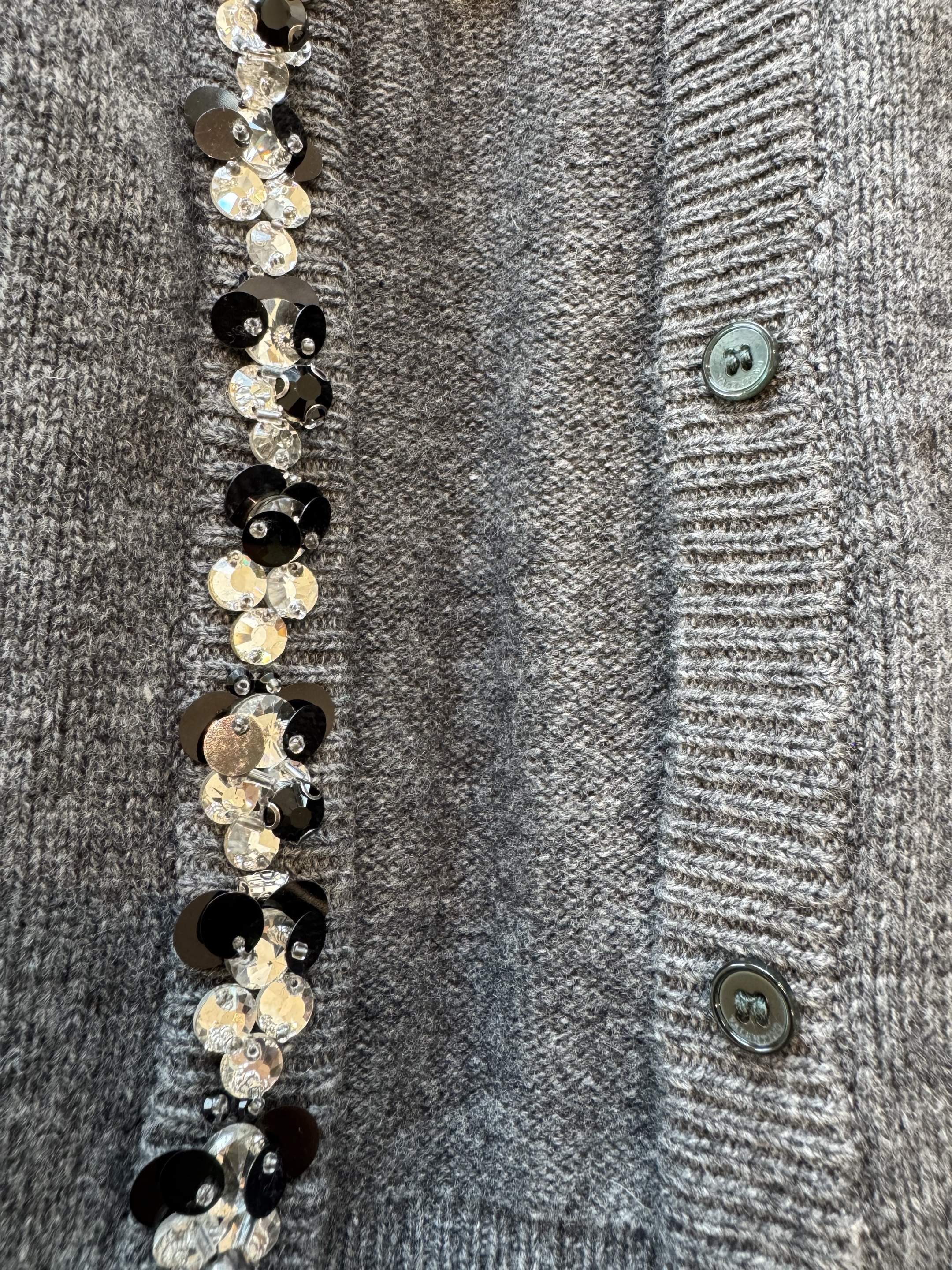 NIGO Valentino Women's Luxury Sequins Gray Wool Cardigan Autumn And Winter Fashion Trend Leisure Exquisite Single-breasted Knitted Cardigan Ngvp #nigo2449