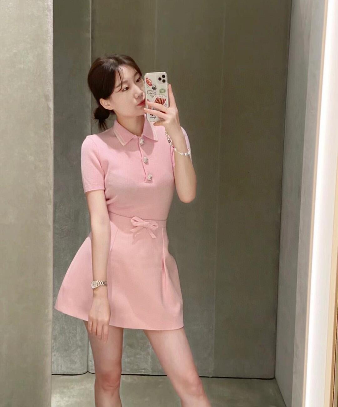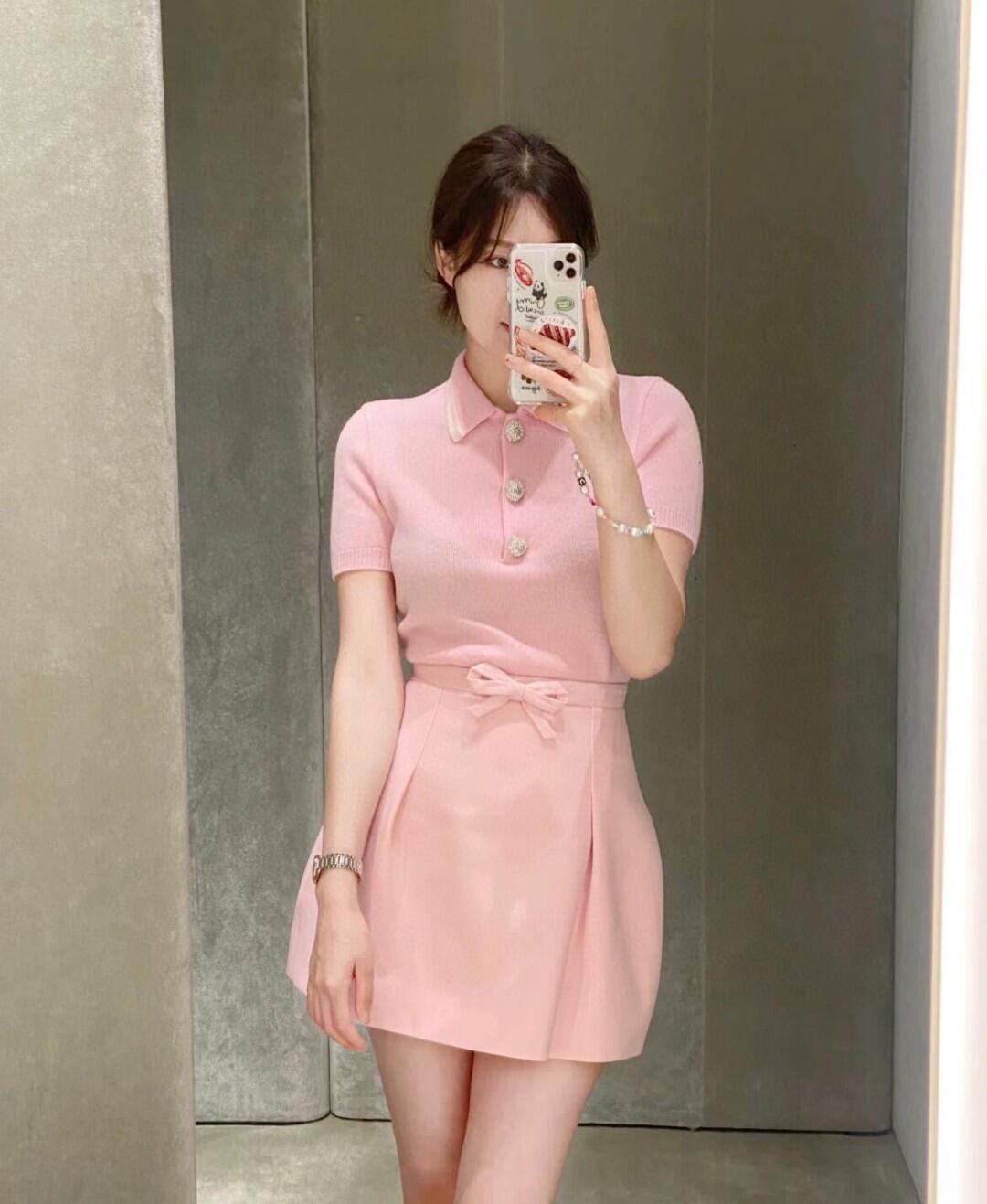 NIGO Valentino Women's Spring And Autumn CREPE COUTURE Pink Bow Silk Wool High Waist Half Skirt Ngvp #nigo9279