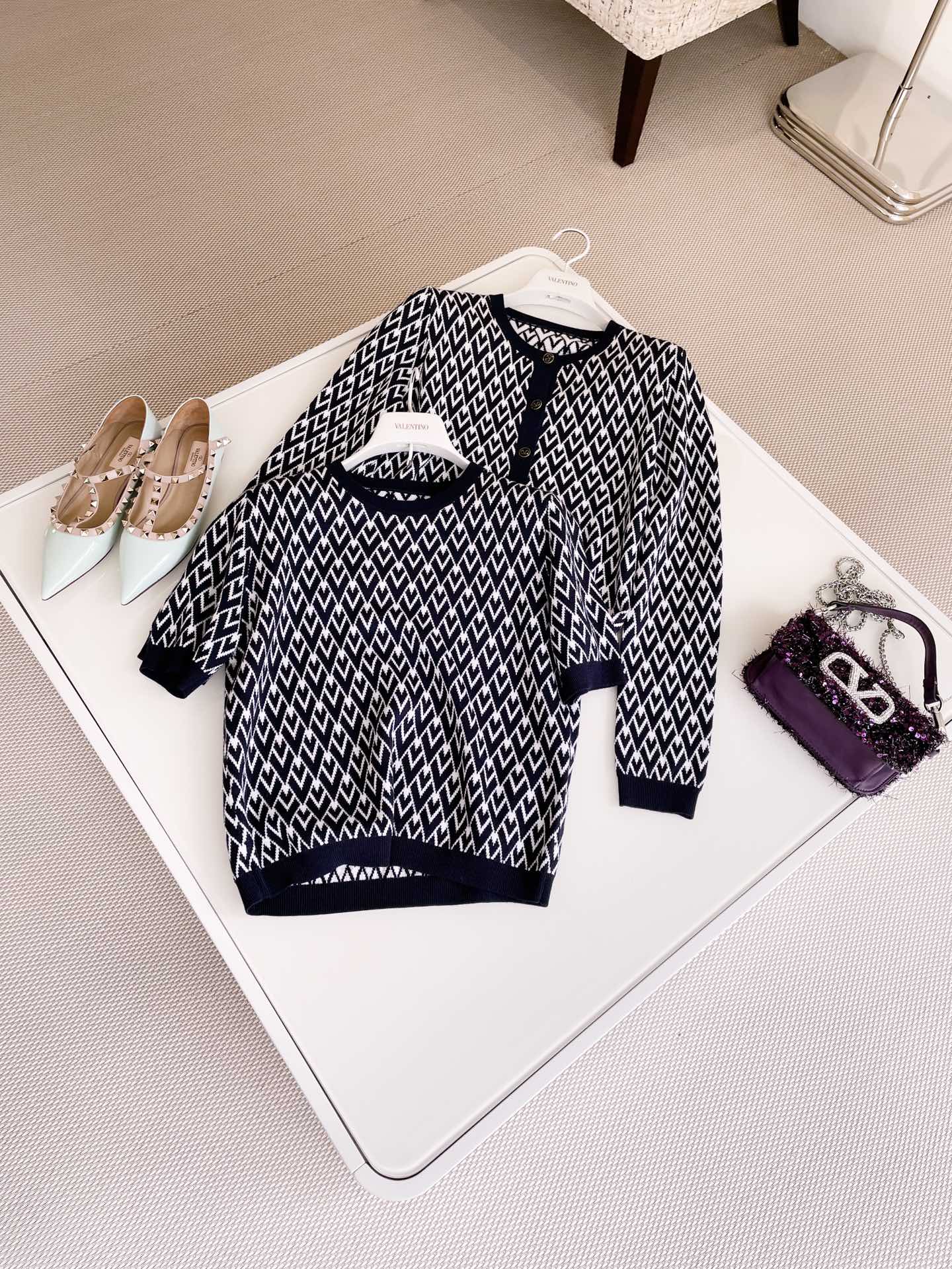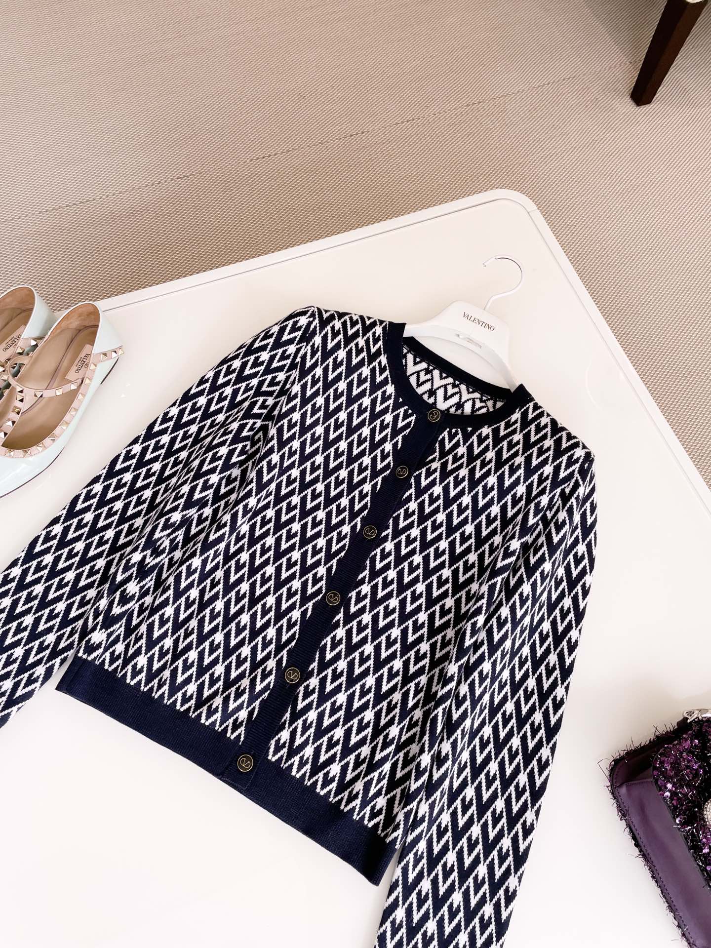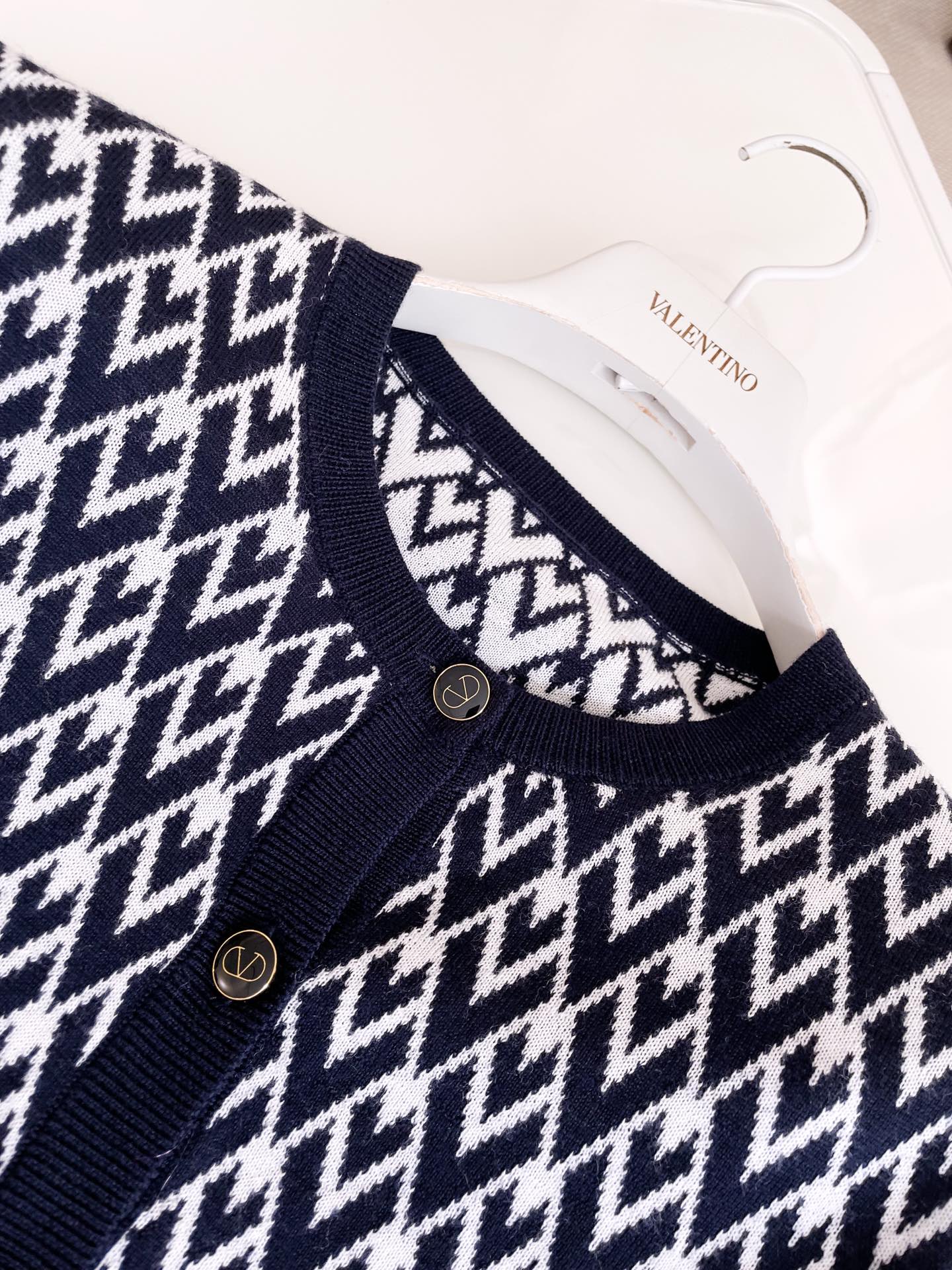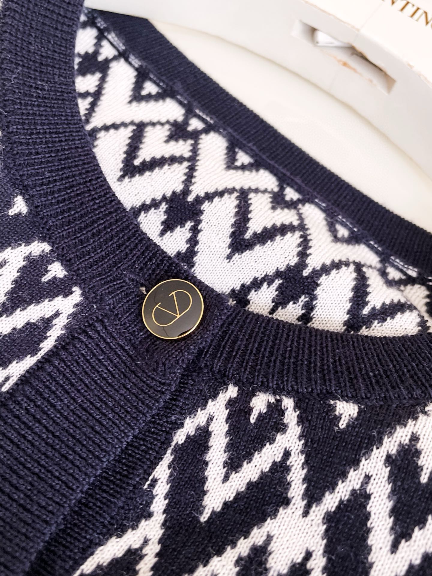 NIGO Valentino Women's Spring and Autumn Letter Appliquéd Knit Round Neck Single Breasted Long Sleeve Cardigan Jacket #nigo73938