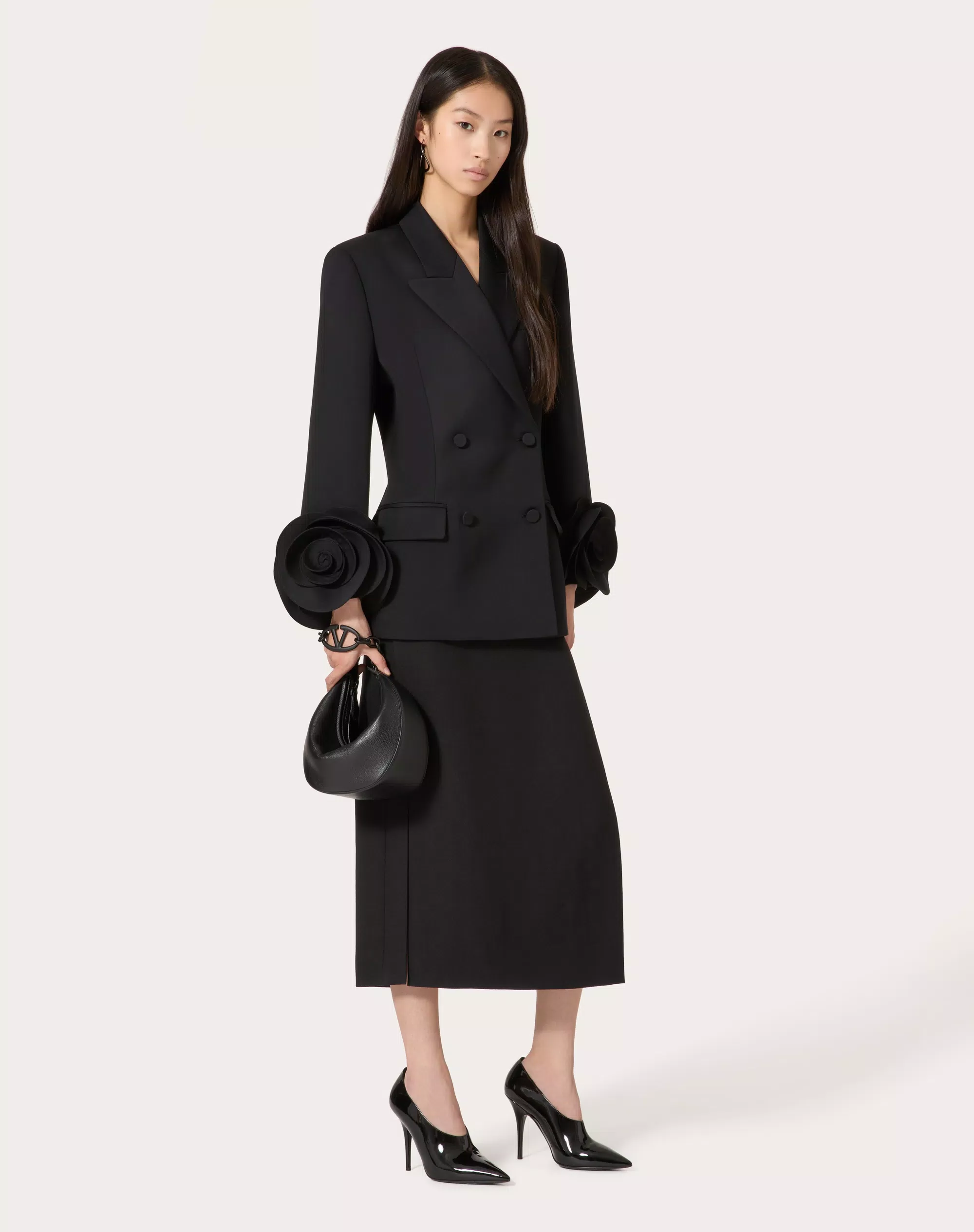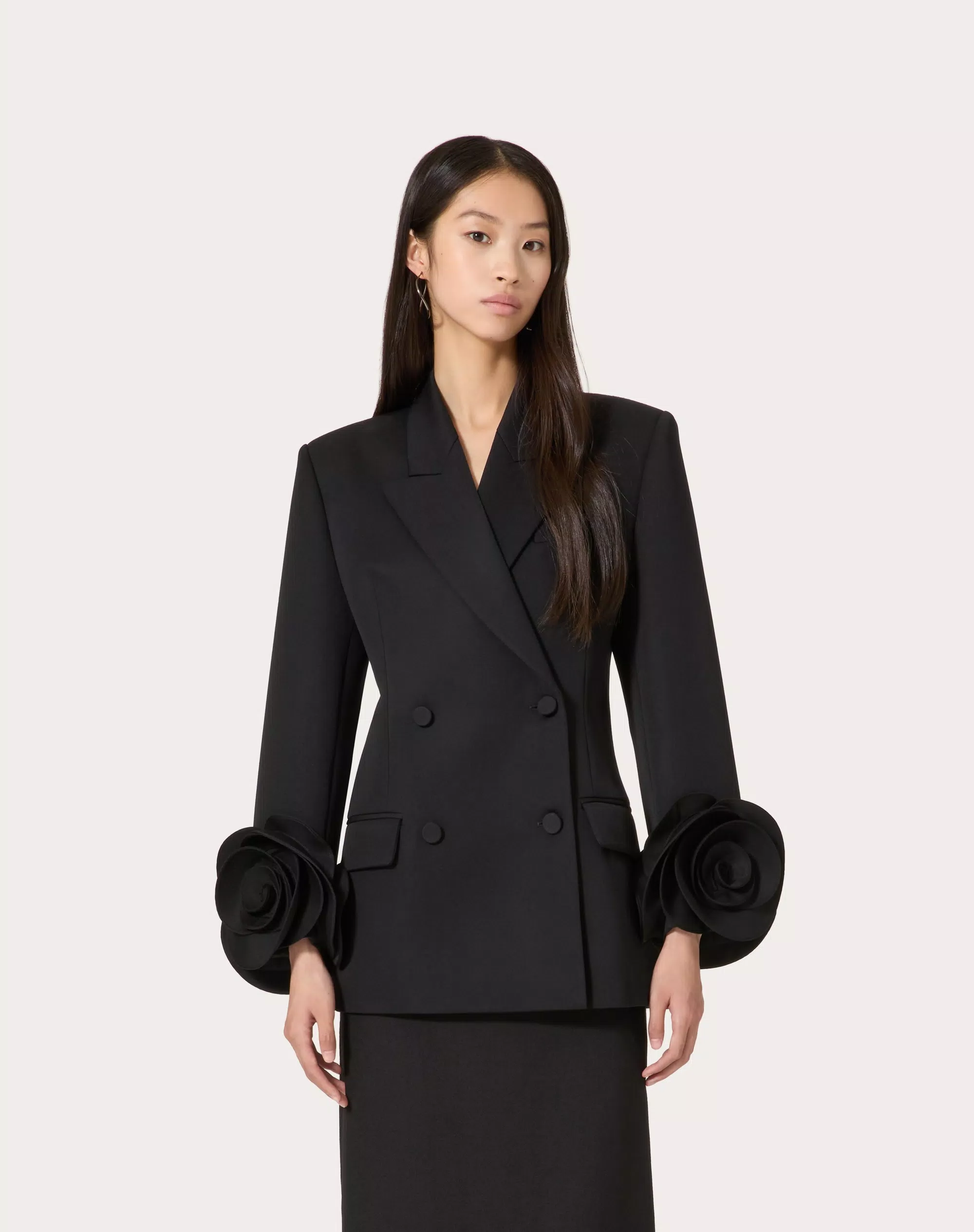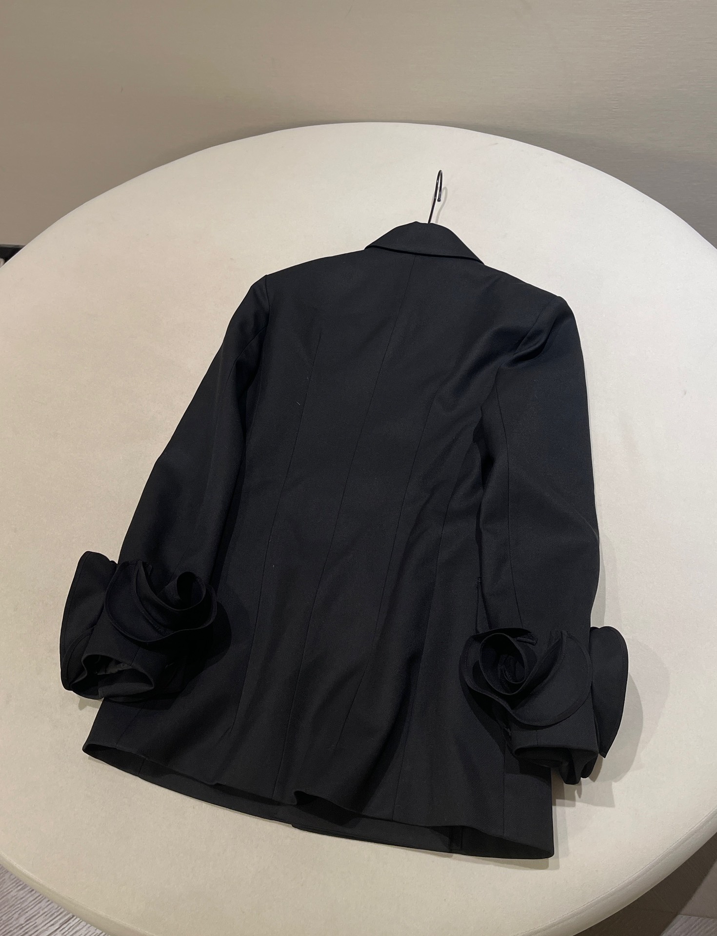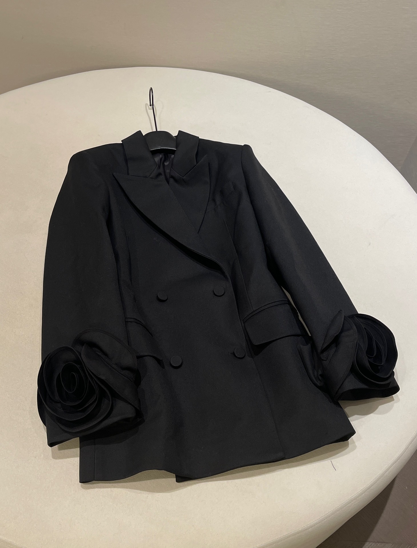 NIGO Valentino Women's Spring And Autumn Sheep Double Breasted Long Sleeve Rose Floral Sleeve Black Blazer Jacket Ngvp #nigo9564