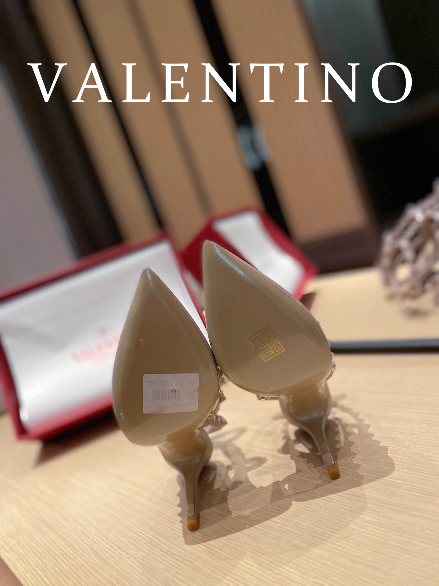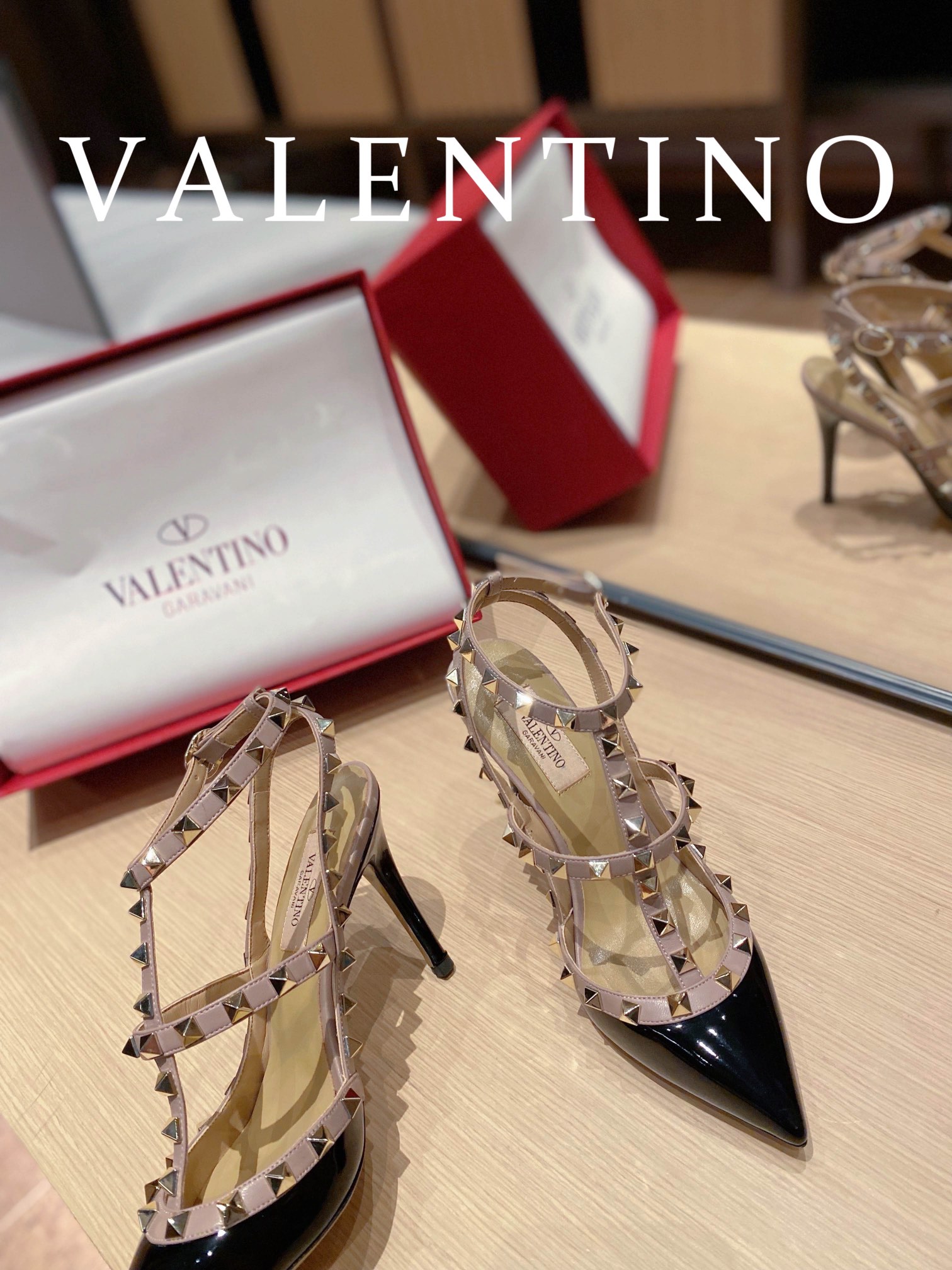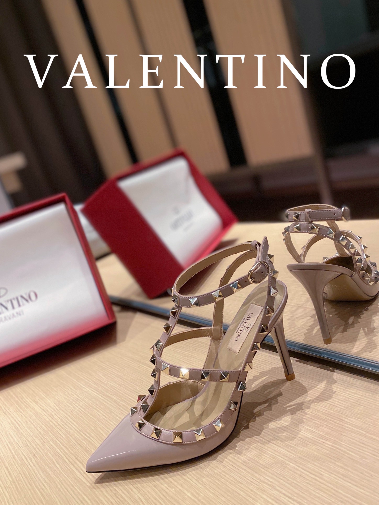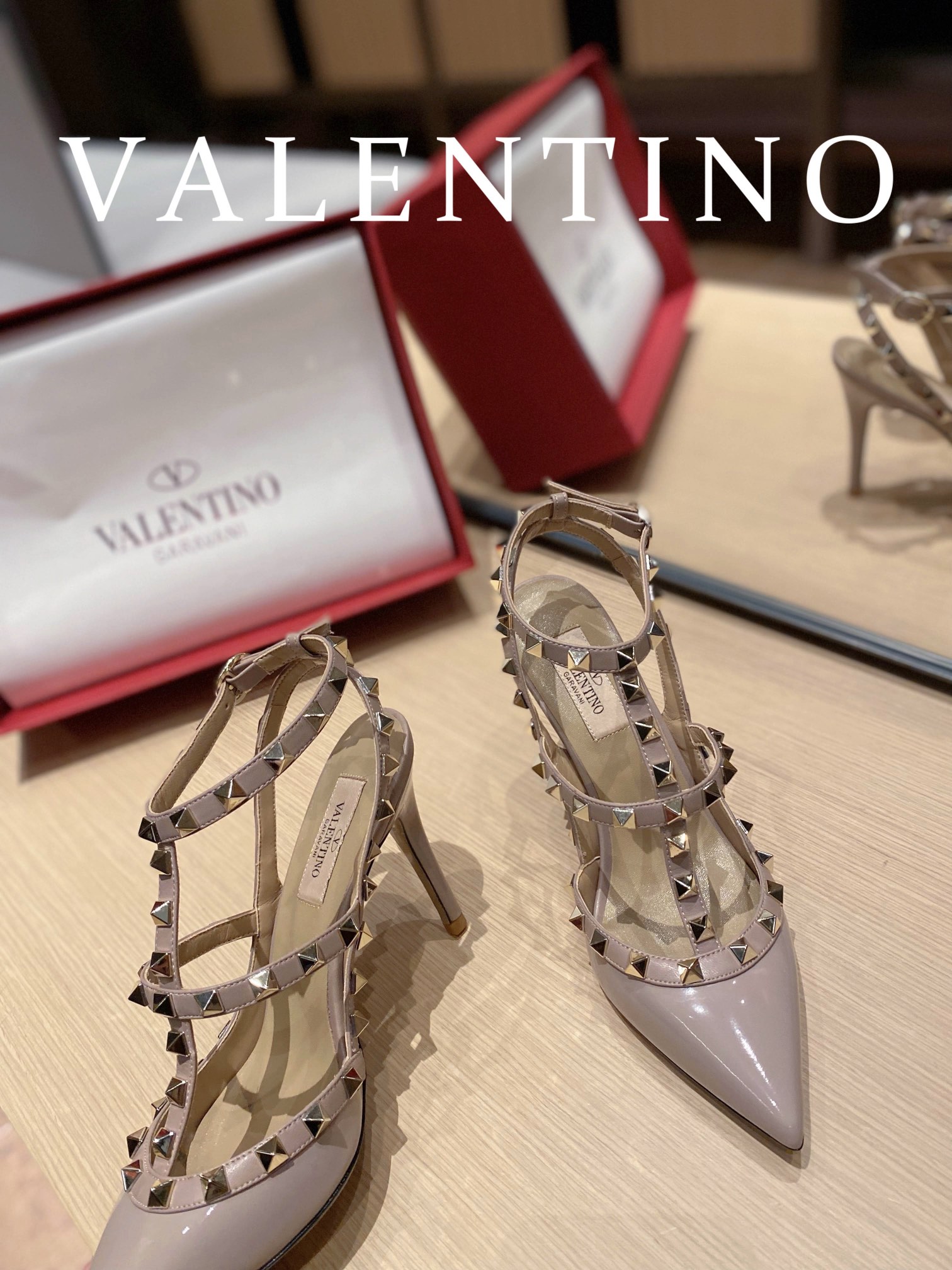 NIGO Valentino Women's Spring And Summer Rivets Cowhide High Heels Mirror Patent Leather Sheepskin Lining High Heels #nigo98361