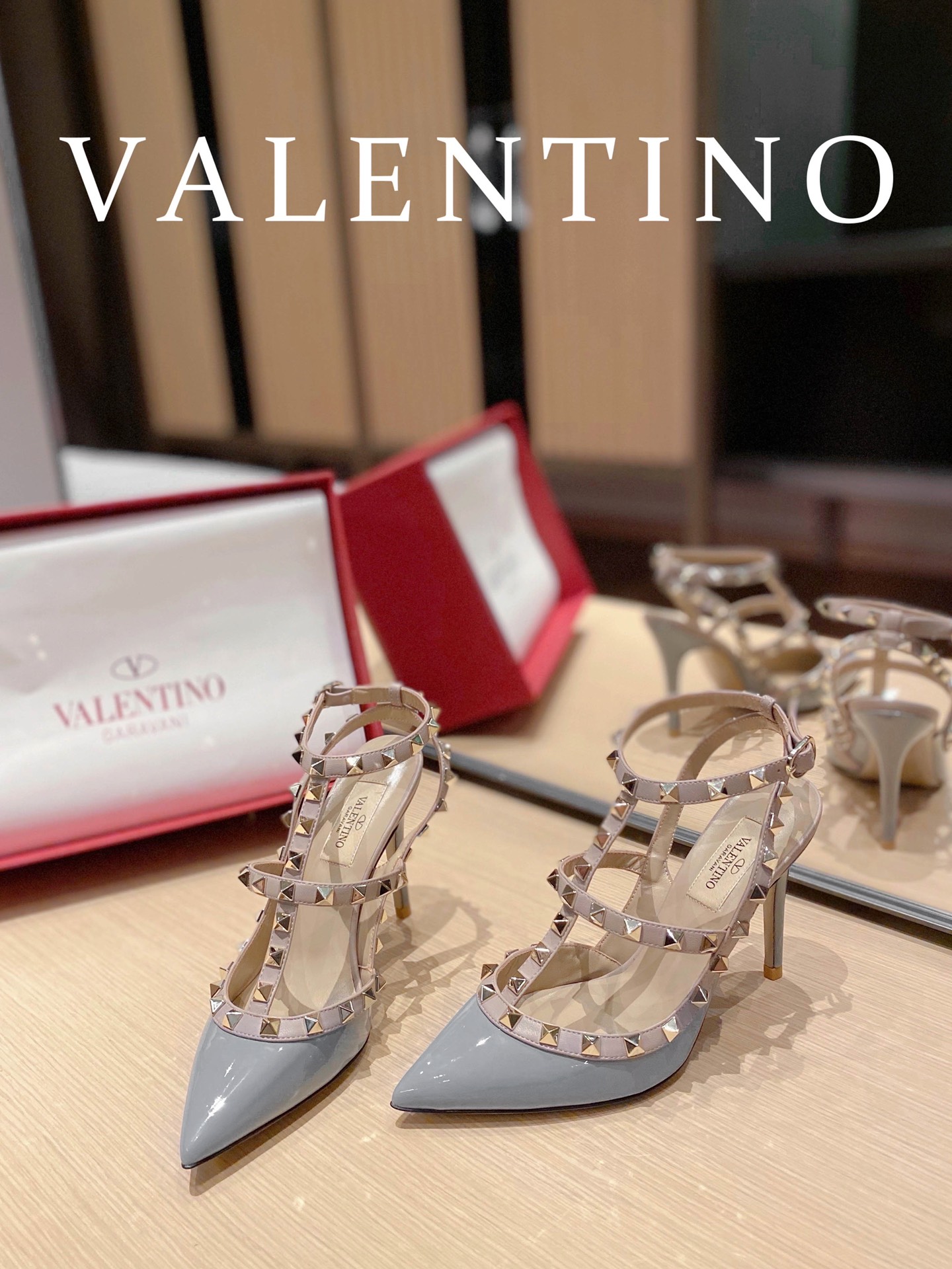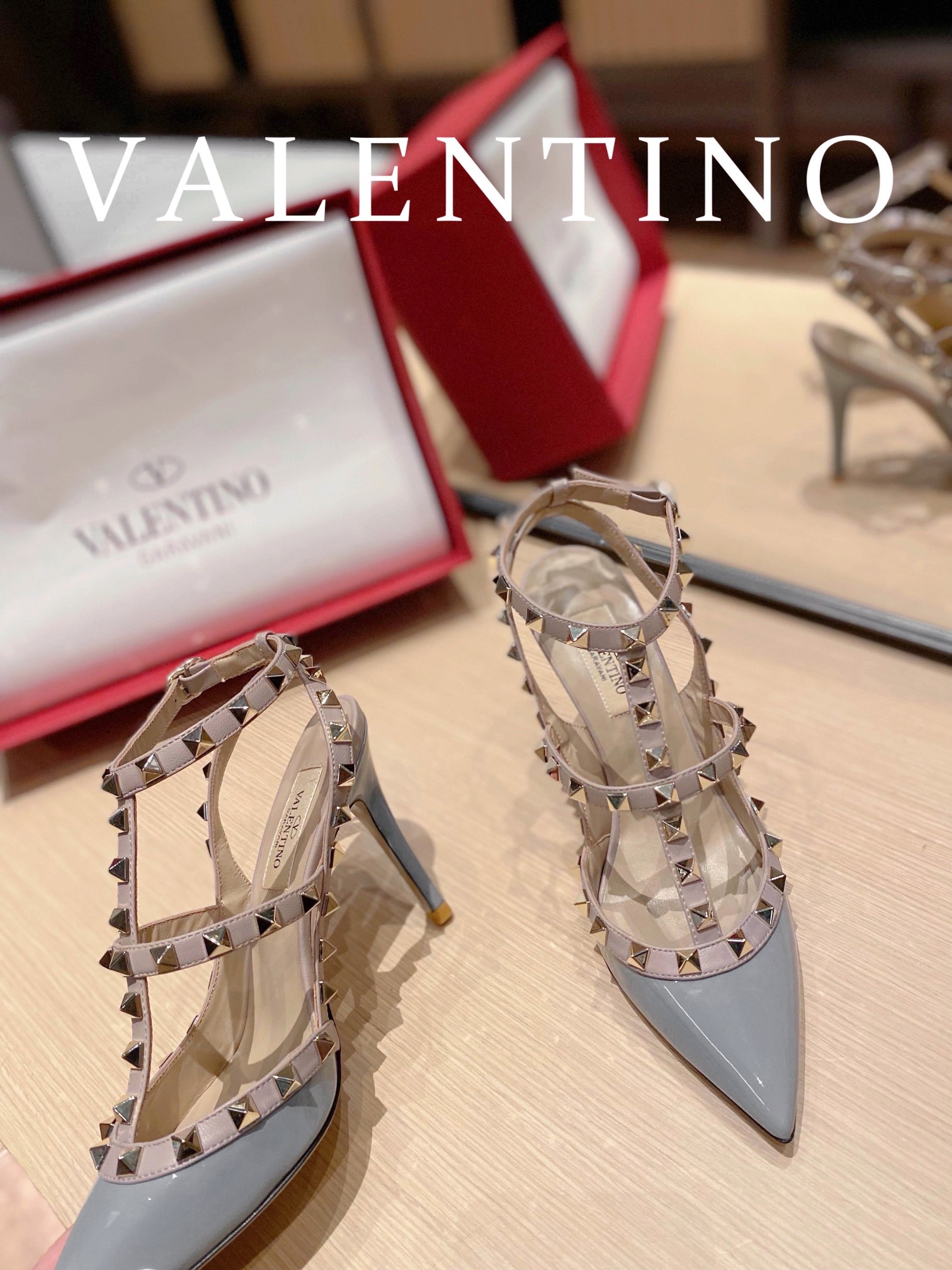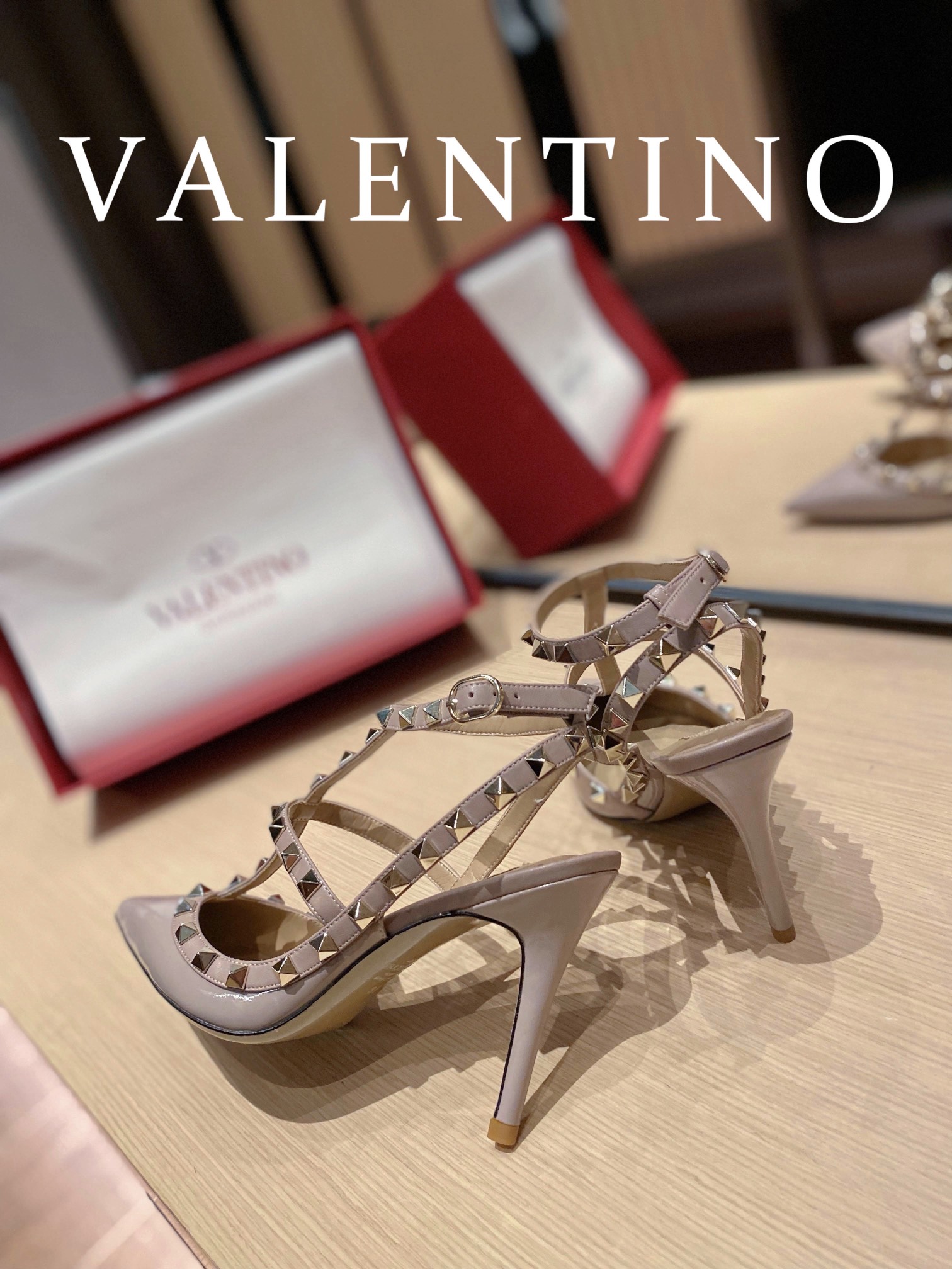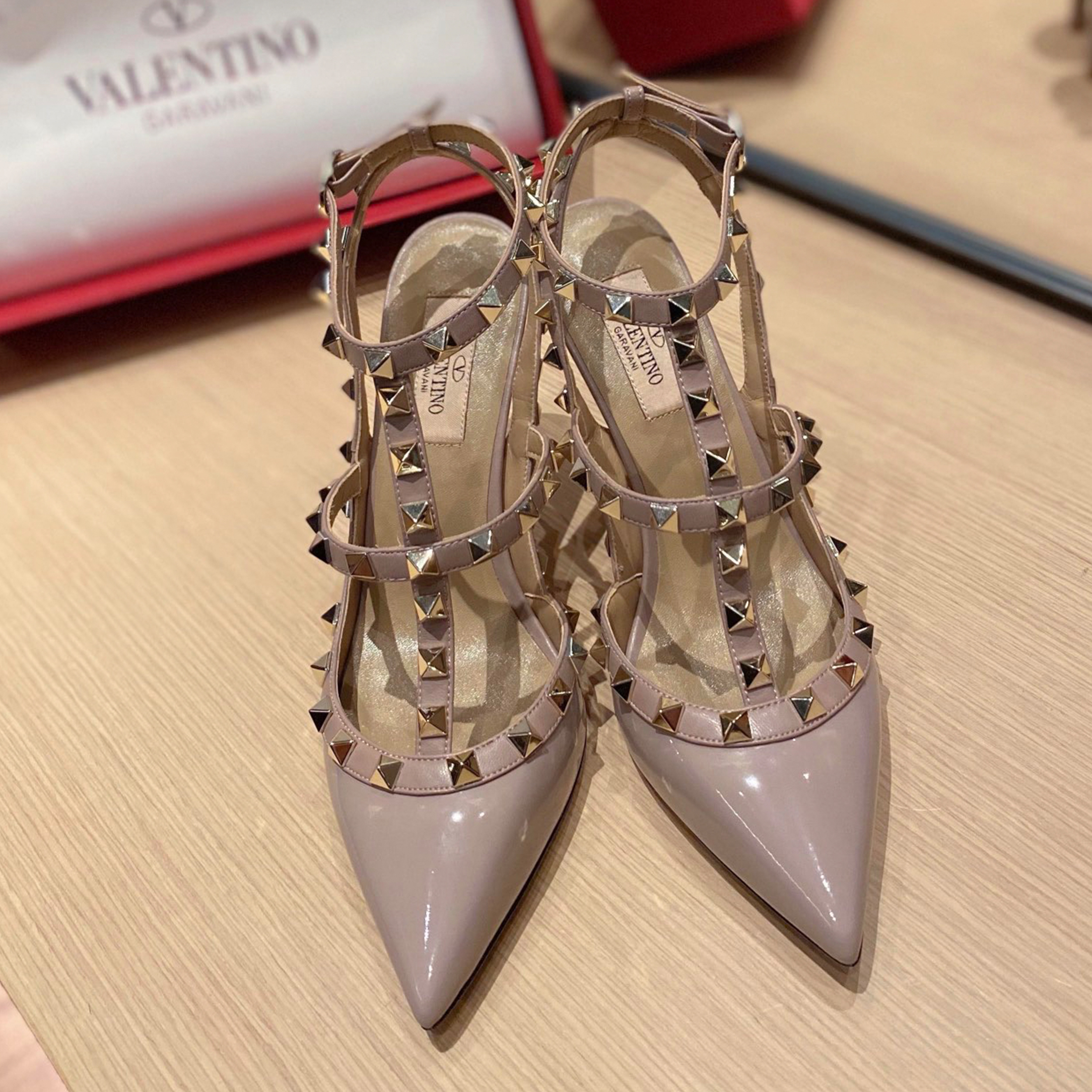NIGO Valentino Women's Spring And Summer Rivets Cowhide High Heels Mirror Patent Leather Sheepskin Lining High Heels #nigo98361
