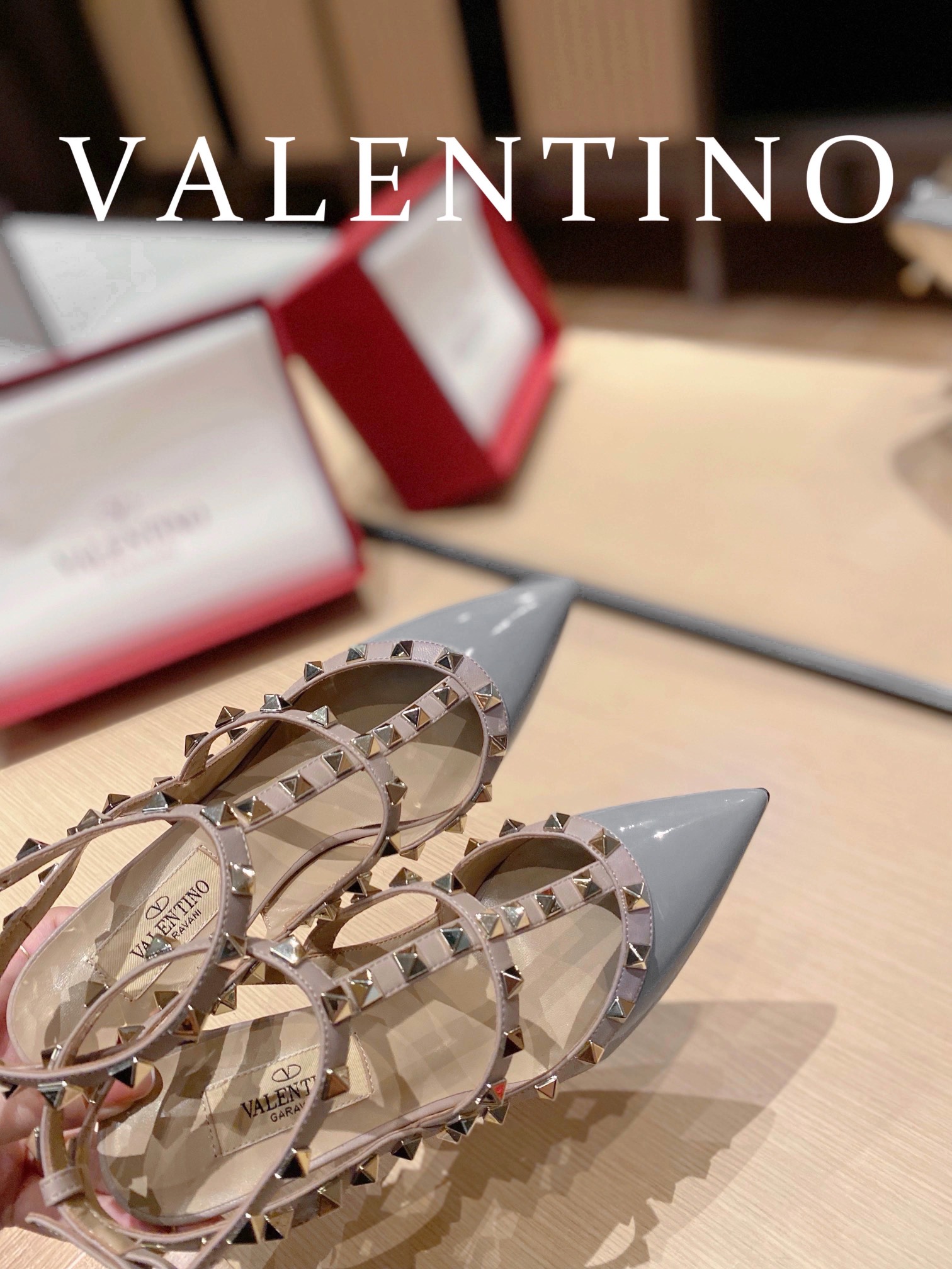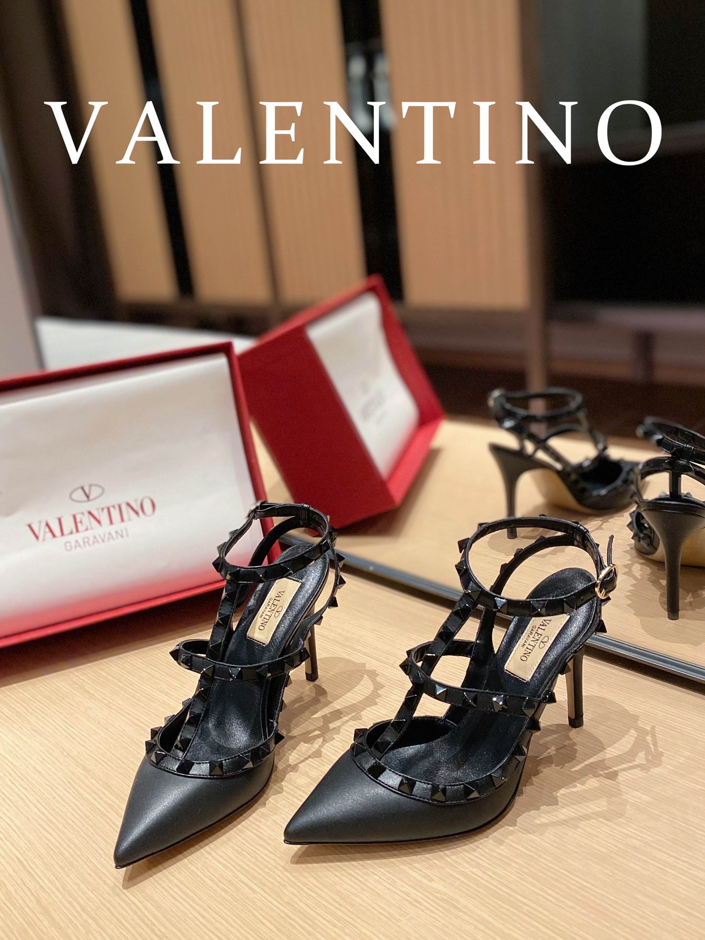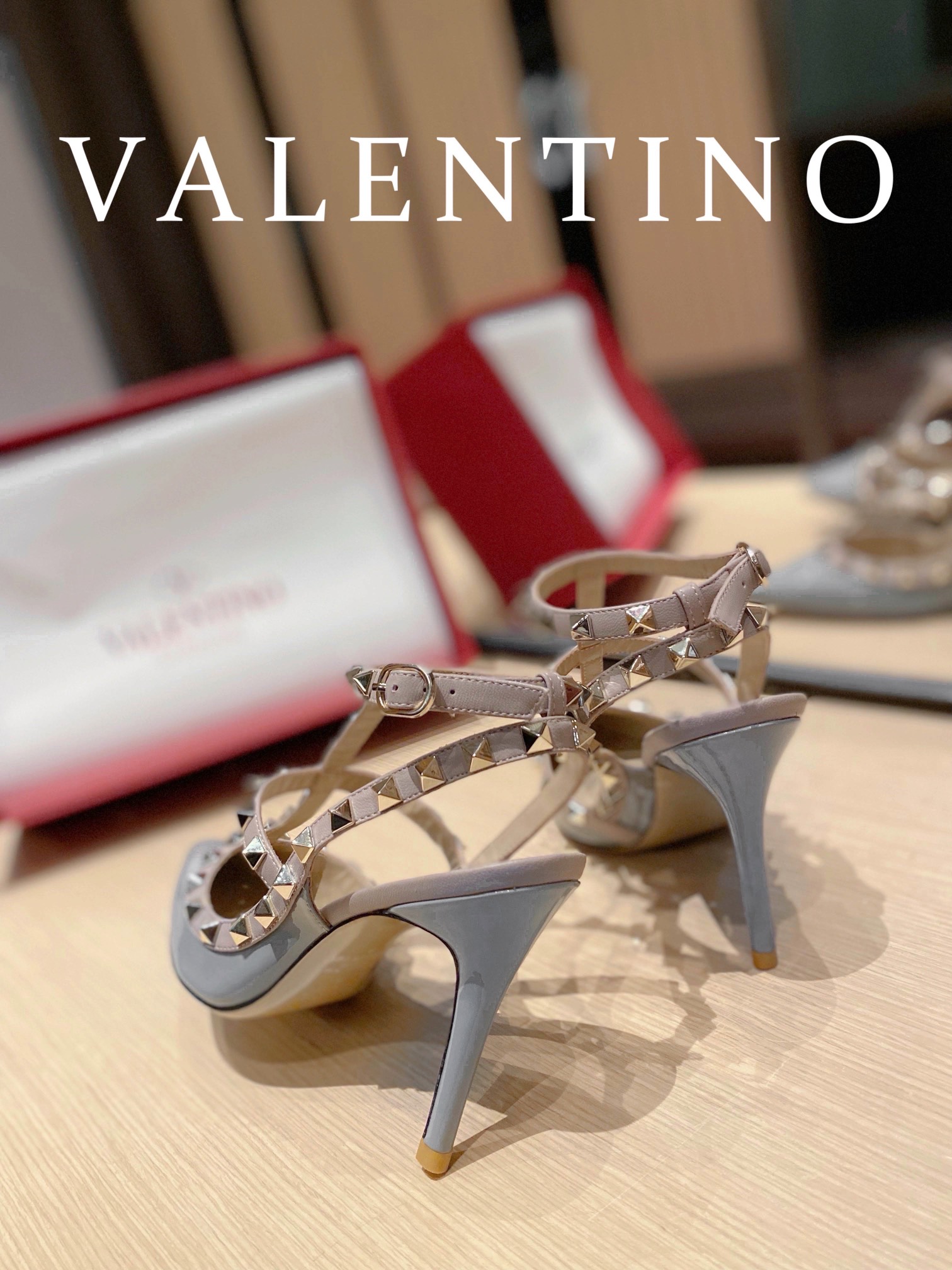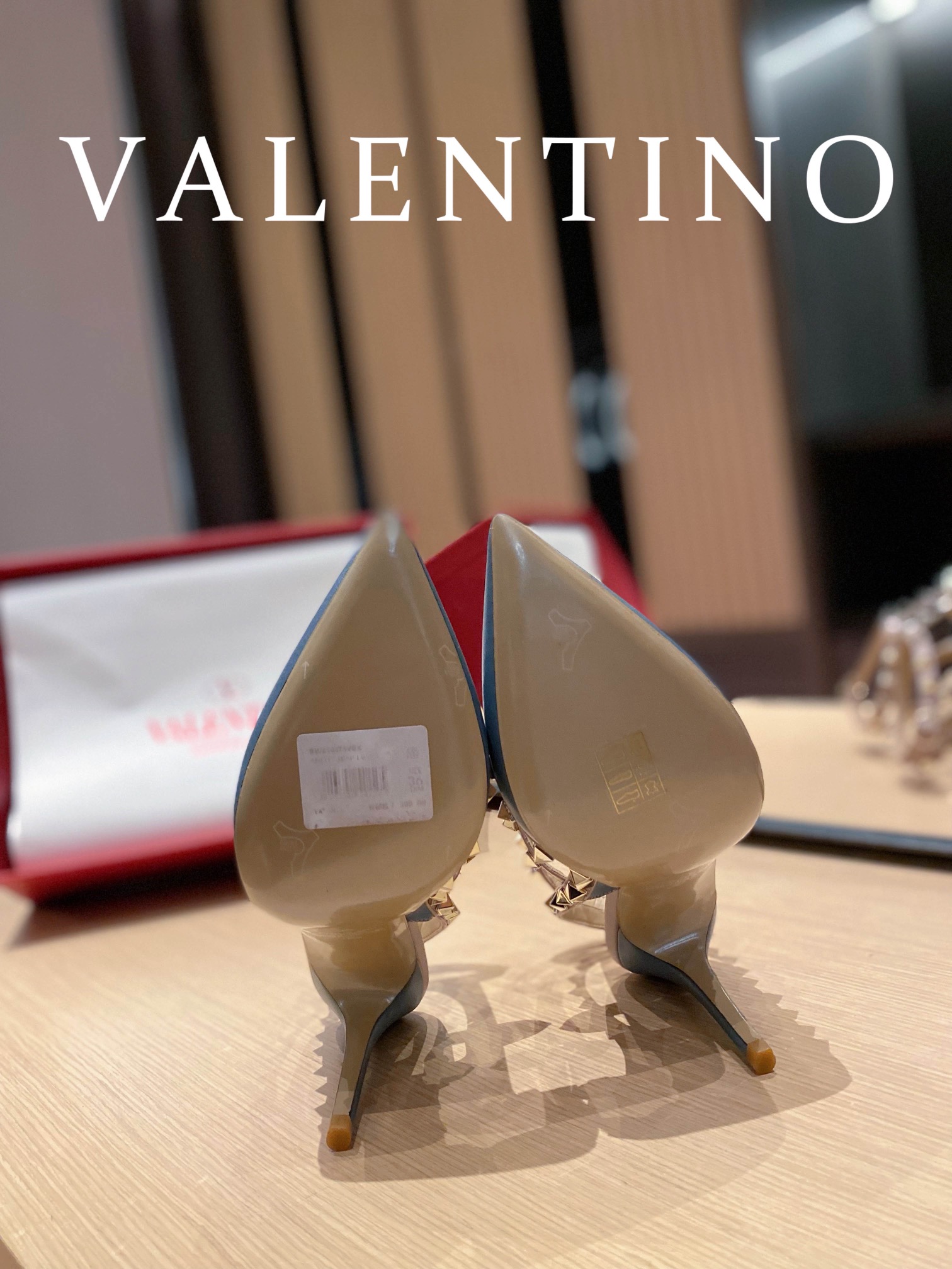 NIGO Valentino Women's Spring And Summer Rivets Cowhide High Heels Mirror Patent Leather Sheepskin Lining High Heels #nigo98361