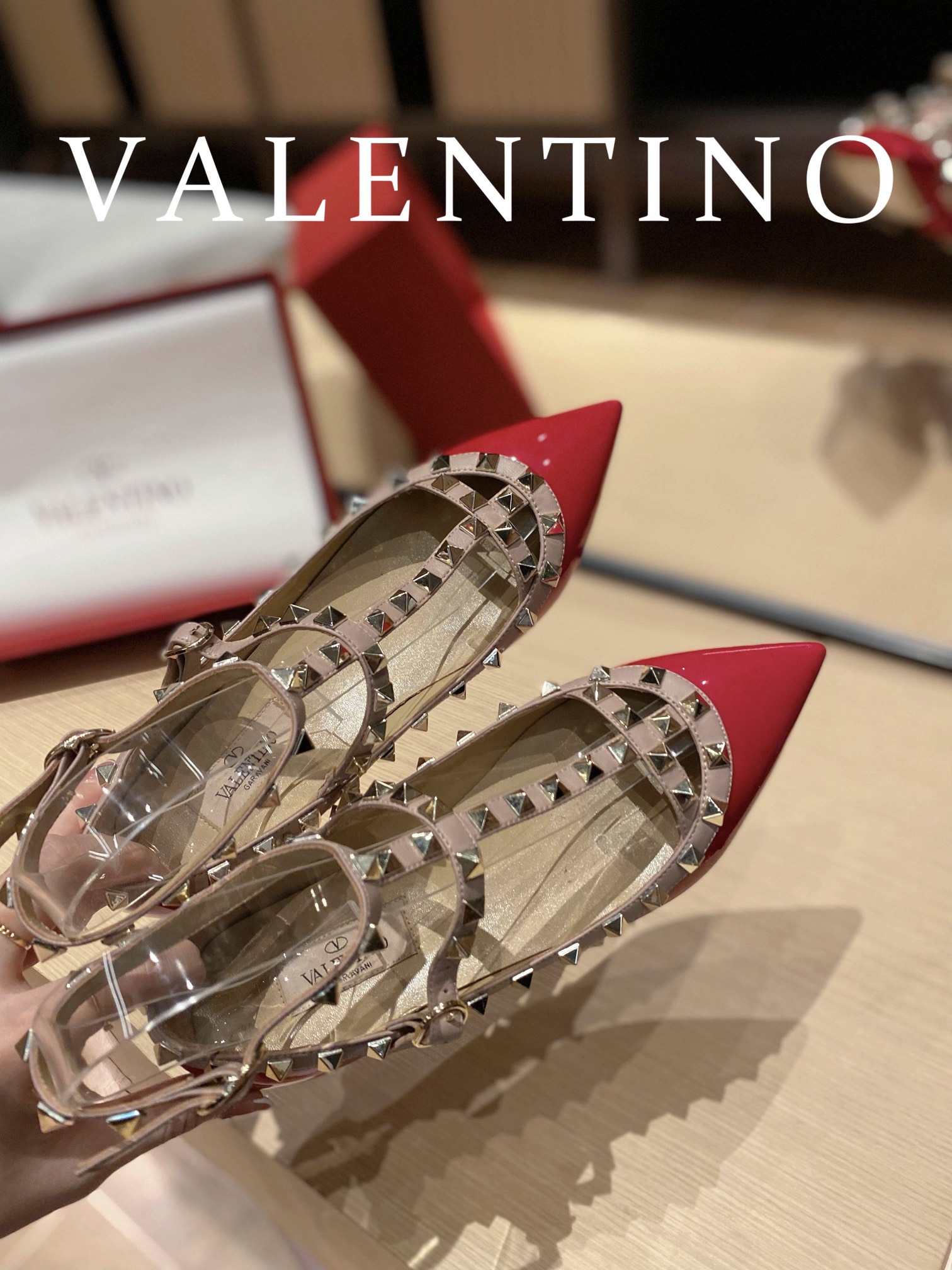 NIGO Valentino Women's Spring And Summer Rivets Cowhide Single Shoes Mirror Patent Leather Sheepskin Lining High-heeled Shoes #nigo98357