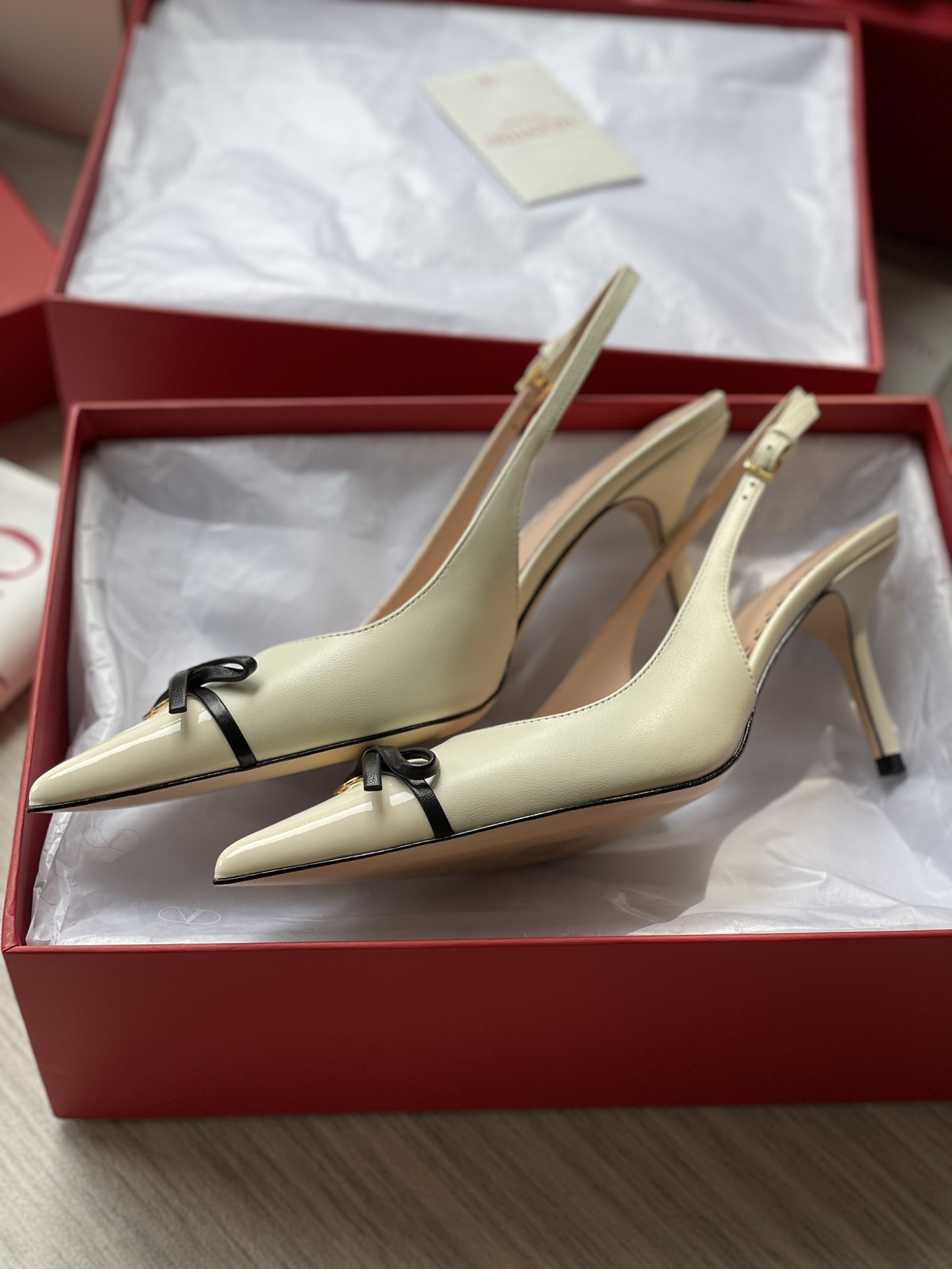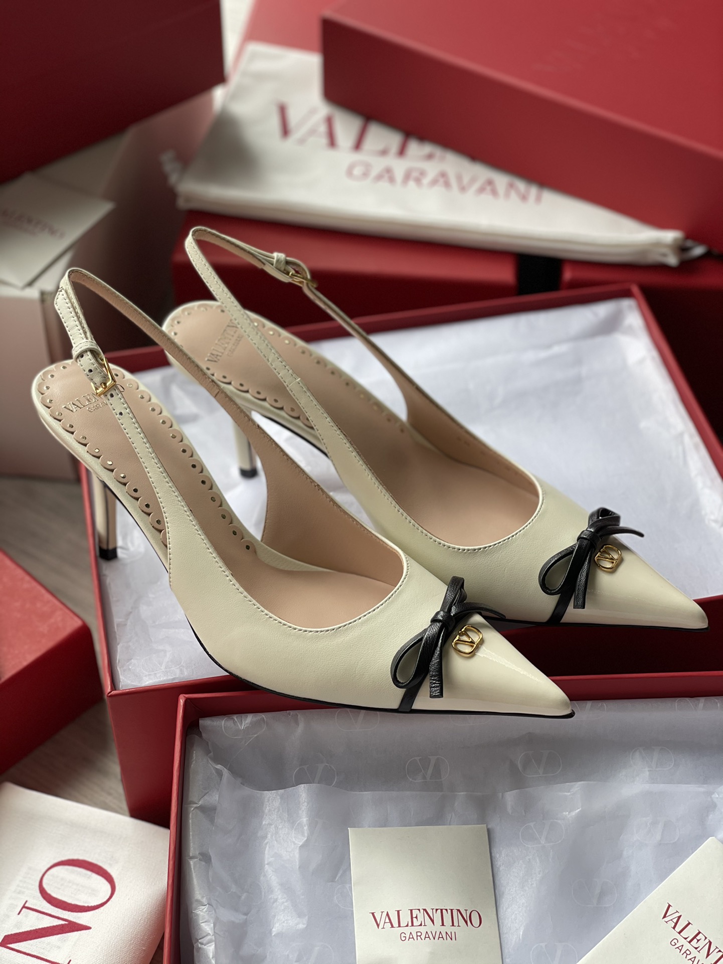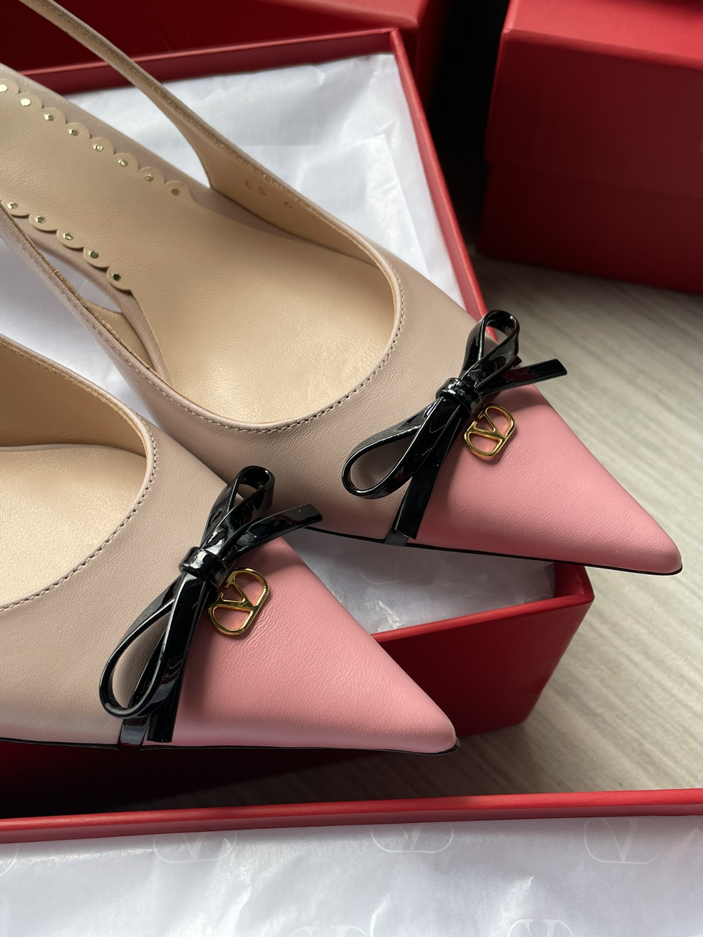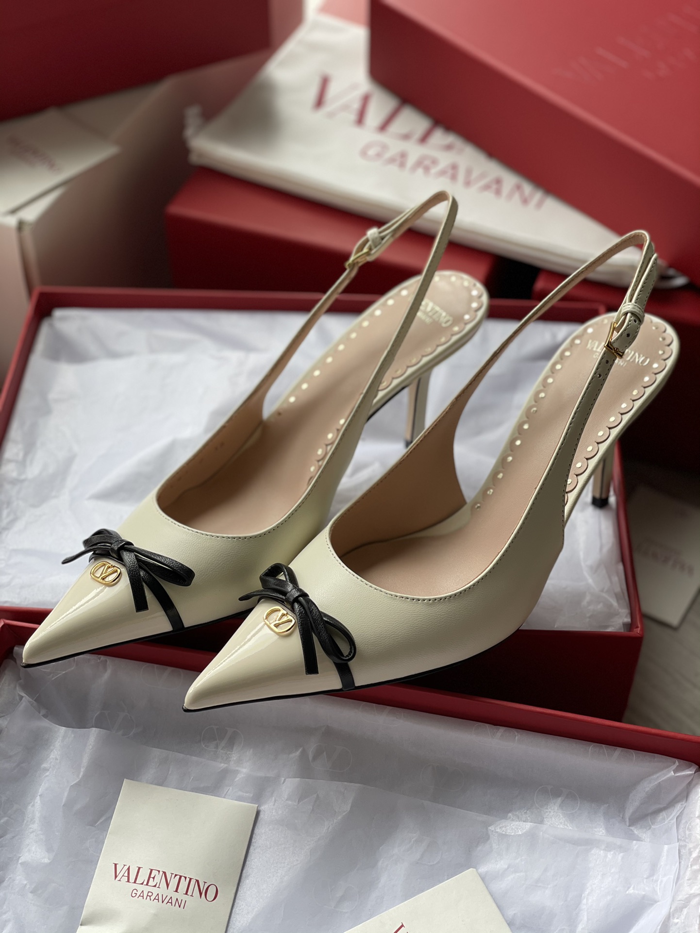NIGO Valentino Women's Spring/Summer Classic Pointed-Toe Bow V-Logo Sandals 8cm Heel Height and 4cm Heel Height High Heels Shoes #nigo78842