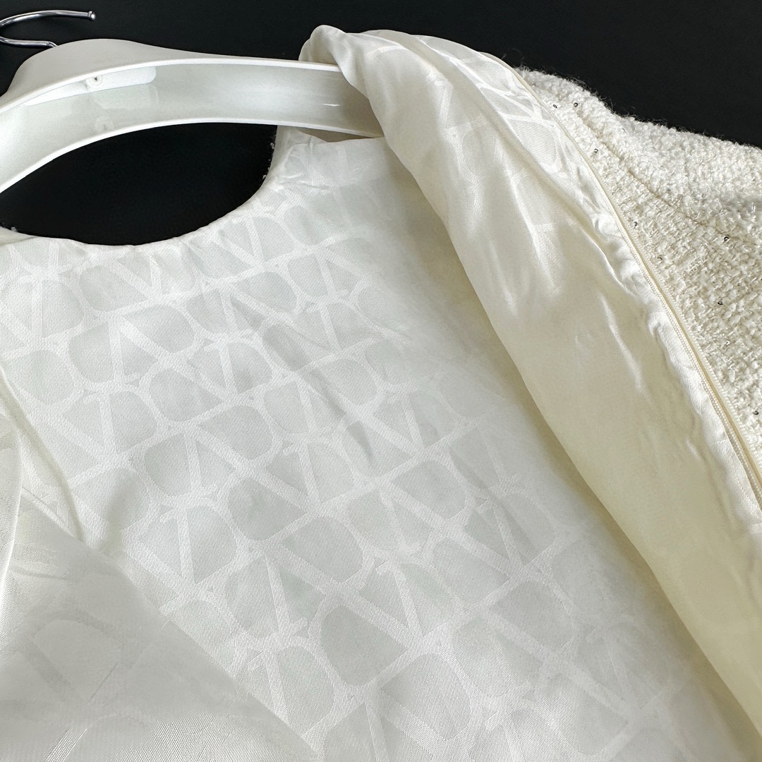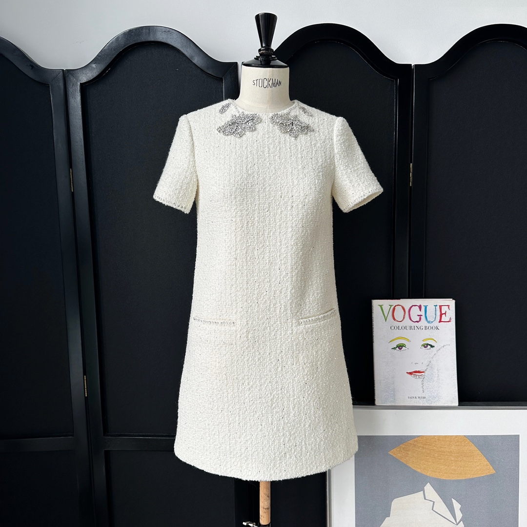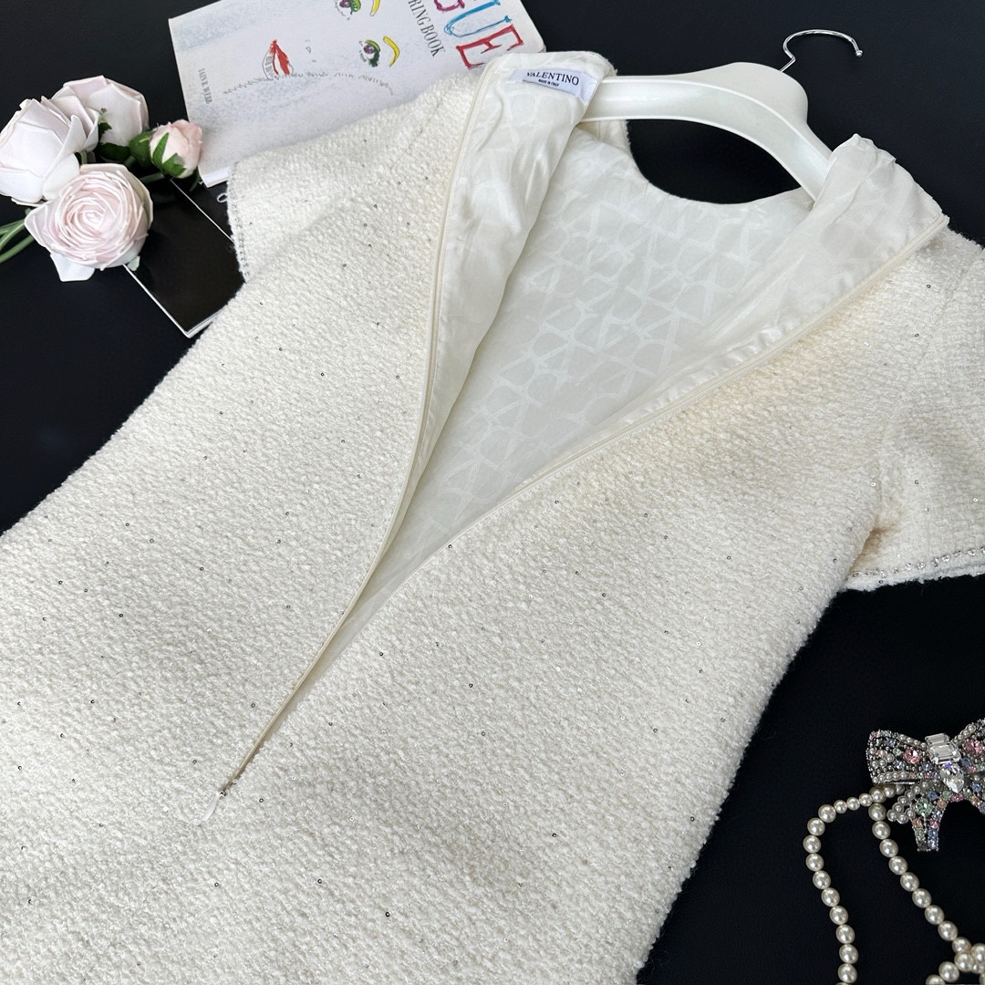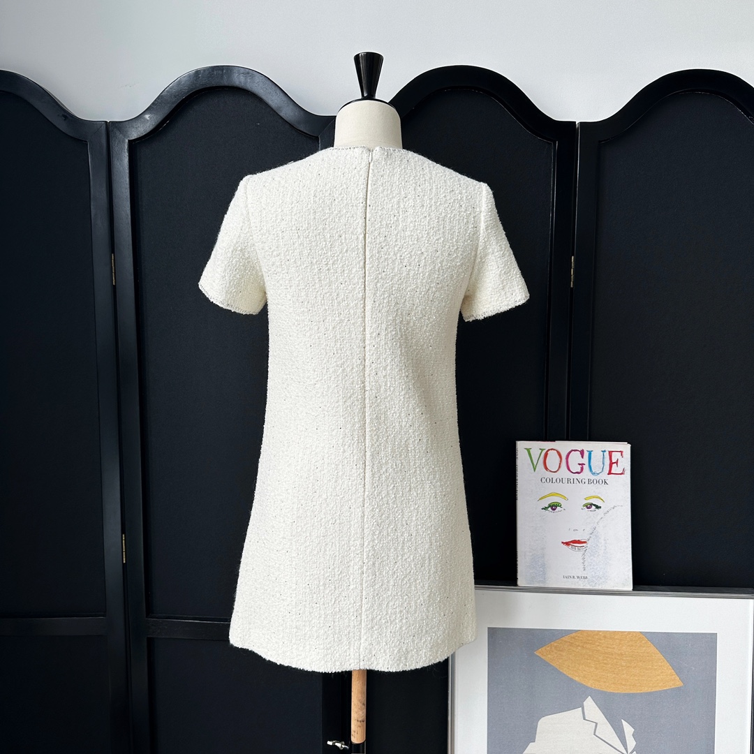 NIGO Valentino Women's Summer Zipper Round Neck Tweed Embroidered White Short Fit Dress Ngvp #nigo8684