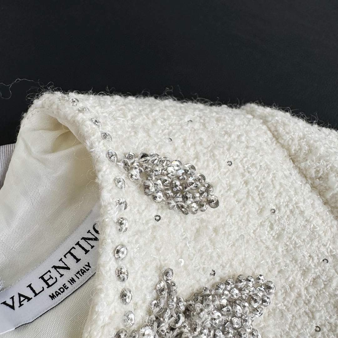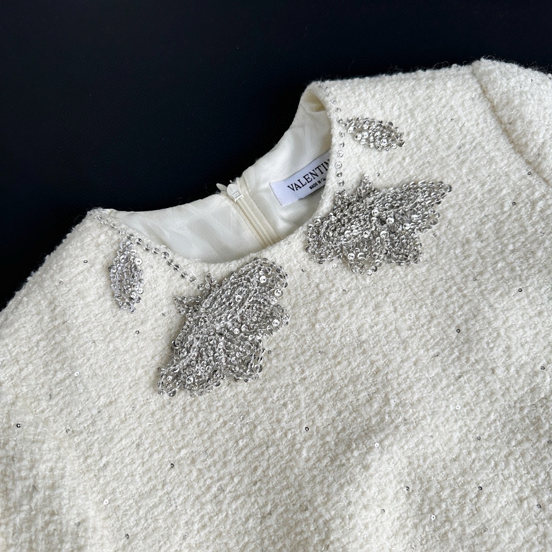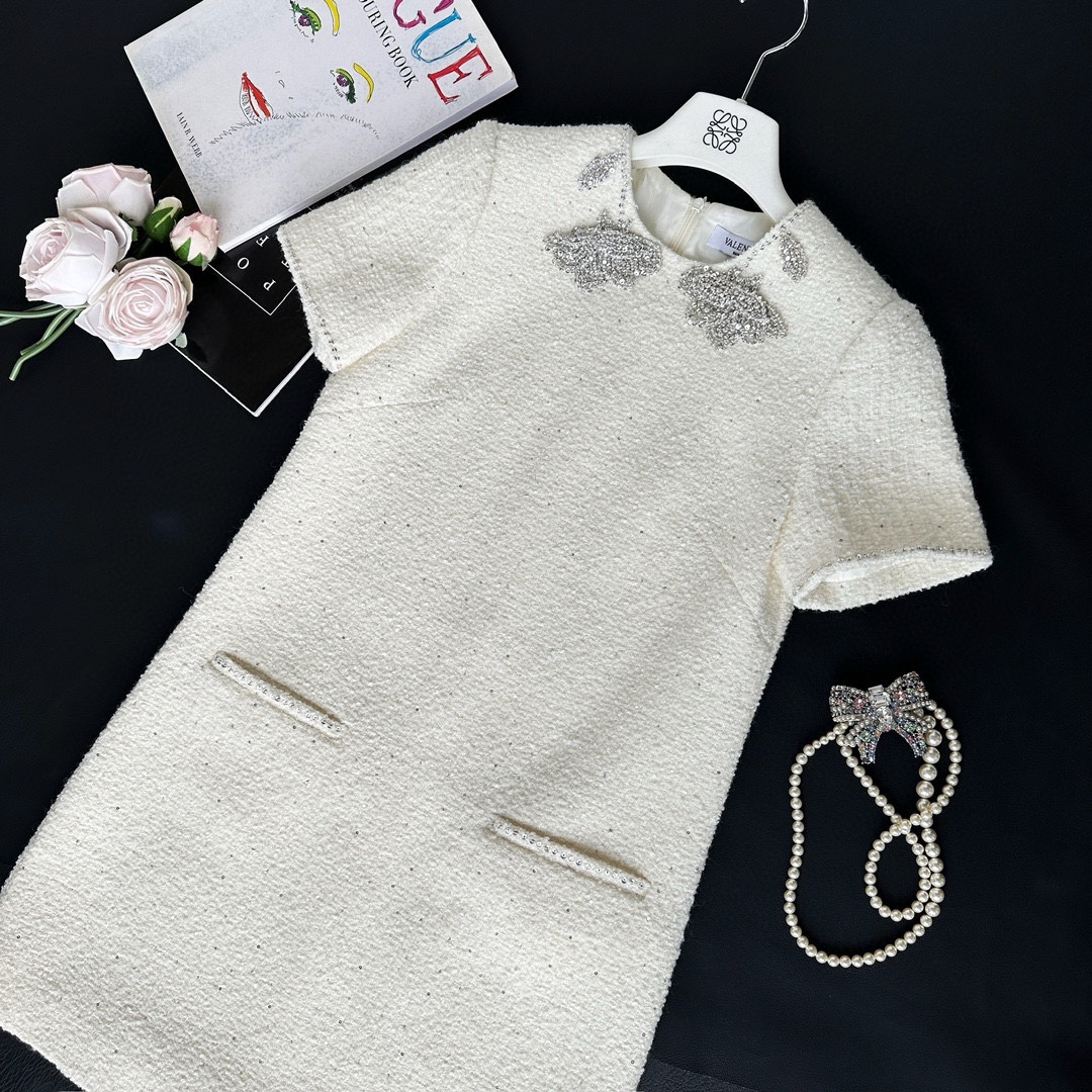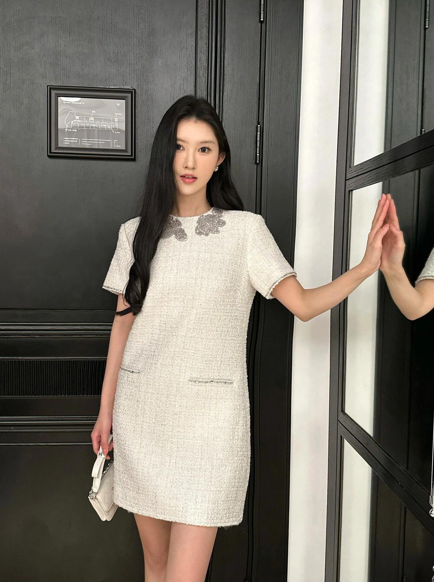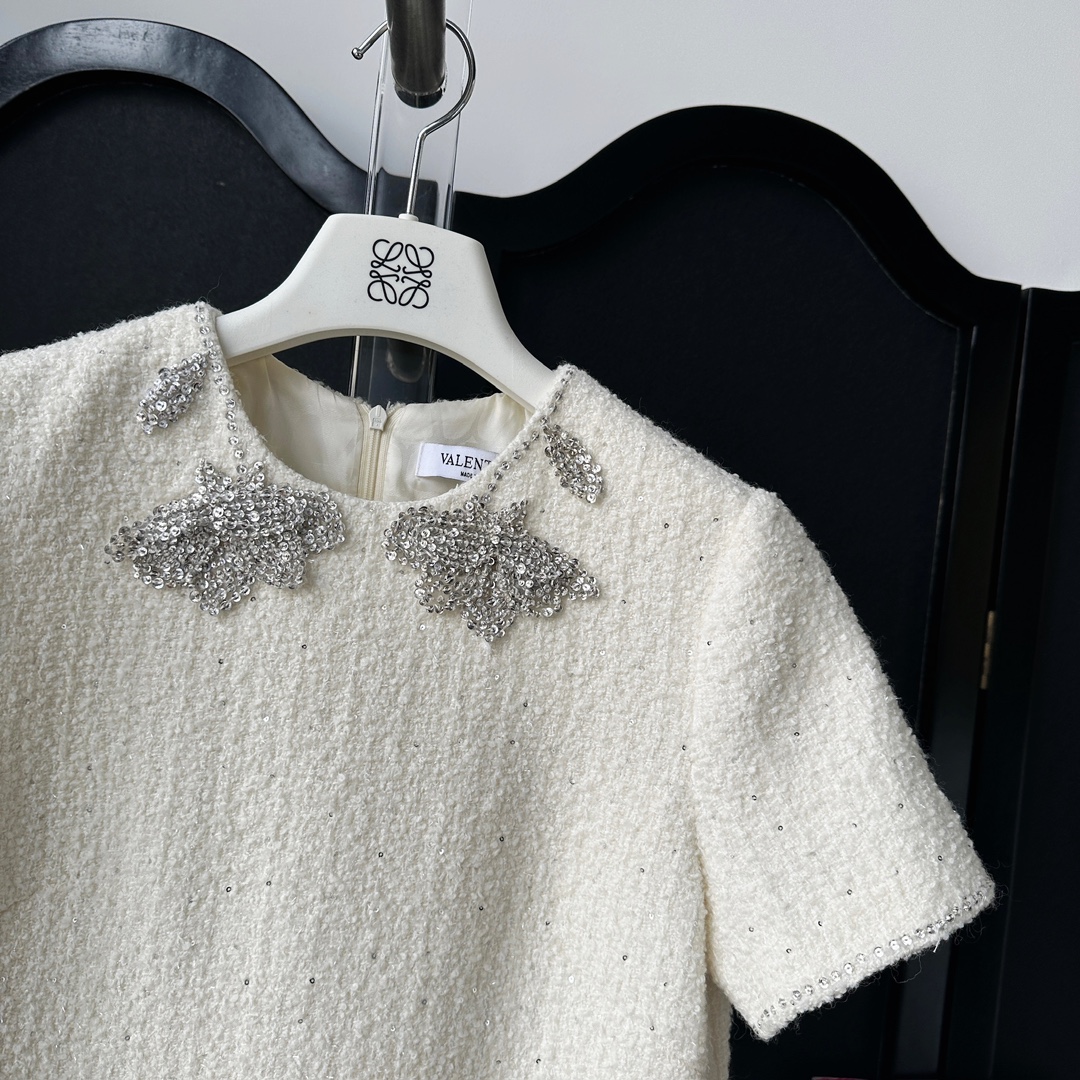 NIGO Valentino Women's Summer Zipper Round Neck Tweed Embroidered White Short Fit Dress Ngvp #nigo8684
