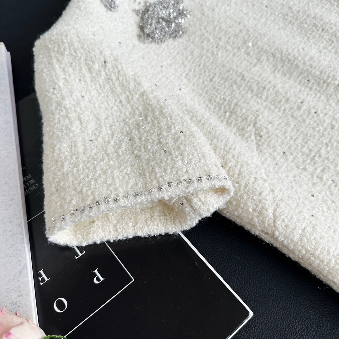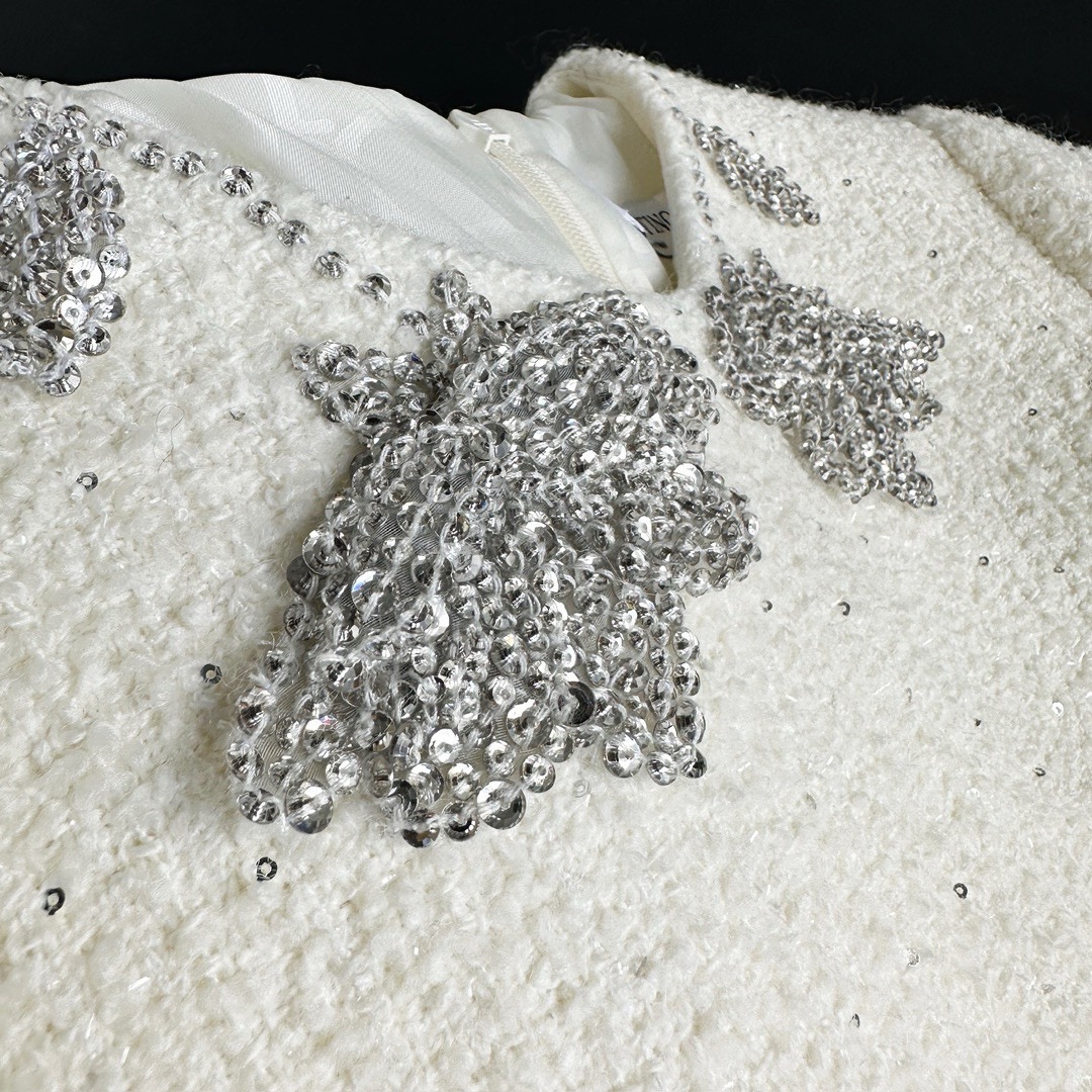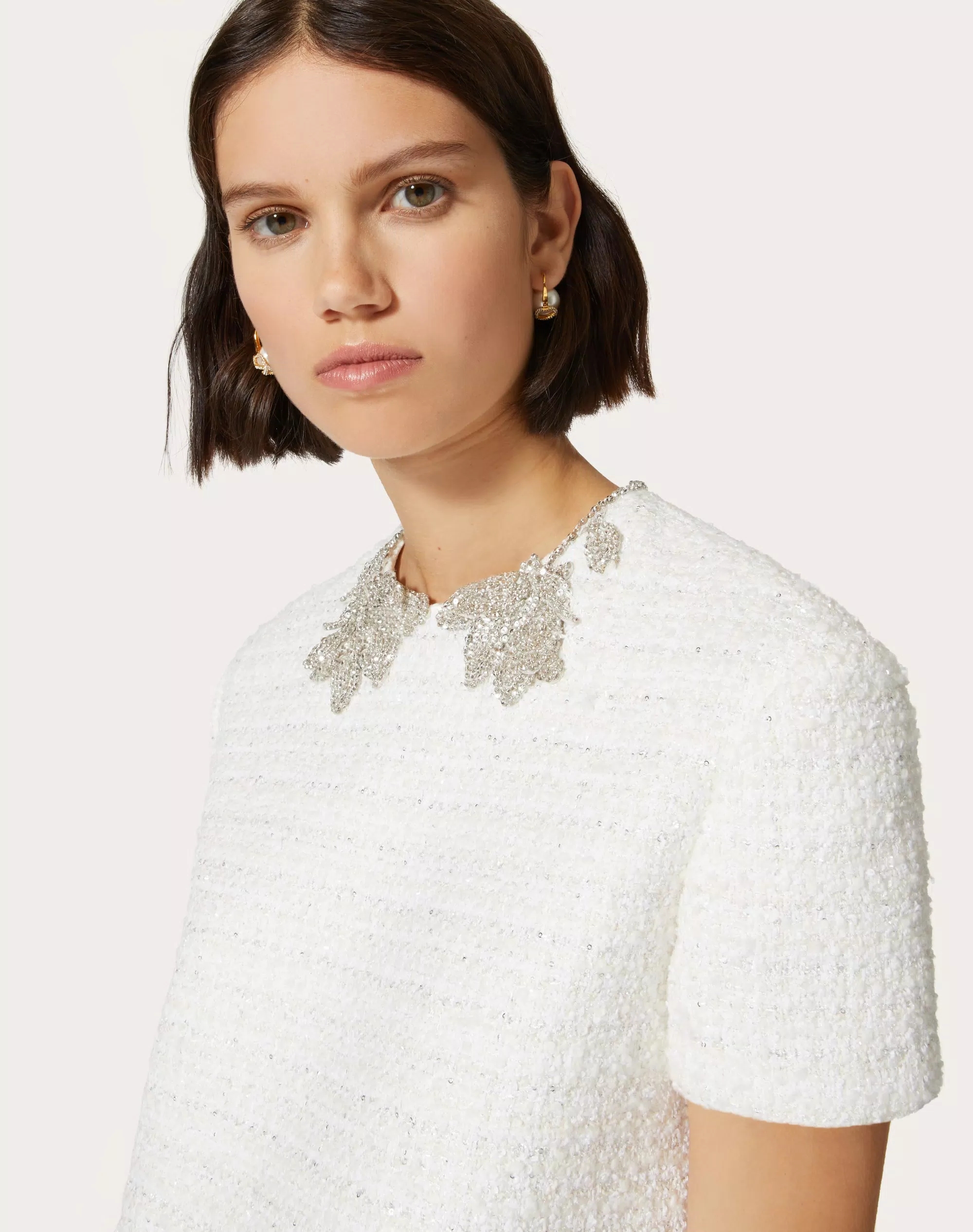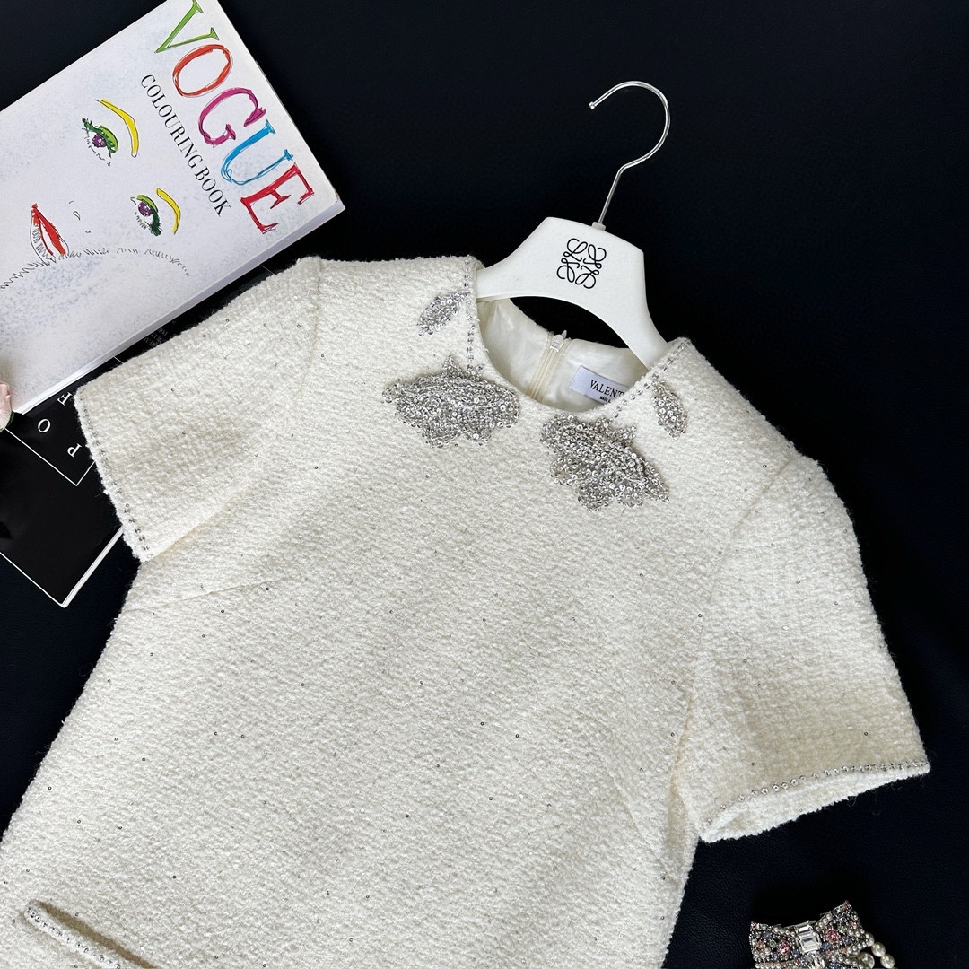 NIGO Valentino Women's Summer Zipper Round Neck Tweed Embroidered White Short Fit Dress Ngvp #nigo8684