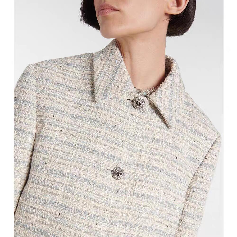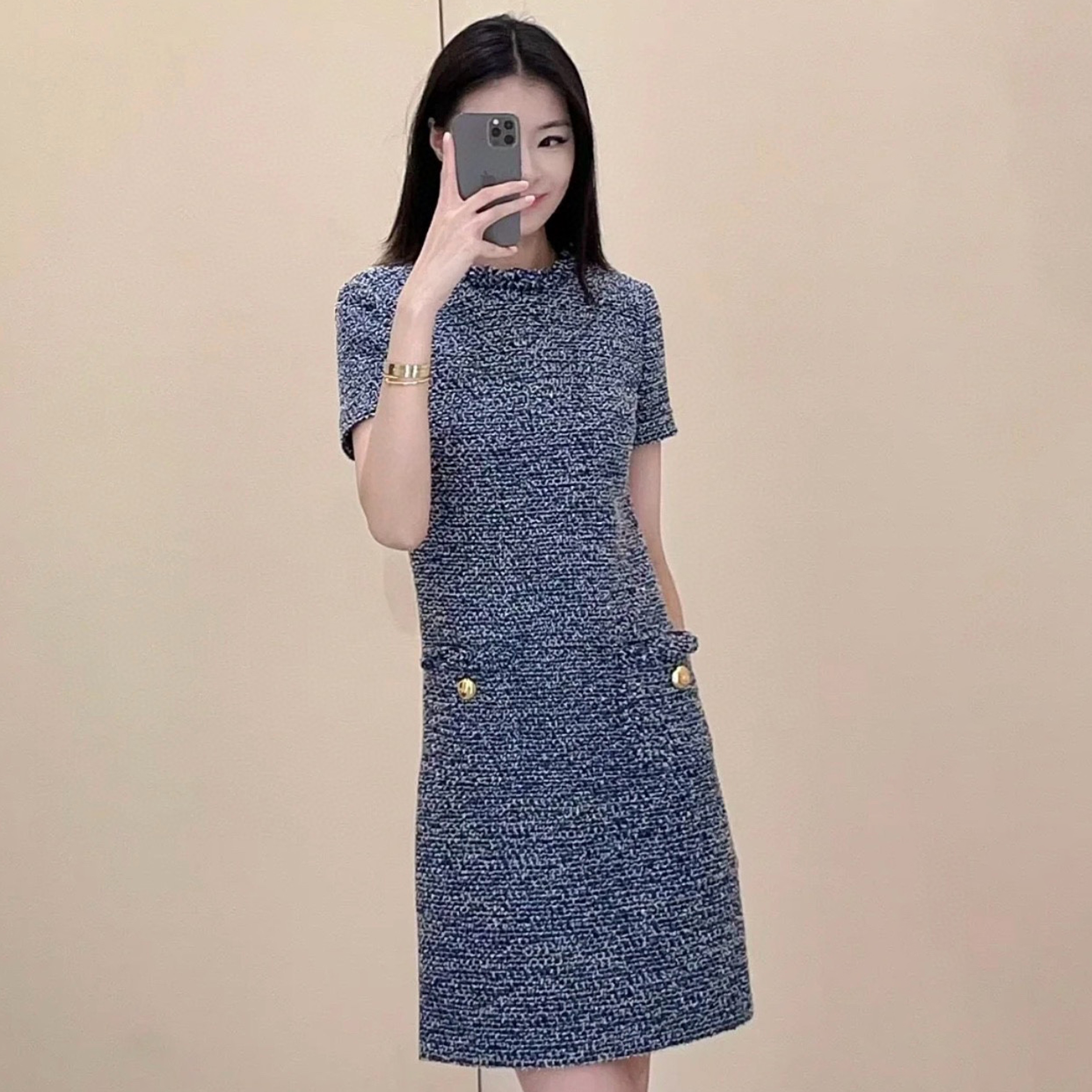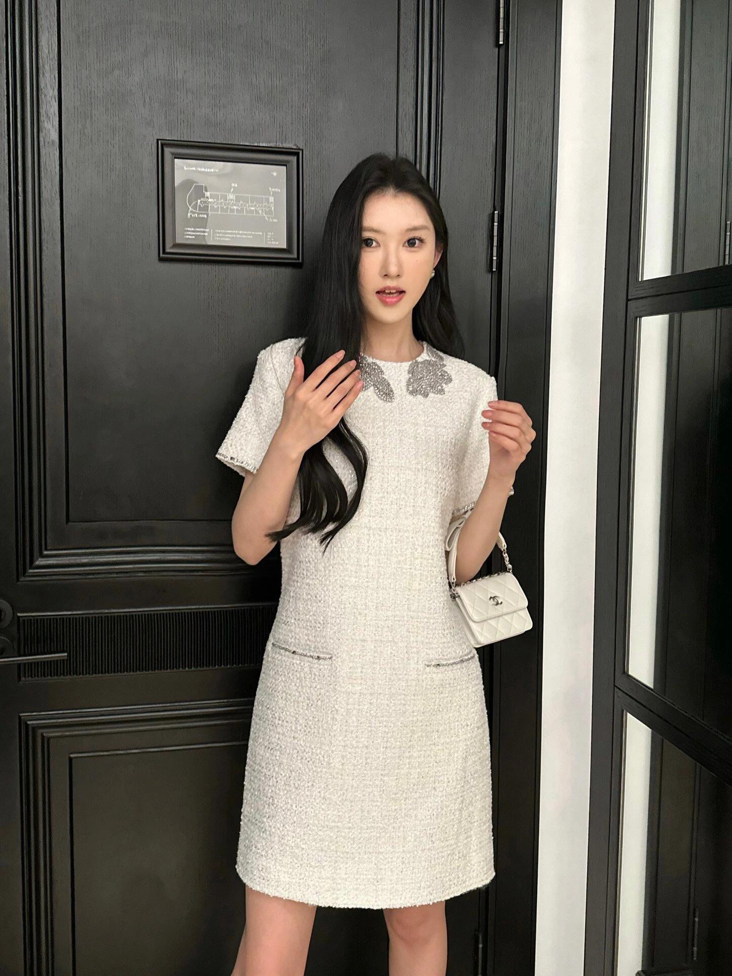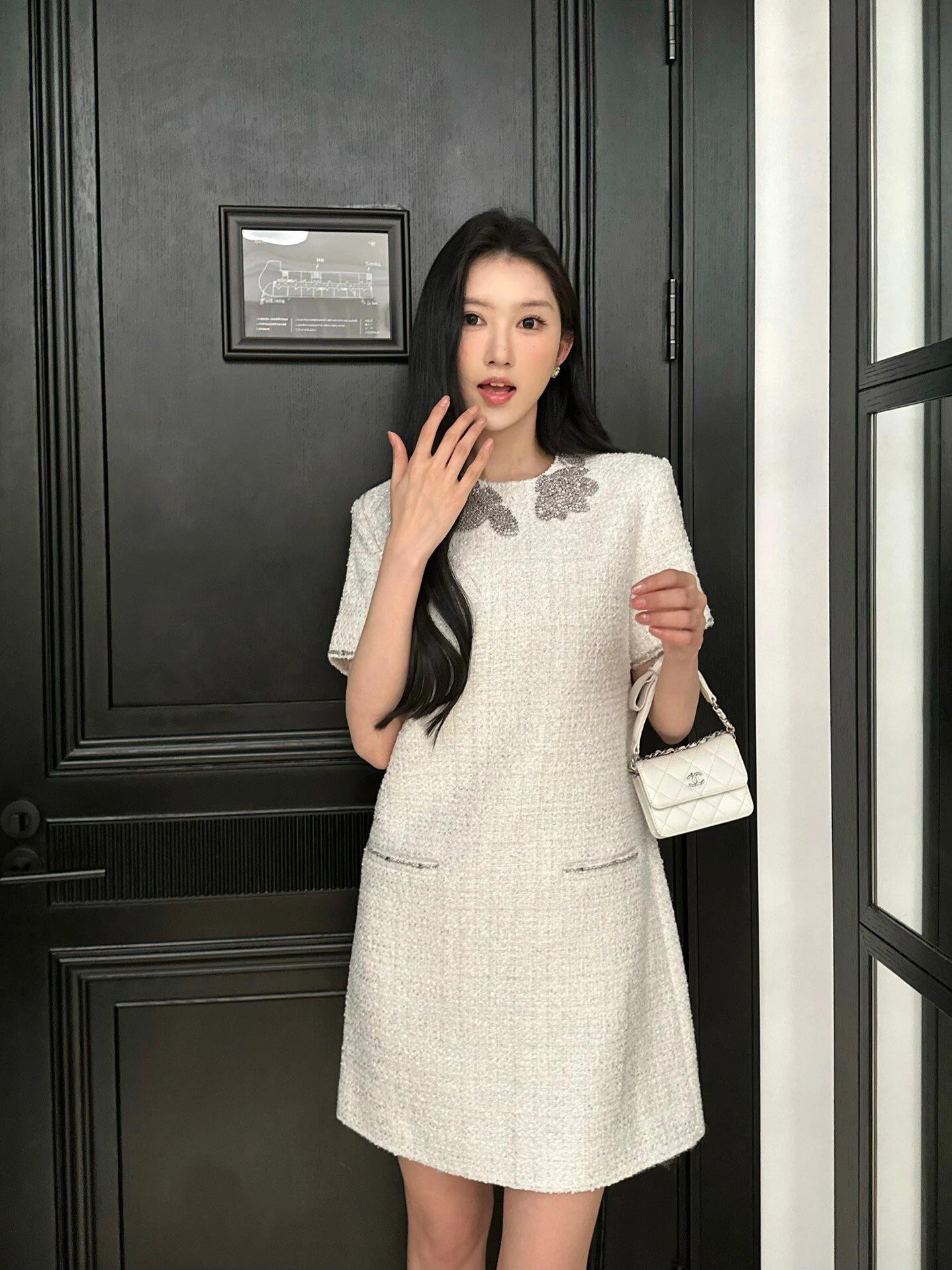 NIGO Valentino Women's Summer Zipper Round Neck Tweed Embroidered White Short Fit Dress Ngvp #nigo8684