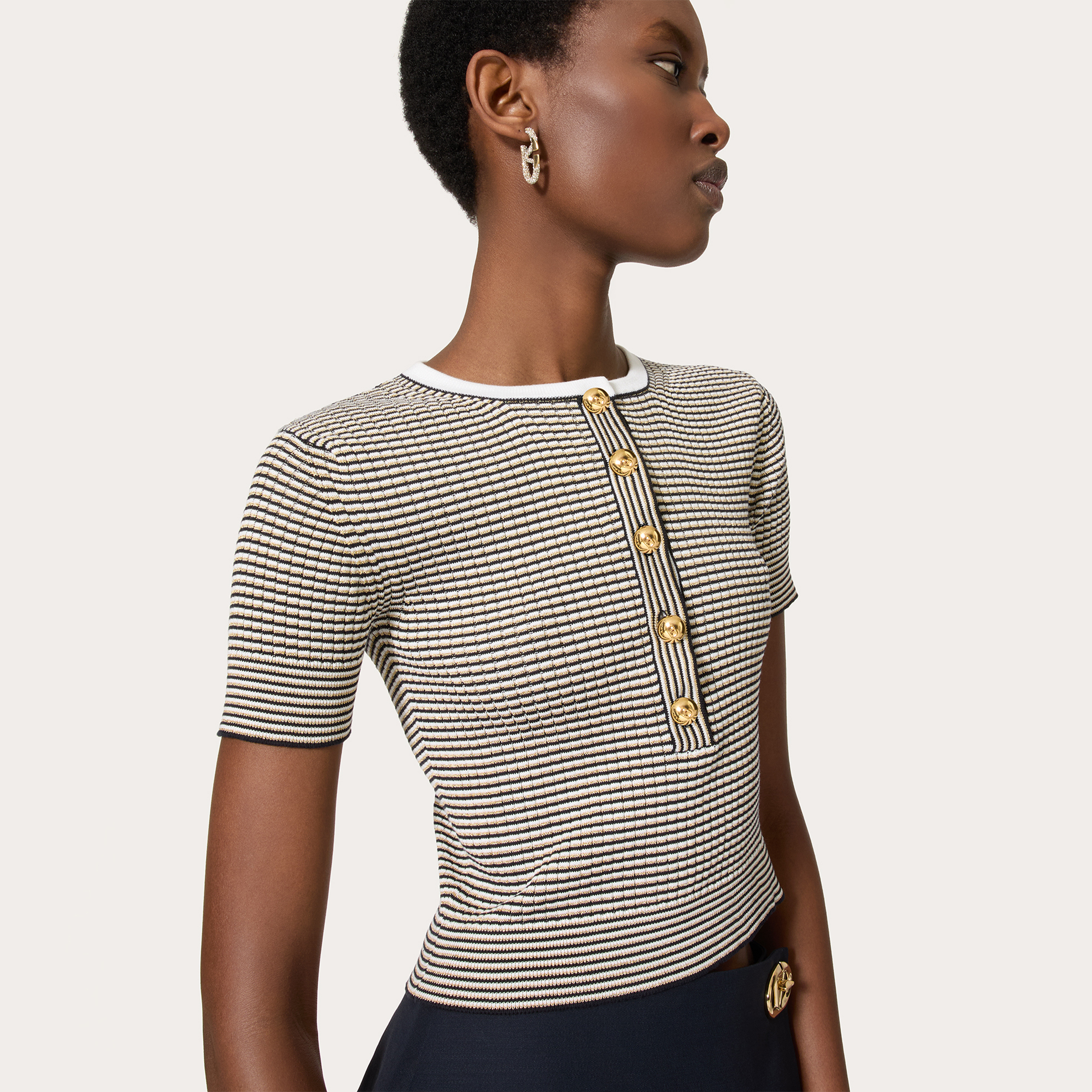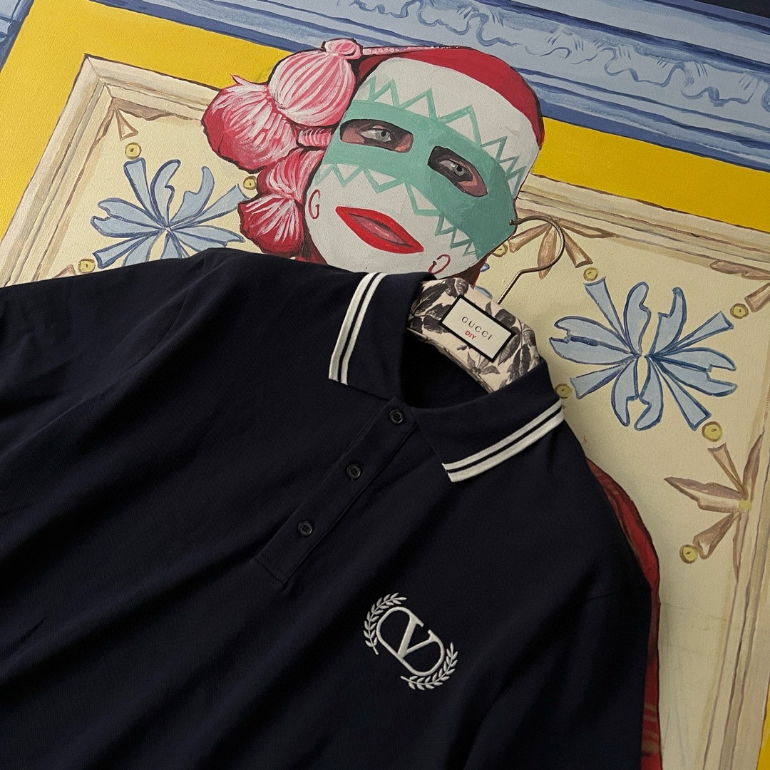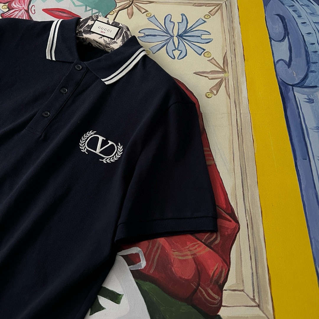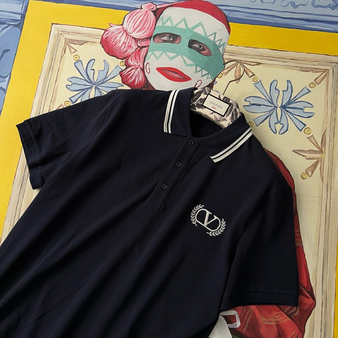 NIGO Valentino Men's Summer Navy Blue Stripe Detail Logo Embroidered Short Sleeve Polo Shirt T-Shirt #nigo72474