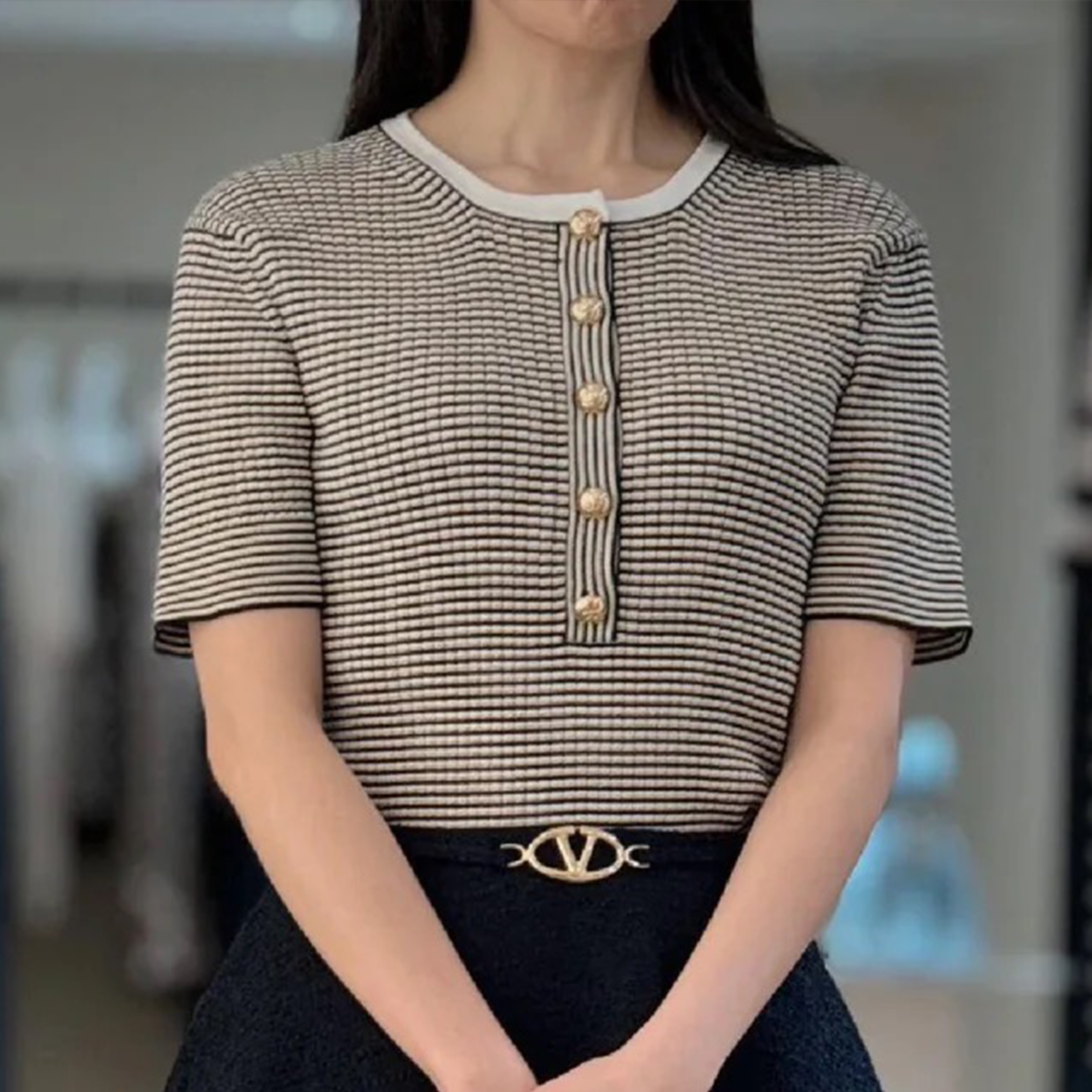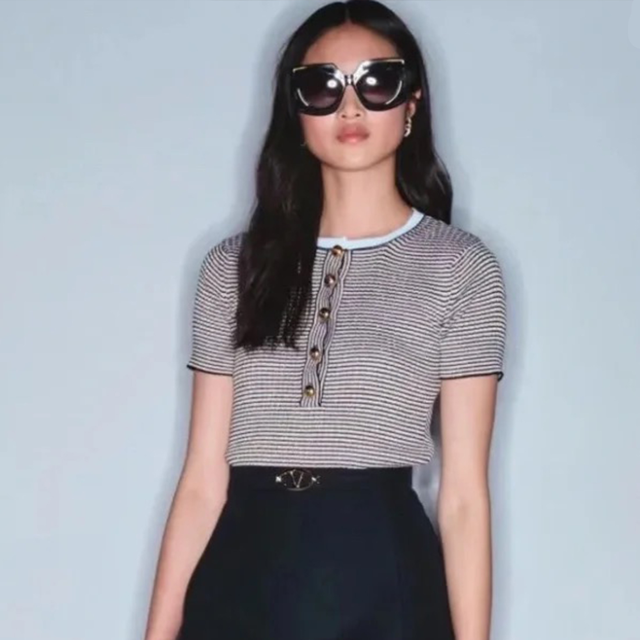 NIGO Valentino Women's Summer Striped Colorblocking Knit Vest Fashion Casual Fit Round Neck Top Ngvp #nigo8934
