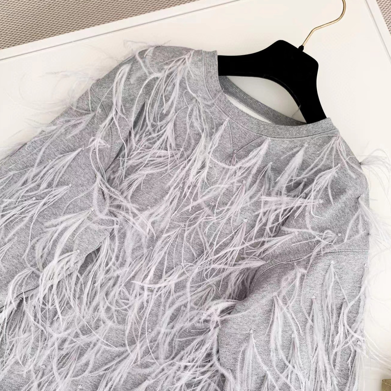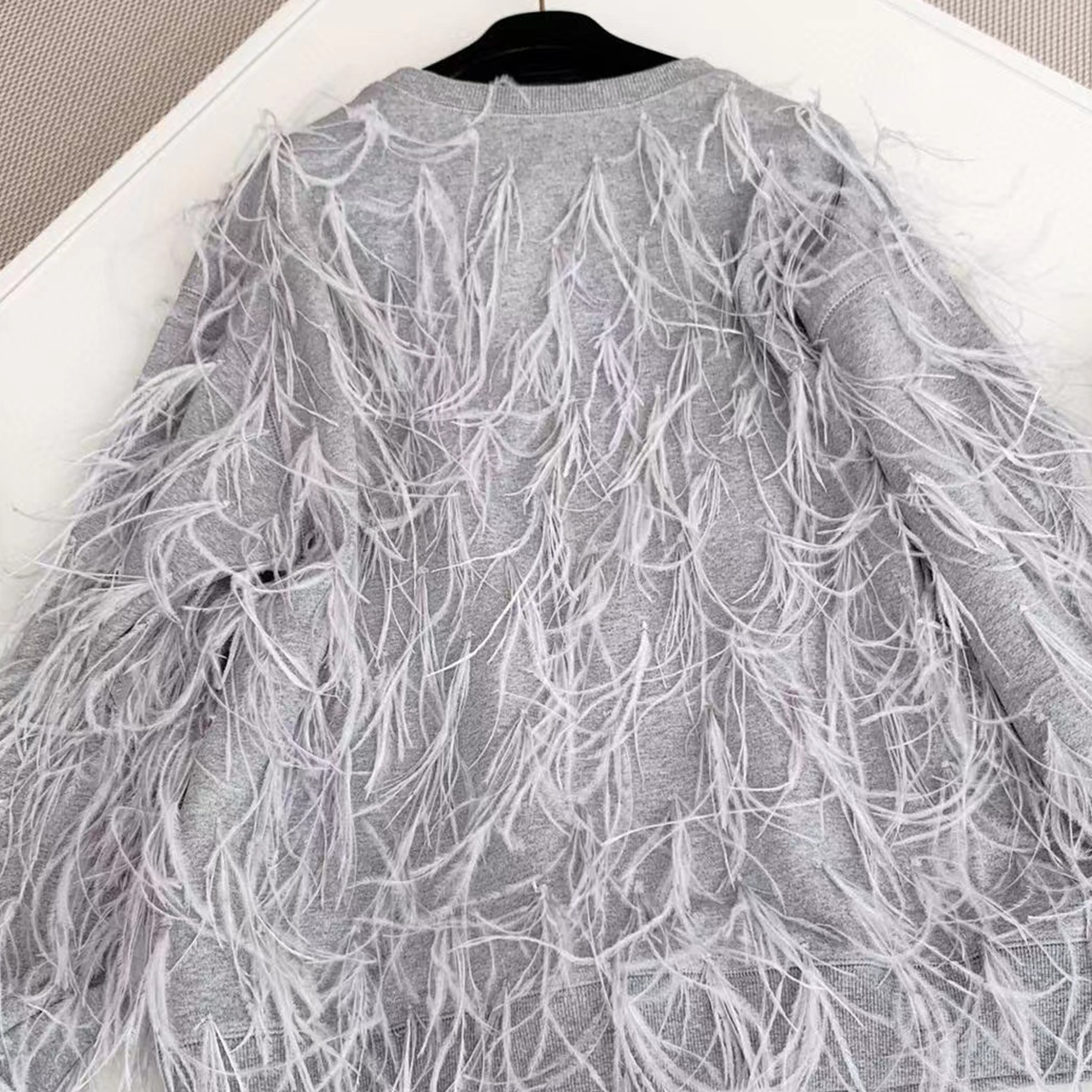Valentino NIGO Woman Feather Long Sleeve Grey Sweatshirt Ngvp #nigo6189