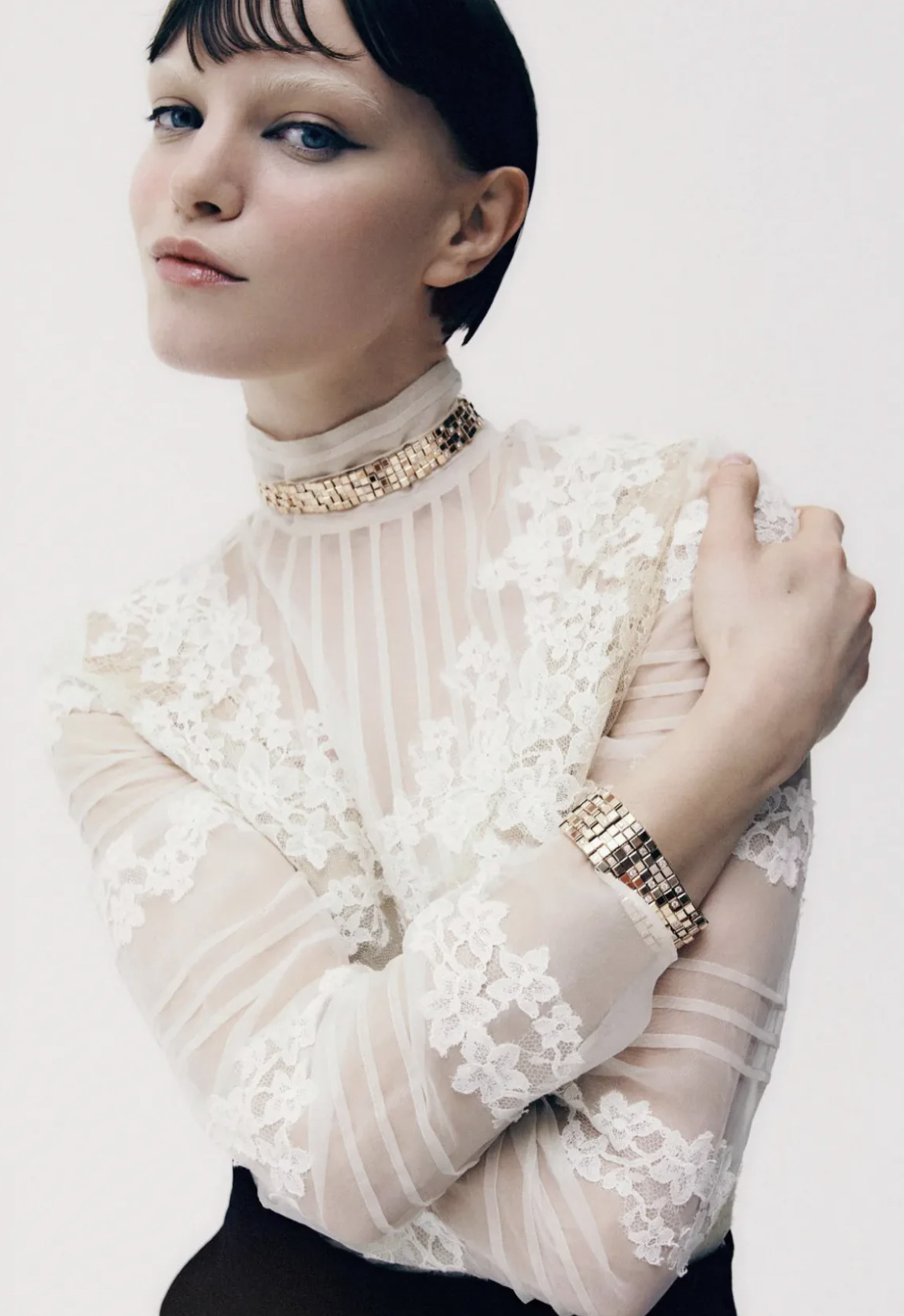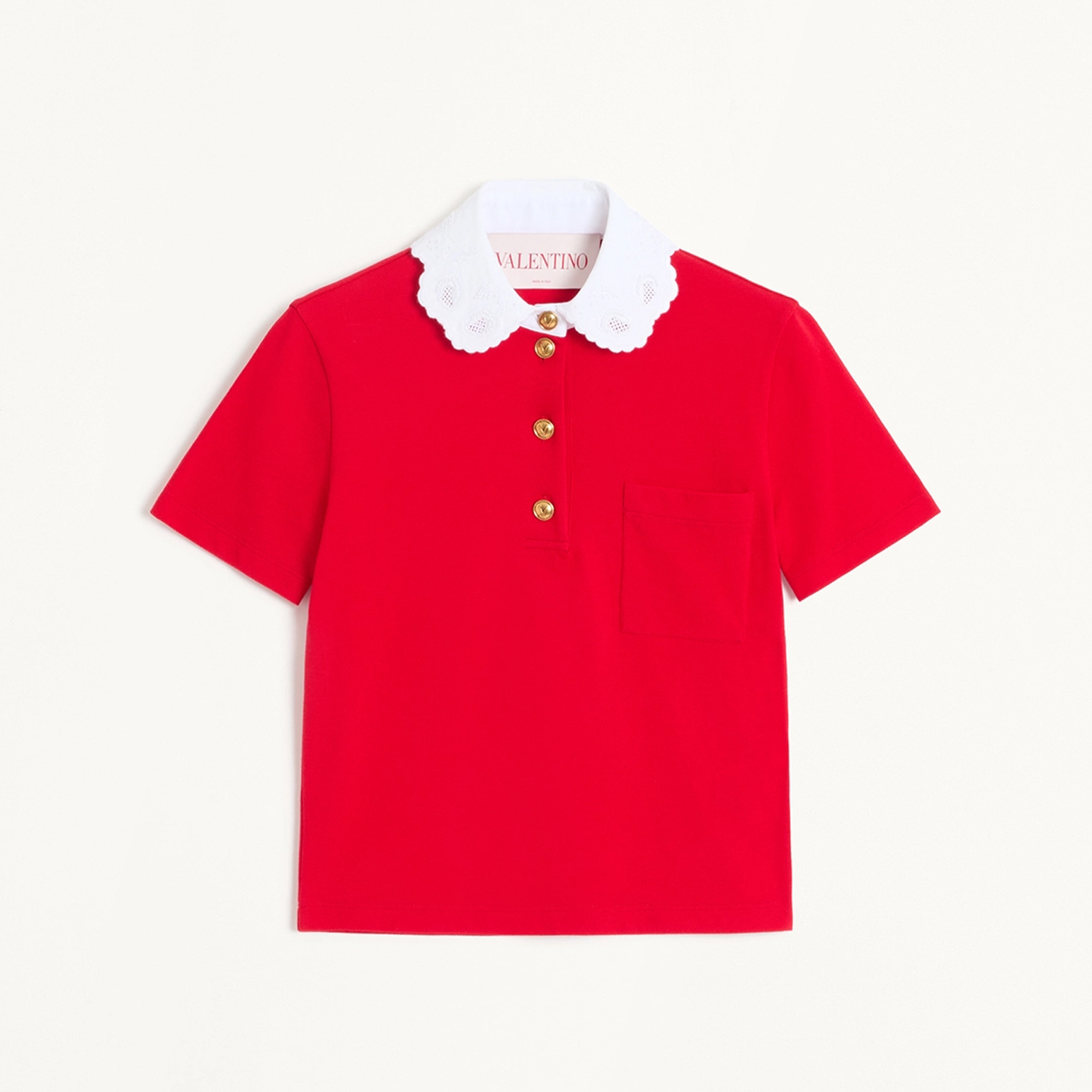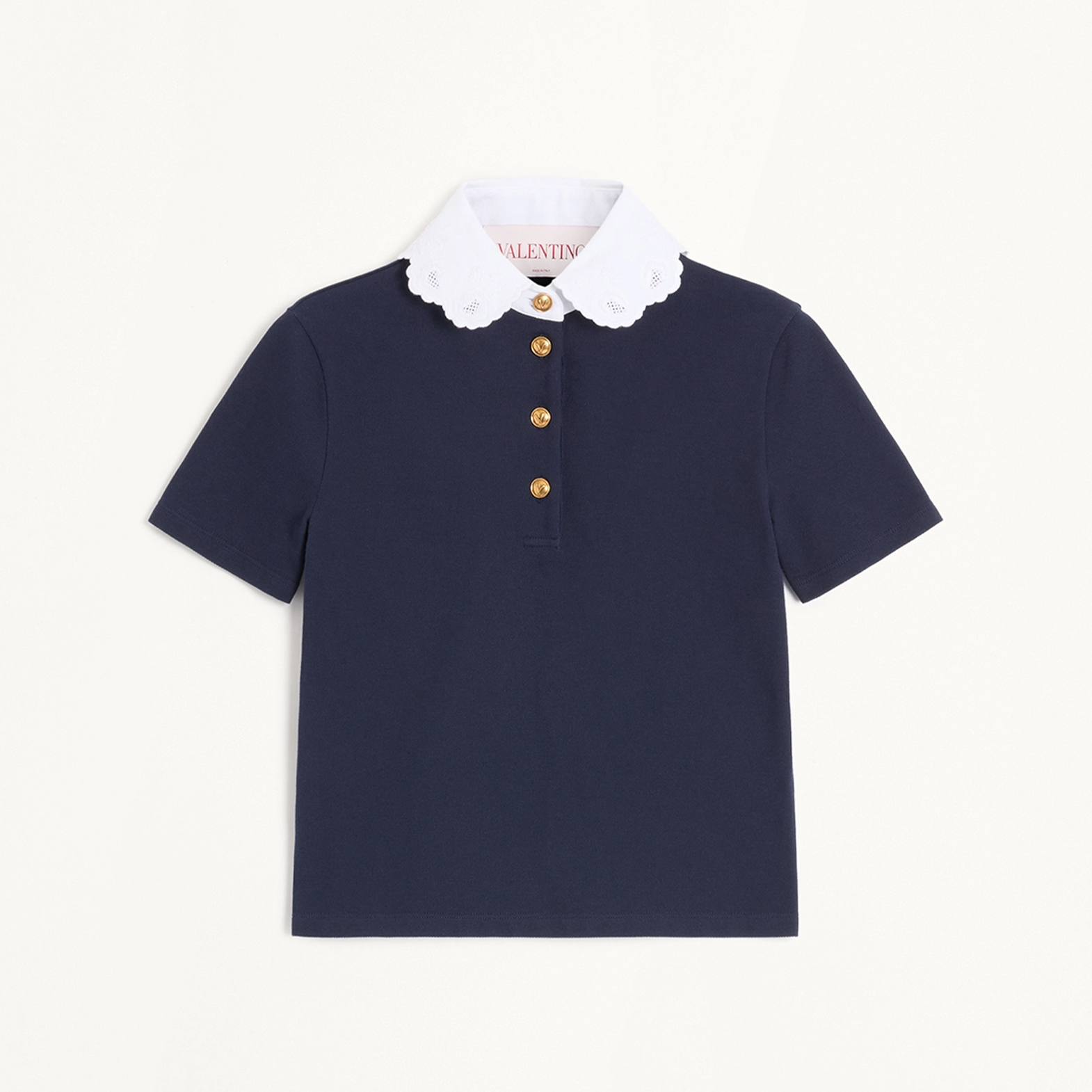 NIGO Valentino Women's Summer Lace Neckline Embroidery Colorblocking Cotton Short Sleeve Polo Shirt Ngvp #nigo1237