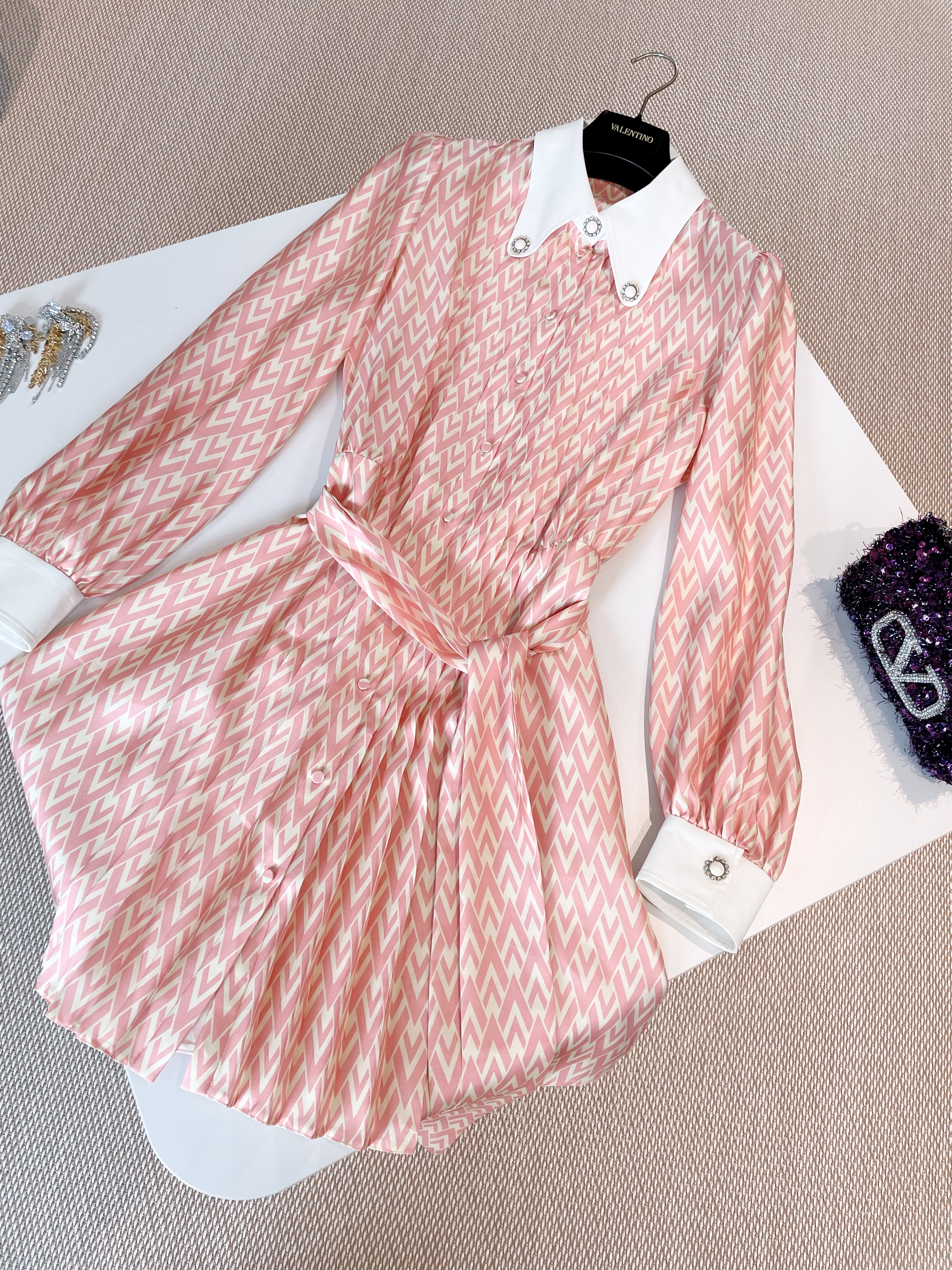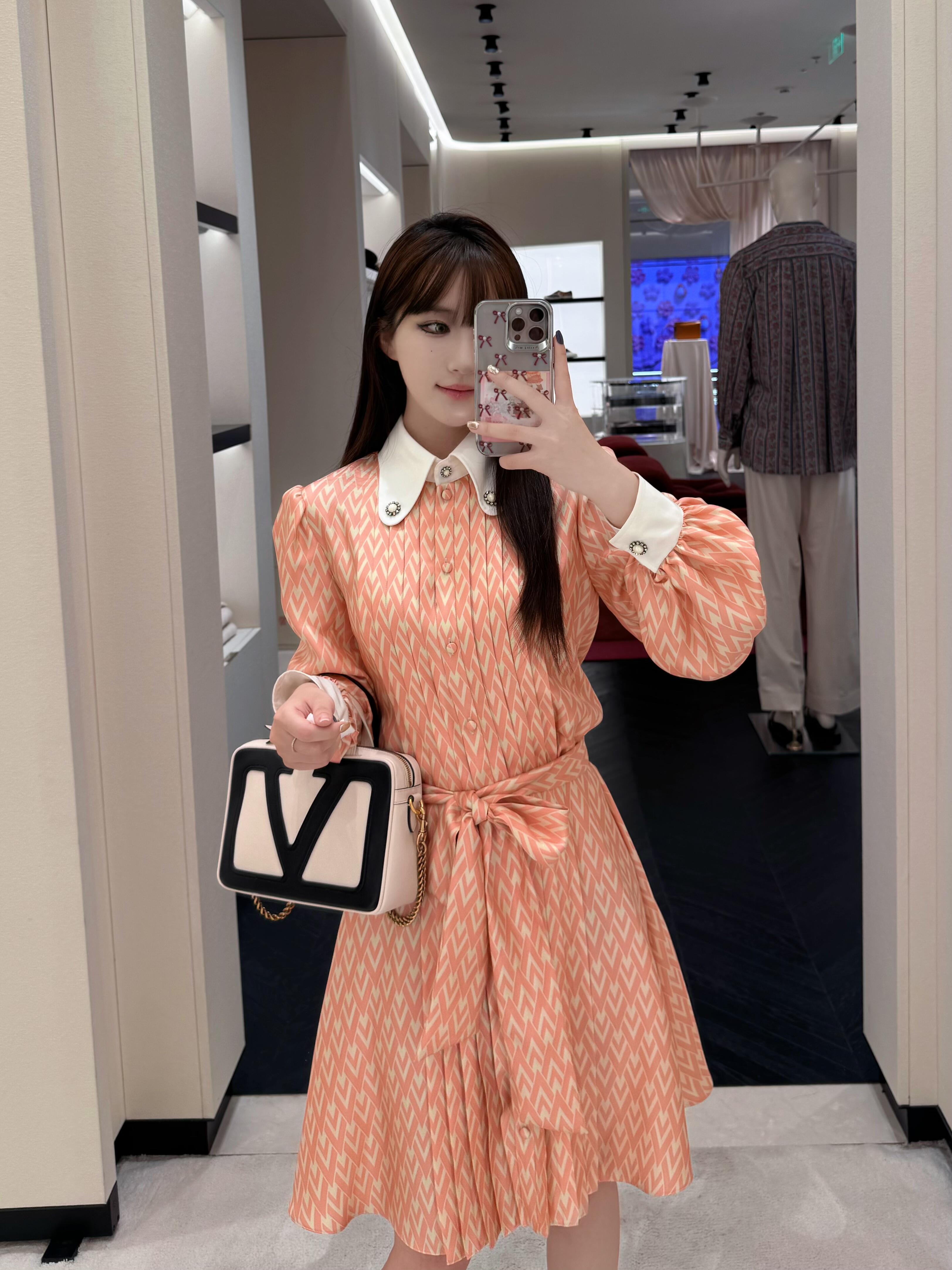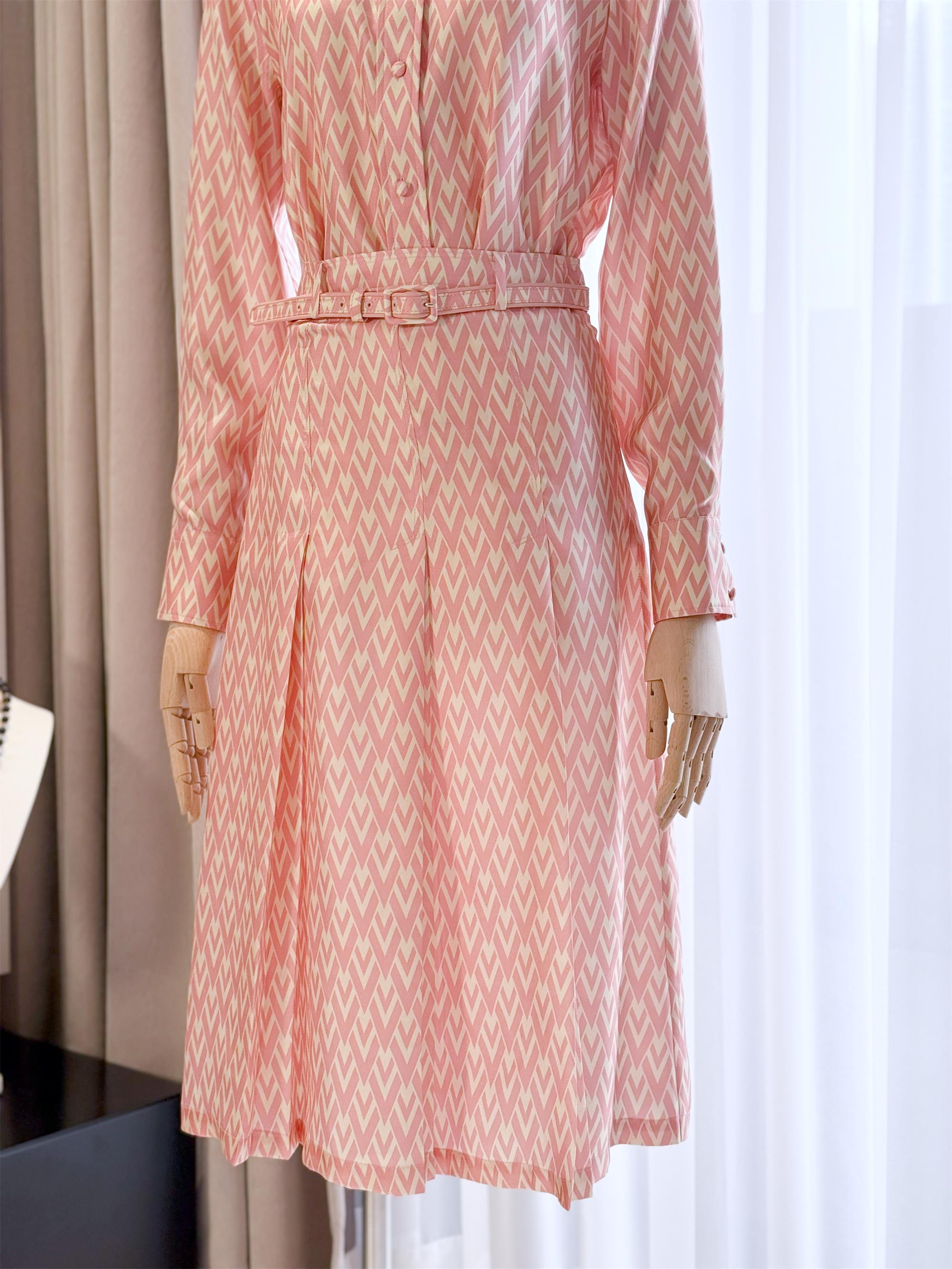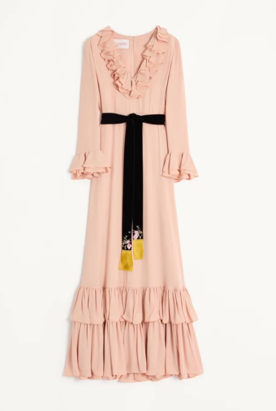 NIGO Valentino Women's Spring And Autumn Tassel Belt V-Neck Pleated Side Long Silk Solid Color Dresses Ngvp #nigo1252