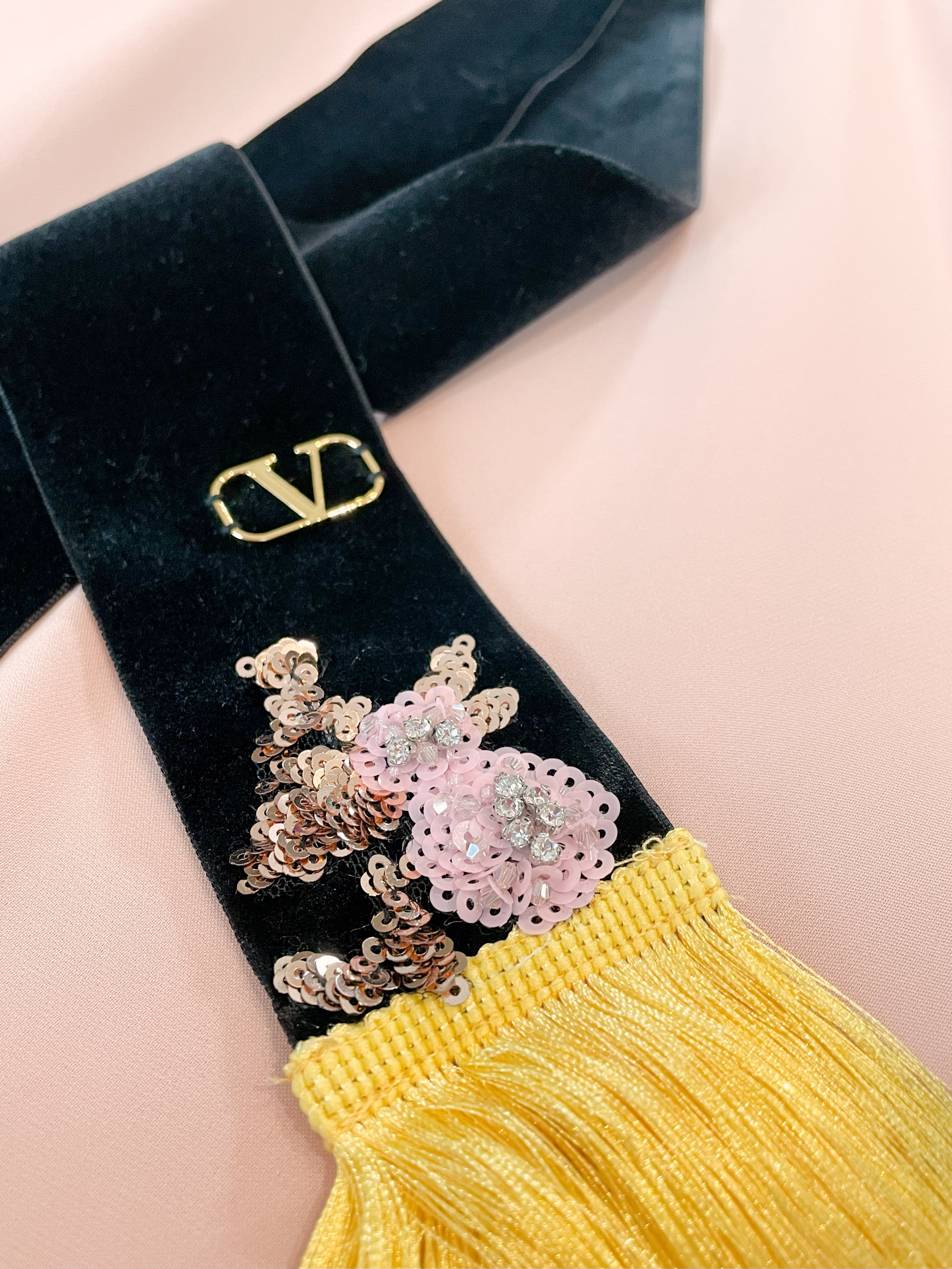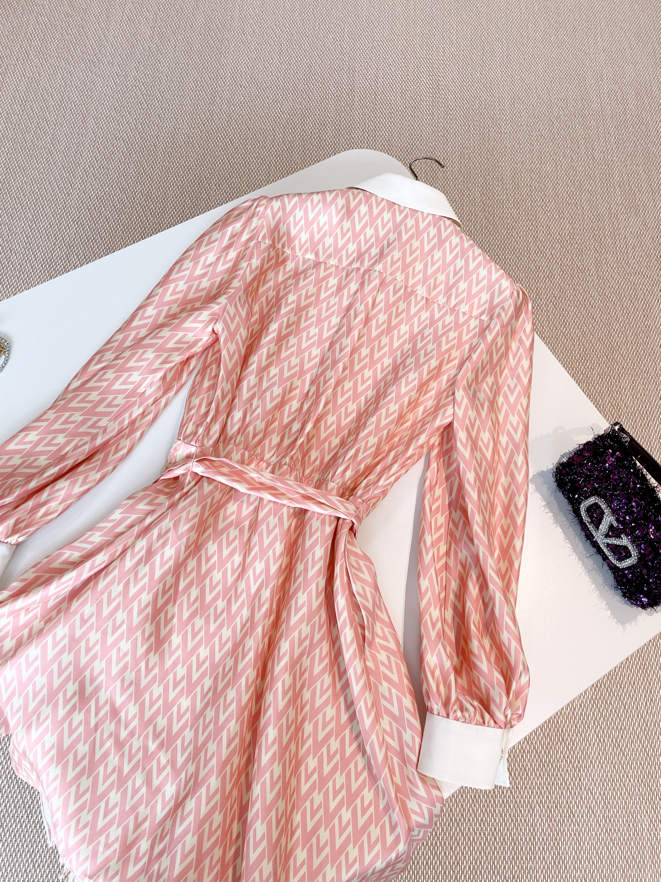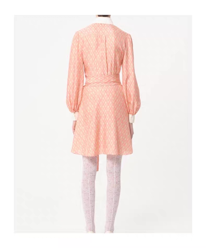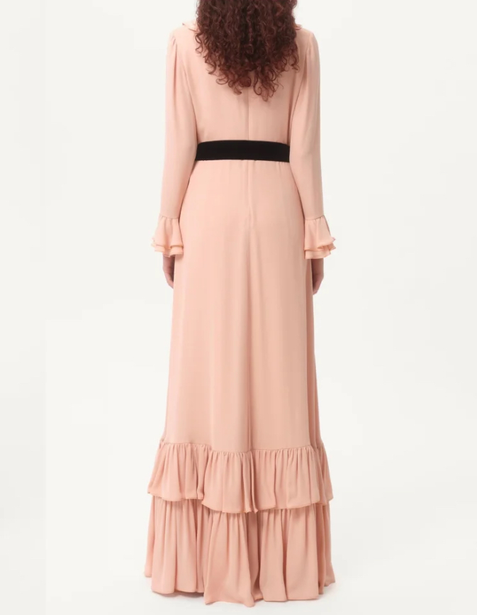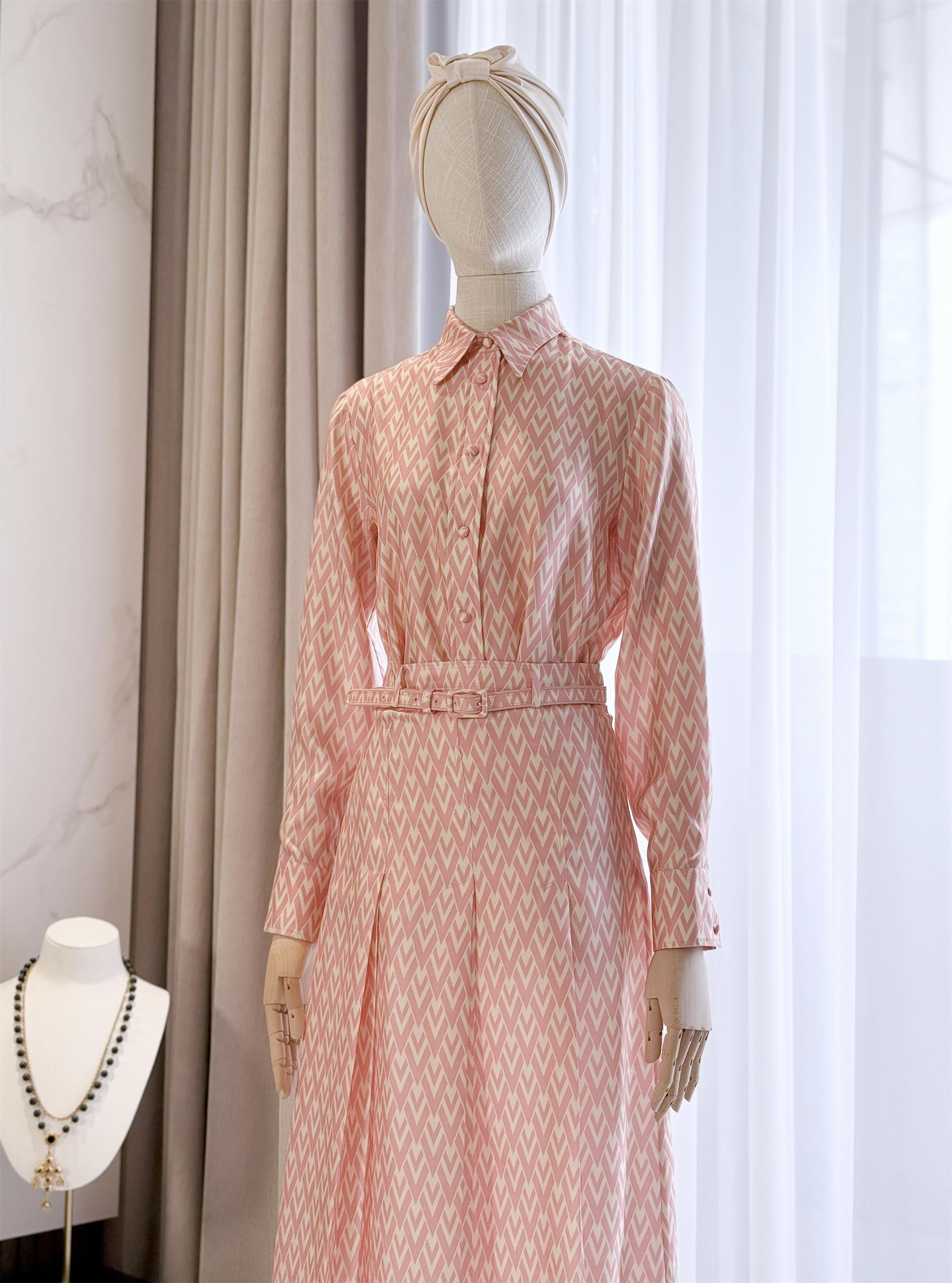 NIGO Valentino Women's Spring And Autumn Tassel Belt V-Neck Pleated Side Long Silk Solid Color Dresses Ngvp #nigo1252