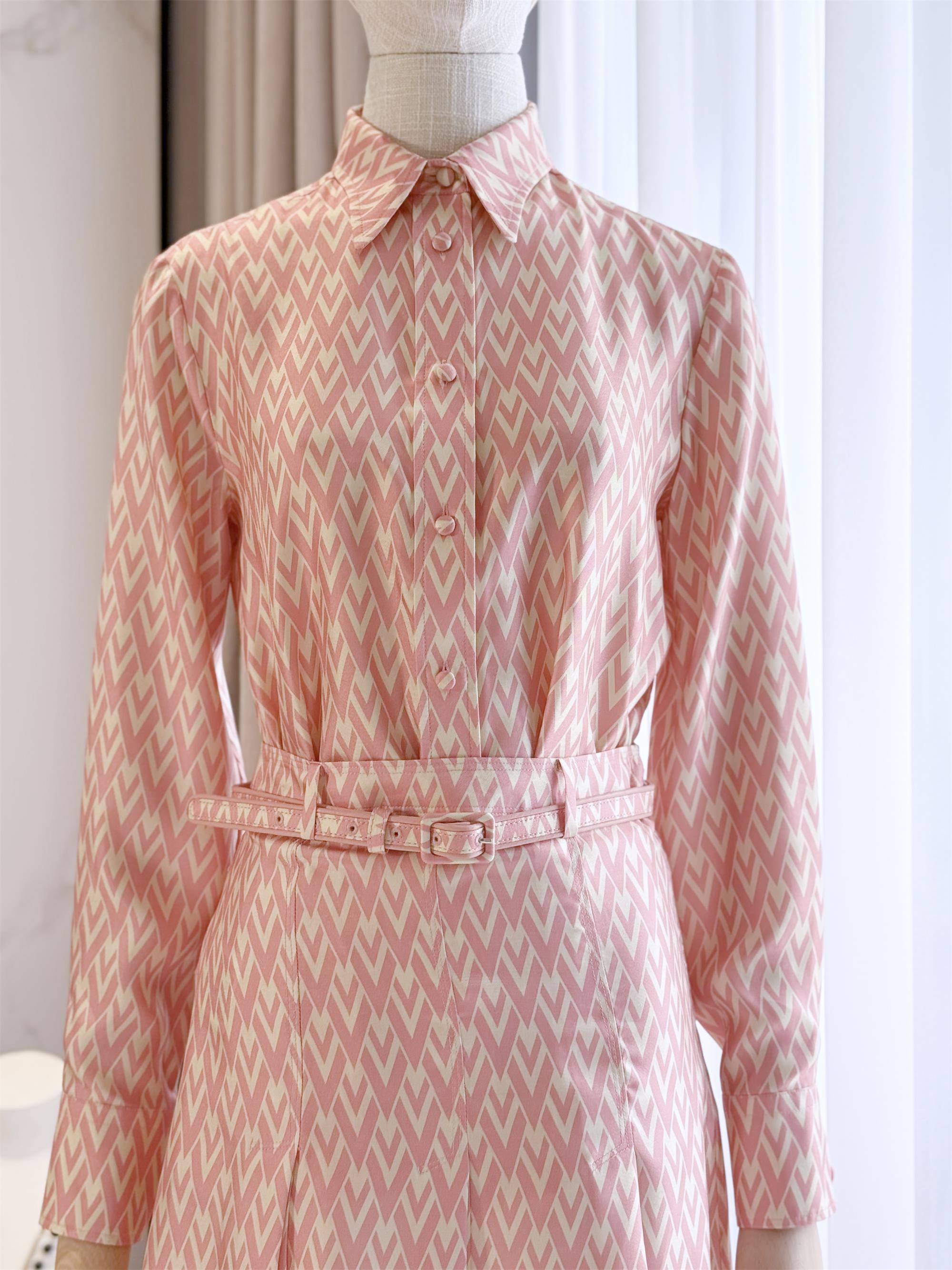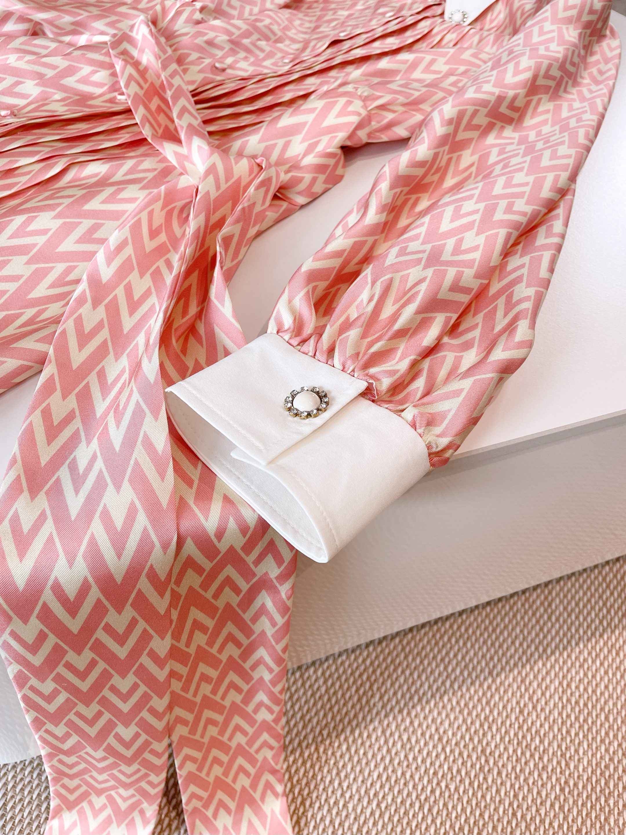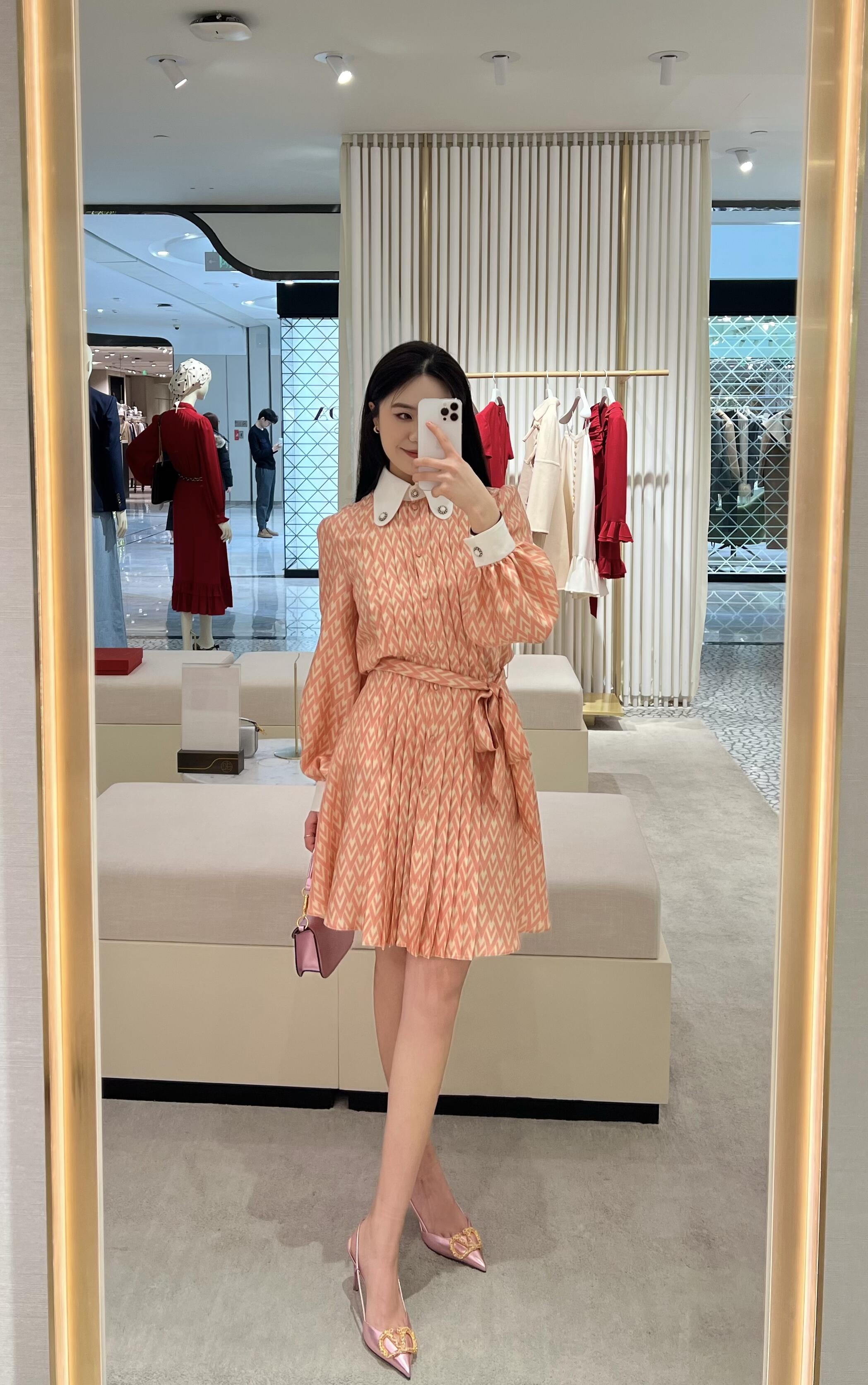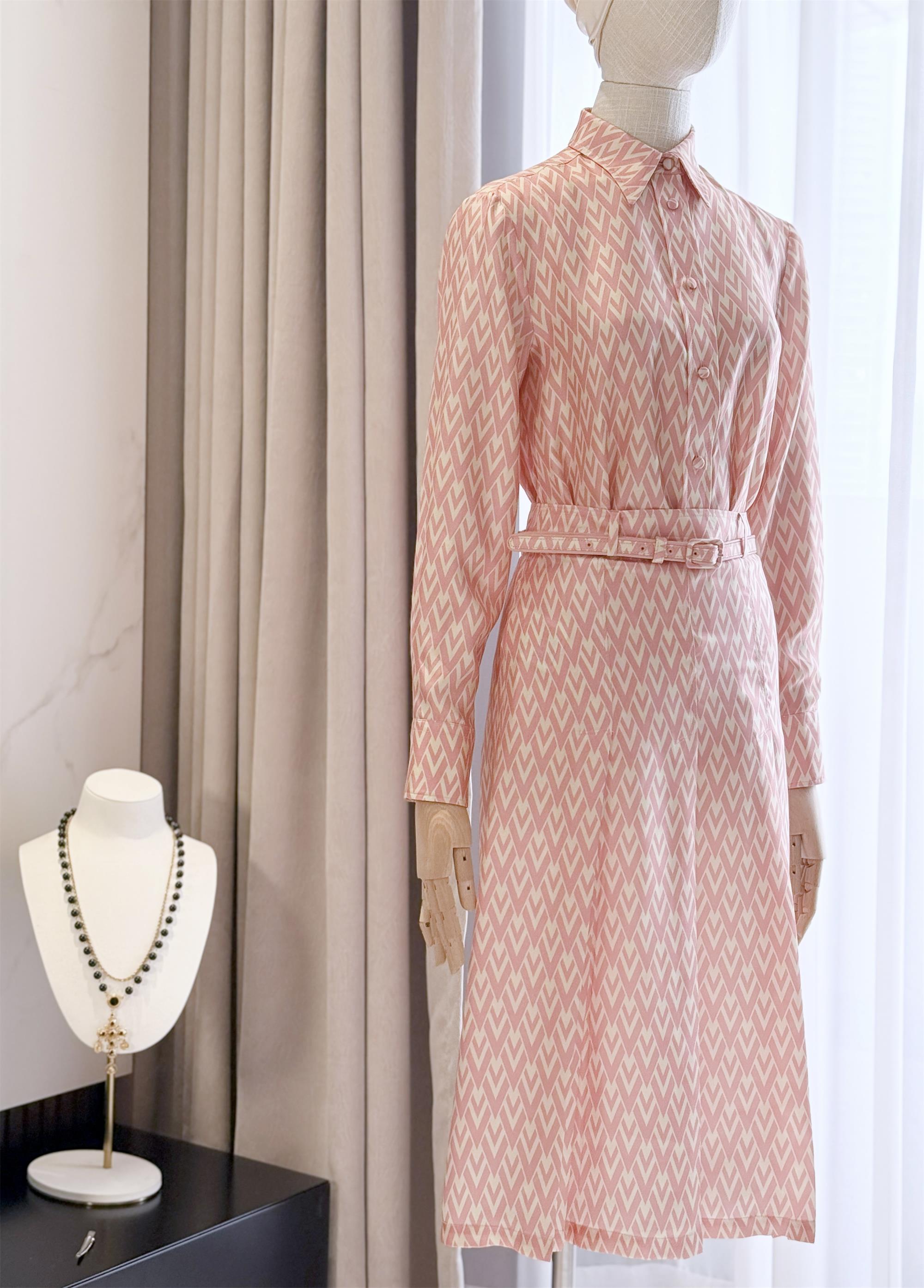 NIGO Valentino Women's Spring And Autumn Tassel Belt V-Neck Pleated Side Long Silk Solid Color Dresses Ngvp #nigo1252