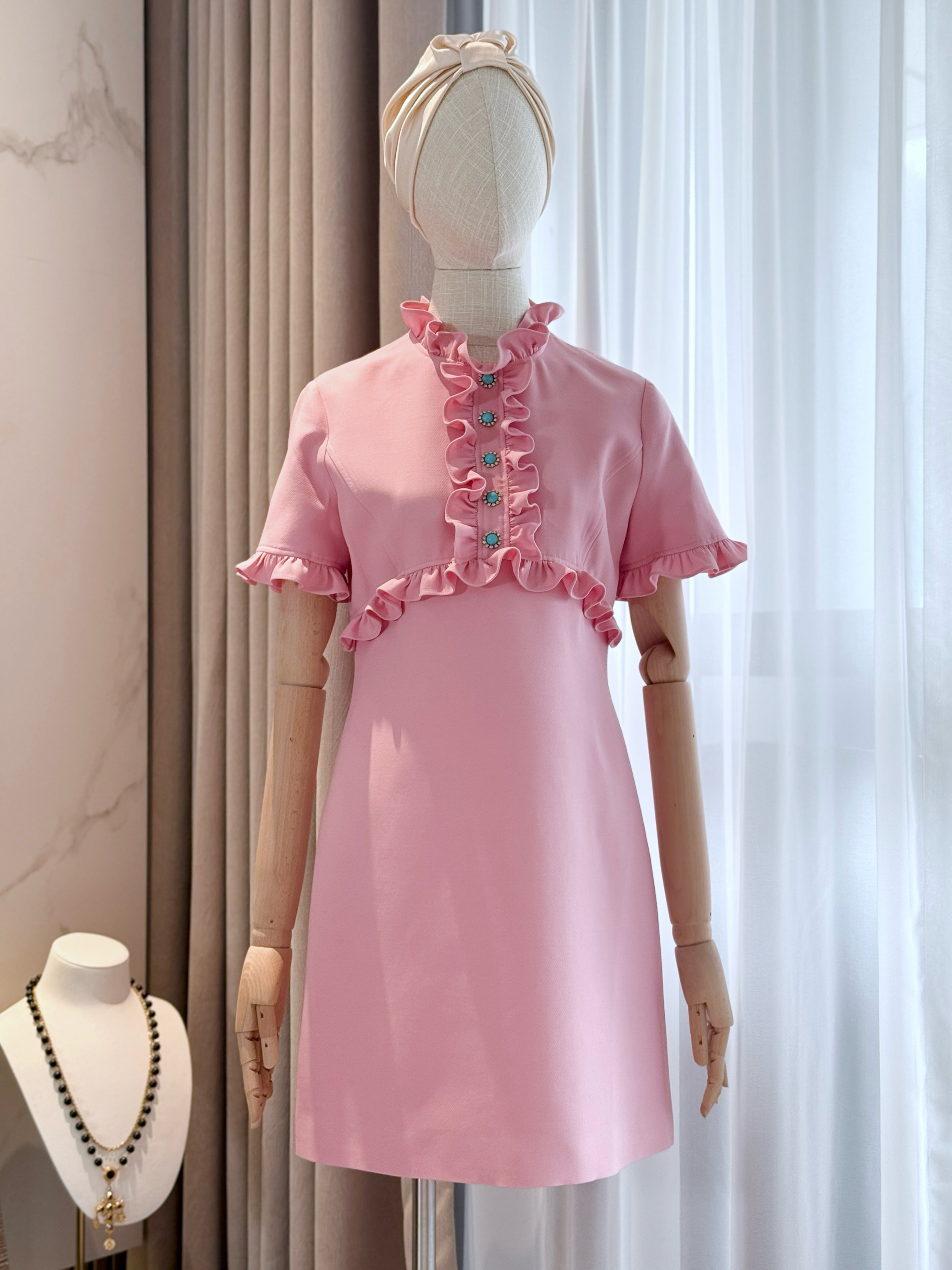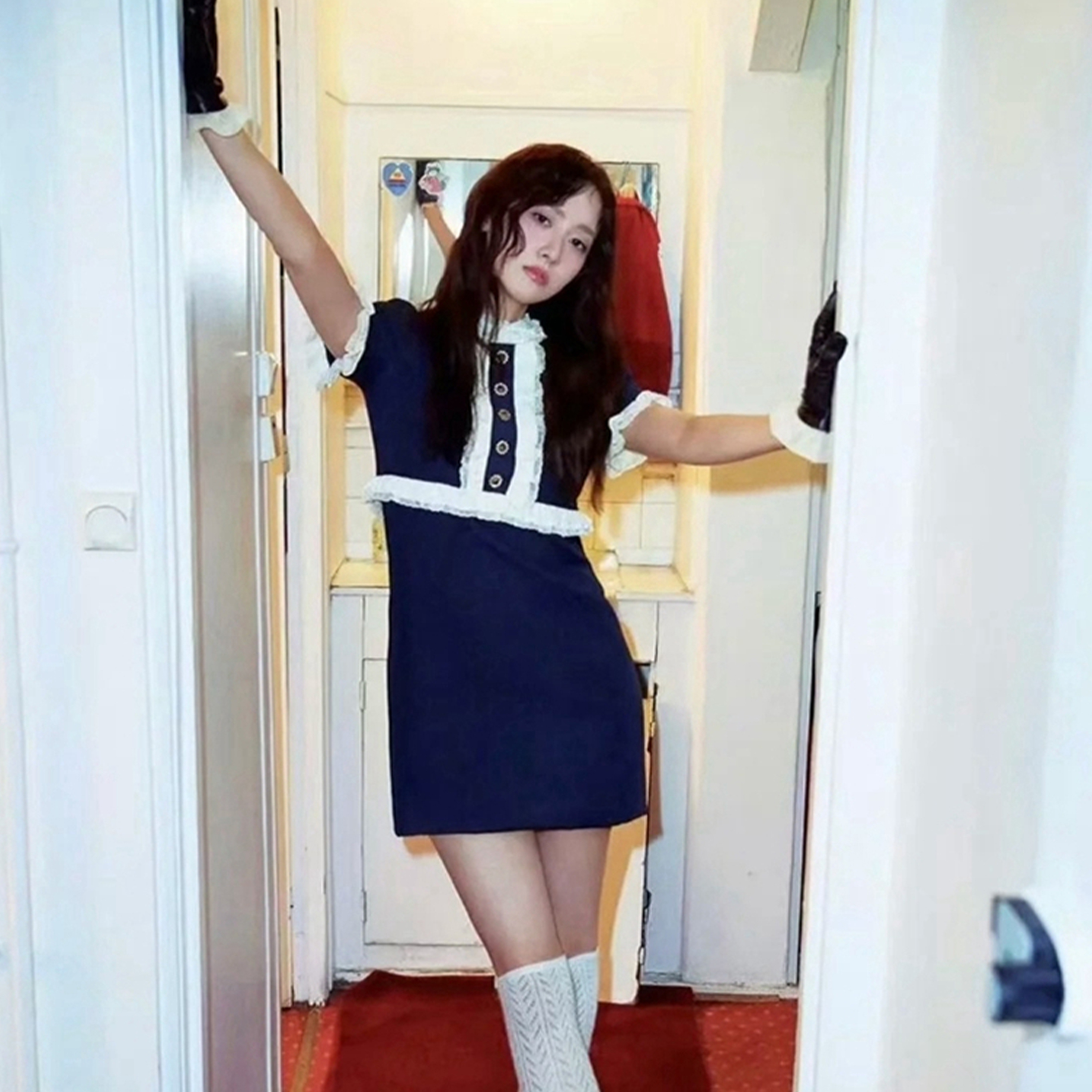 NIGO Valentino Women's Summer Tweed Check Embroidery Short Round Neck Colorblocking Dresses Ngvp #nigo1254