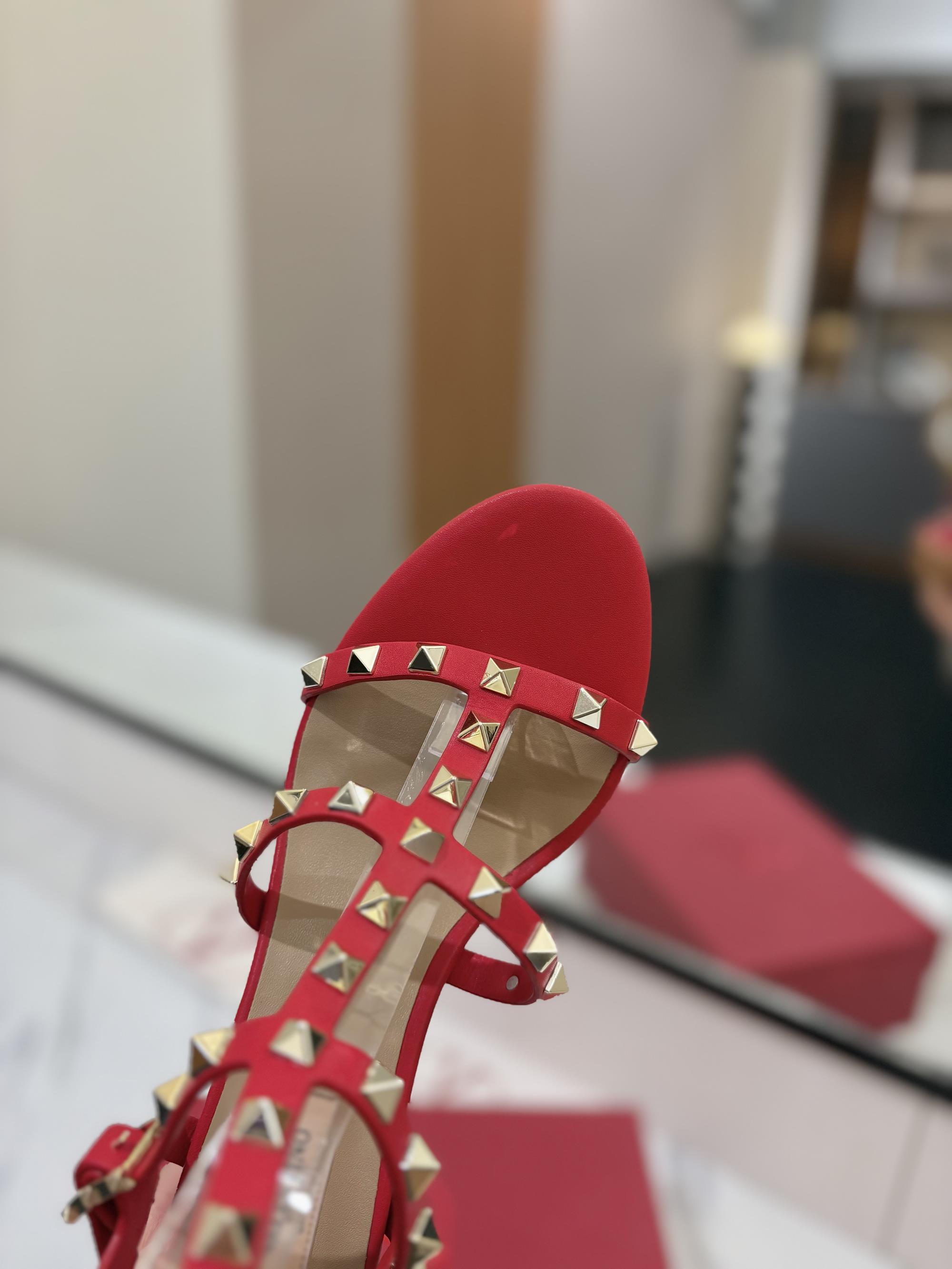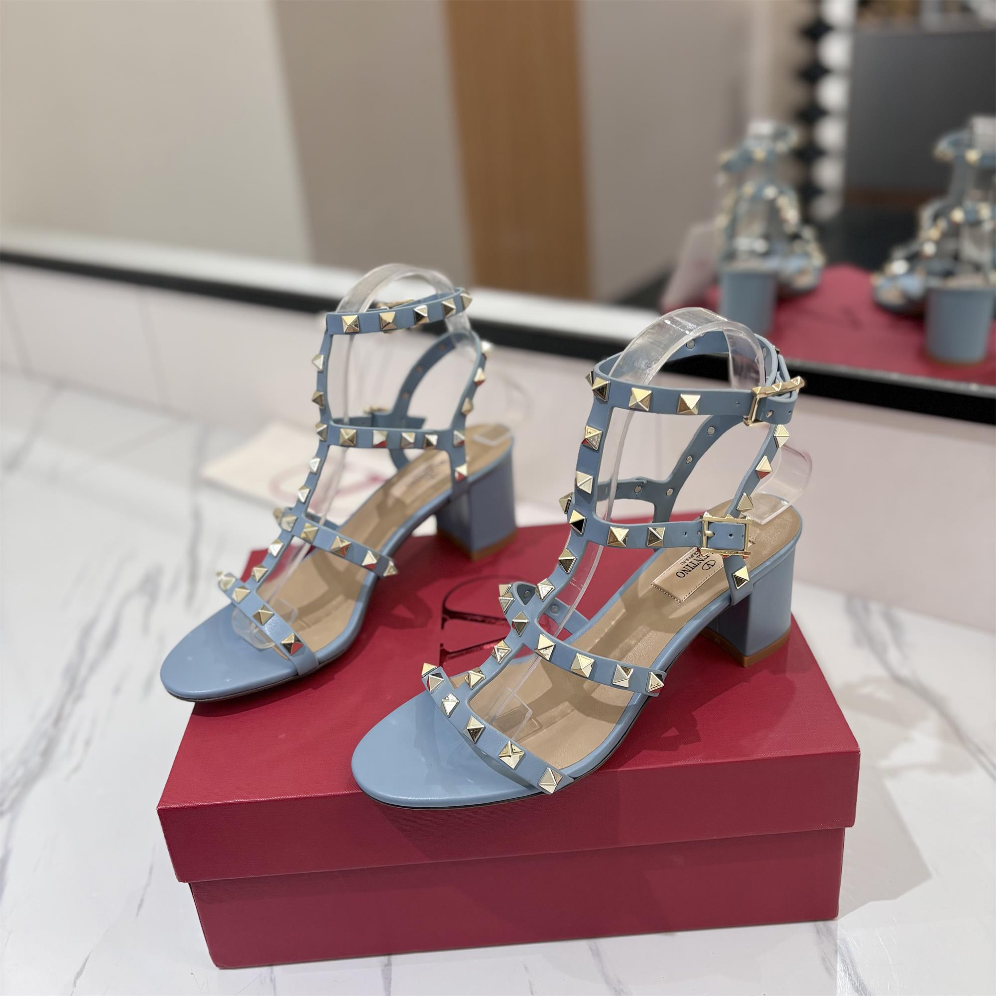 NIGO Valentino Women's Summer Solid Color Rivet Buckle 6.5cm Square Heel Sheepskin High Heels Shoes #nigo75757
