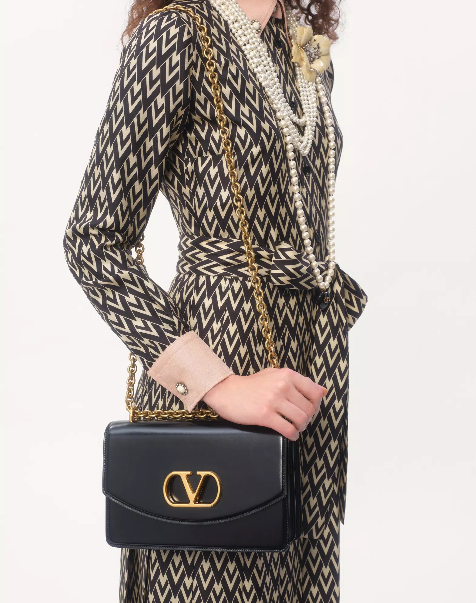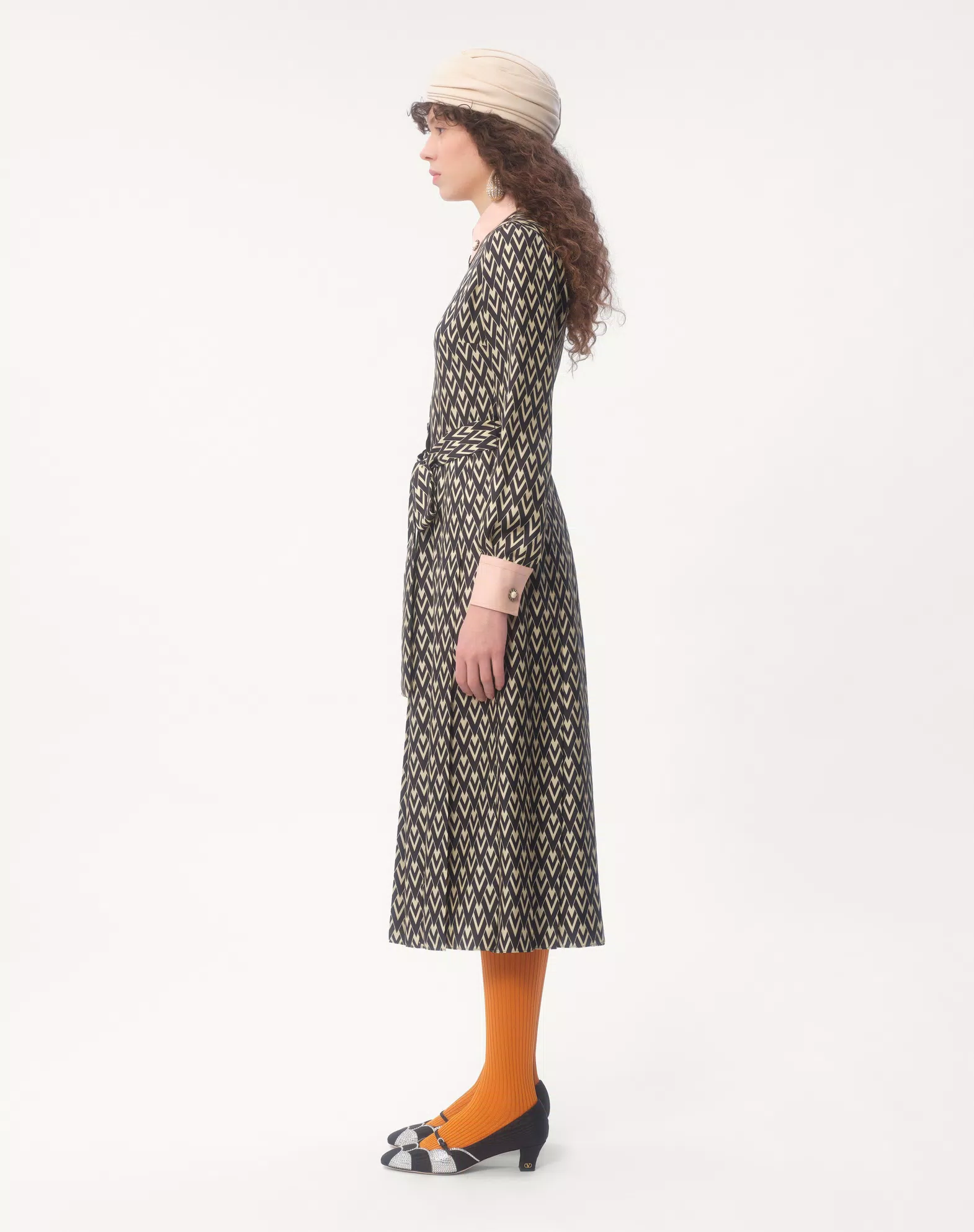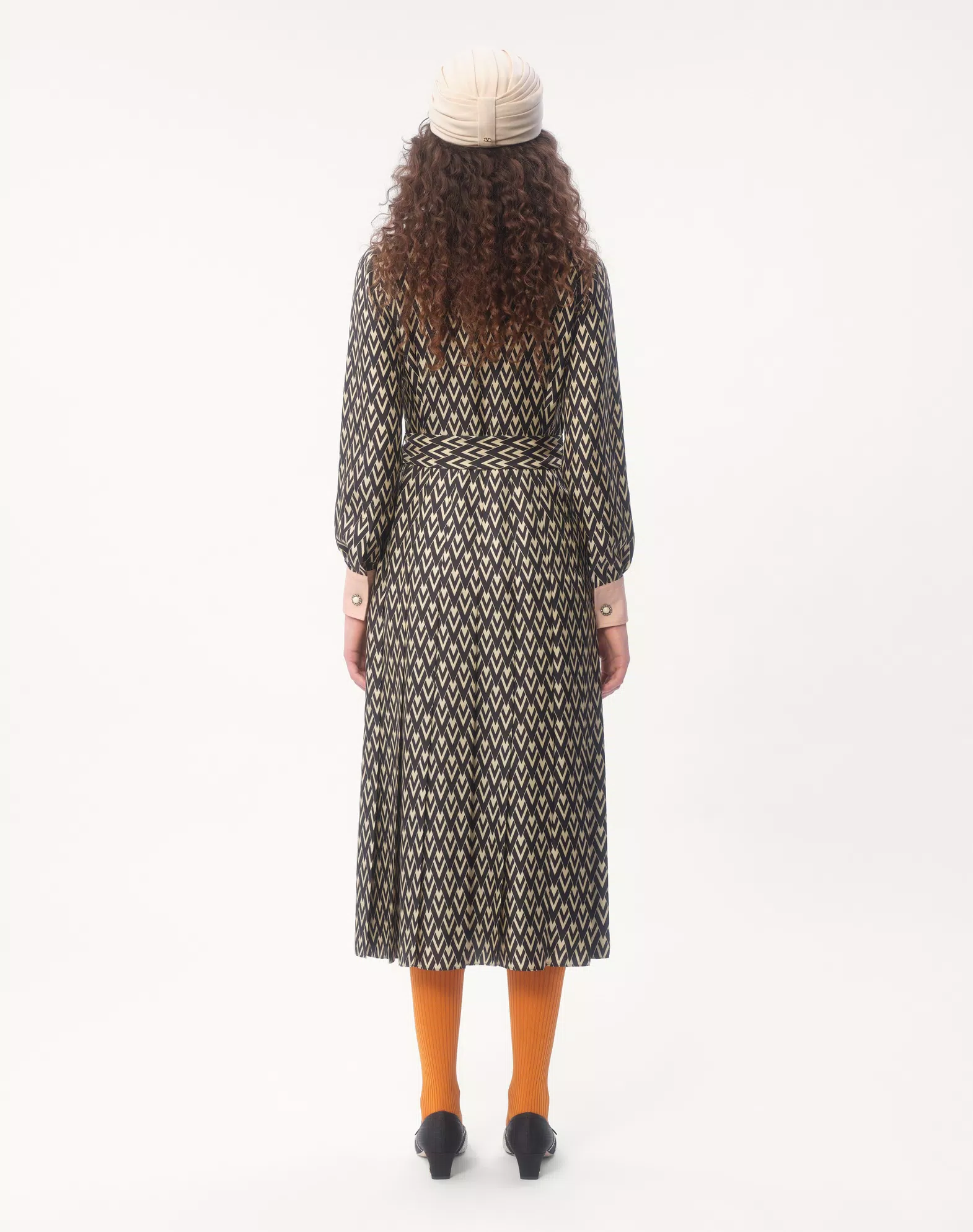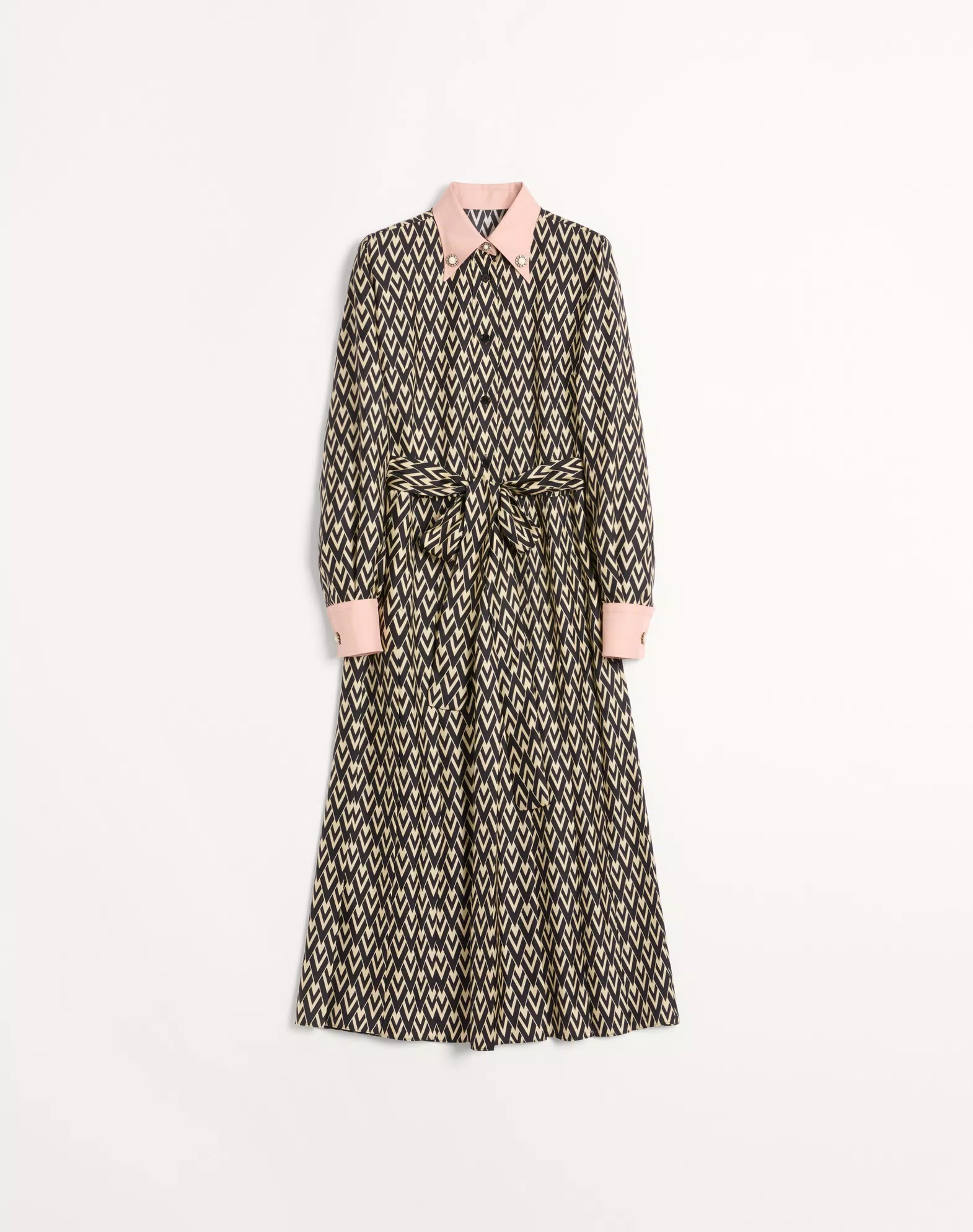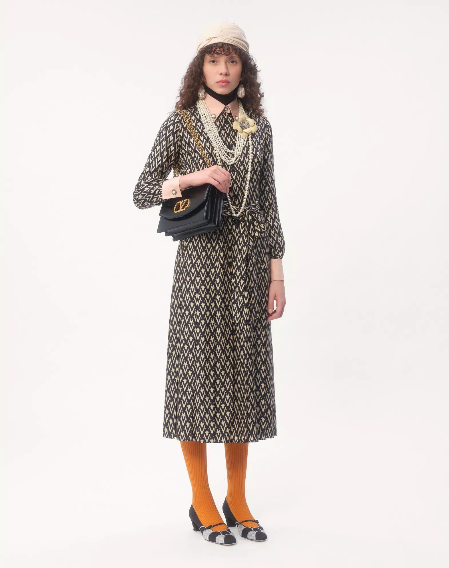 NIGO Valentino Women's Spring and Autumn Solid Color Lapel Silk Twill Toute La V Midi Dress #nigo71832
