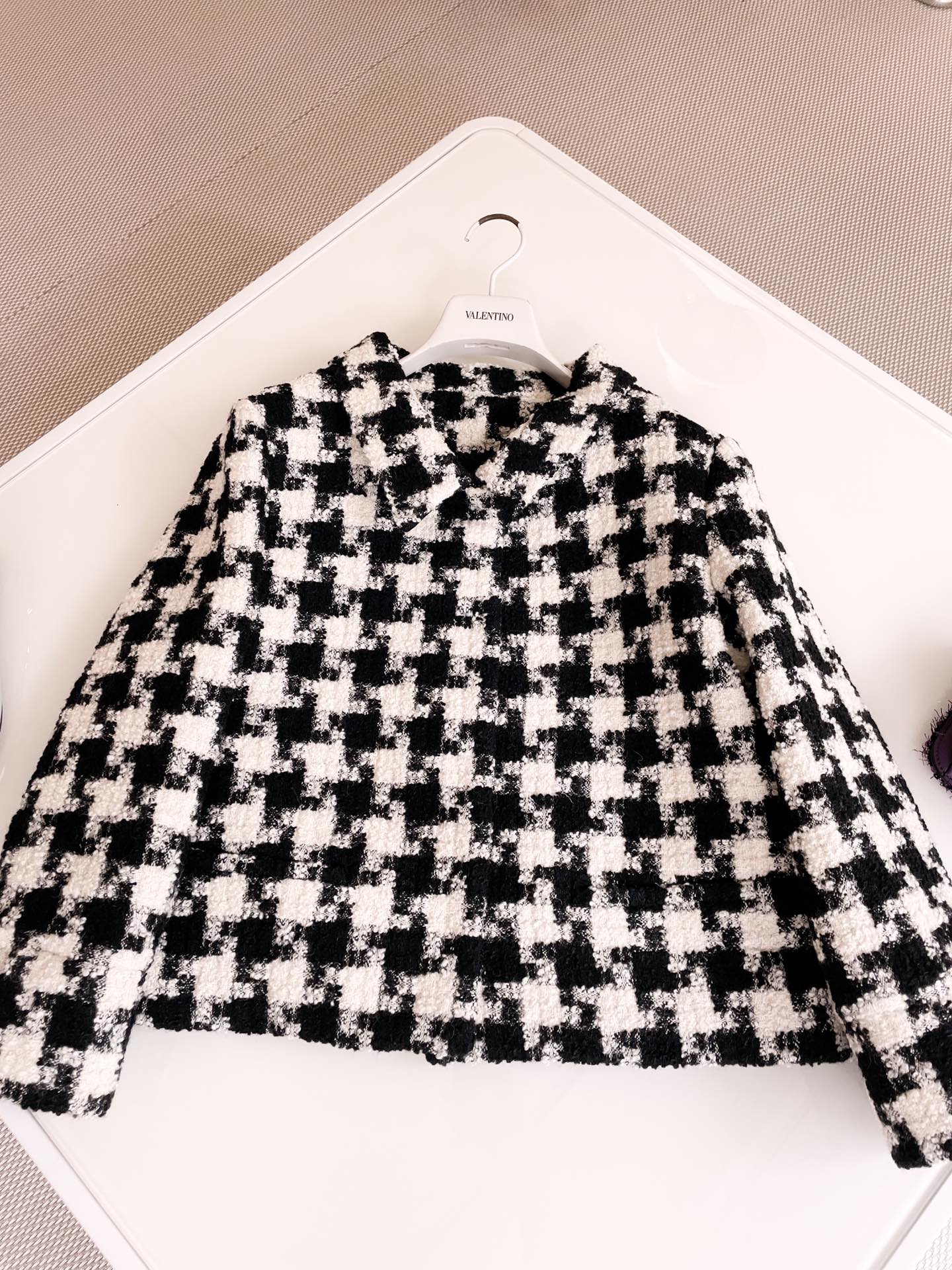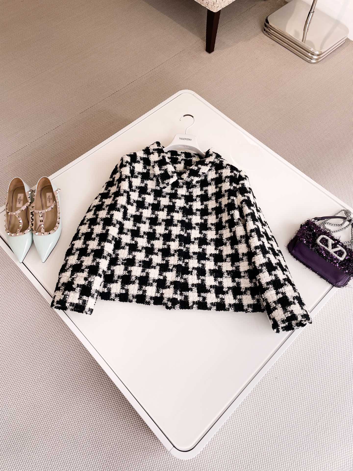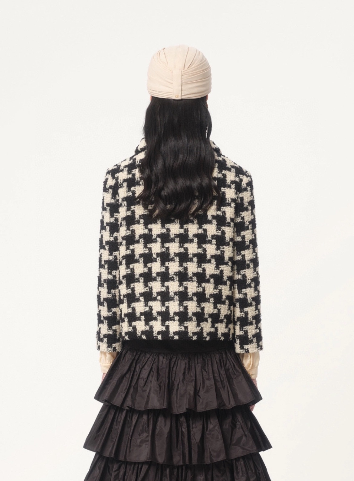 NIGO Valentino Women's Spring & Autumn Thousand Bird Pattern Lapel Wool Macro Pied De Poule Tweed Short Jacket Ngvp #nigo9912