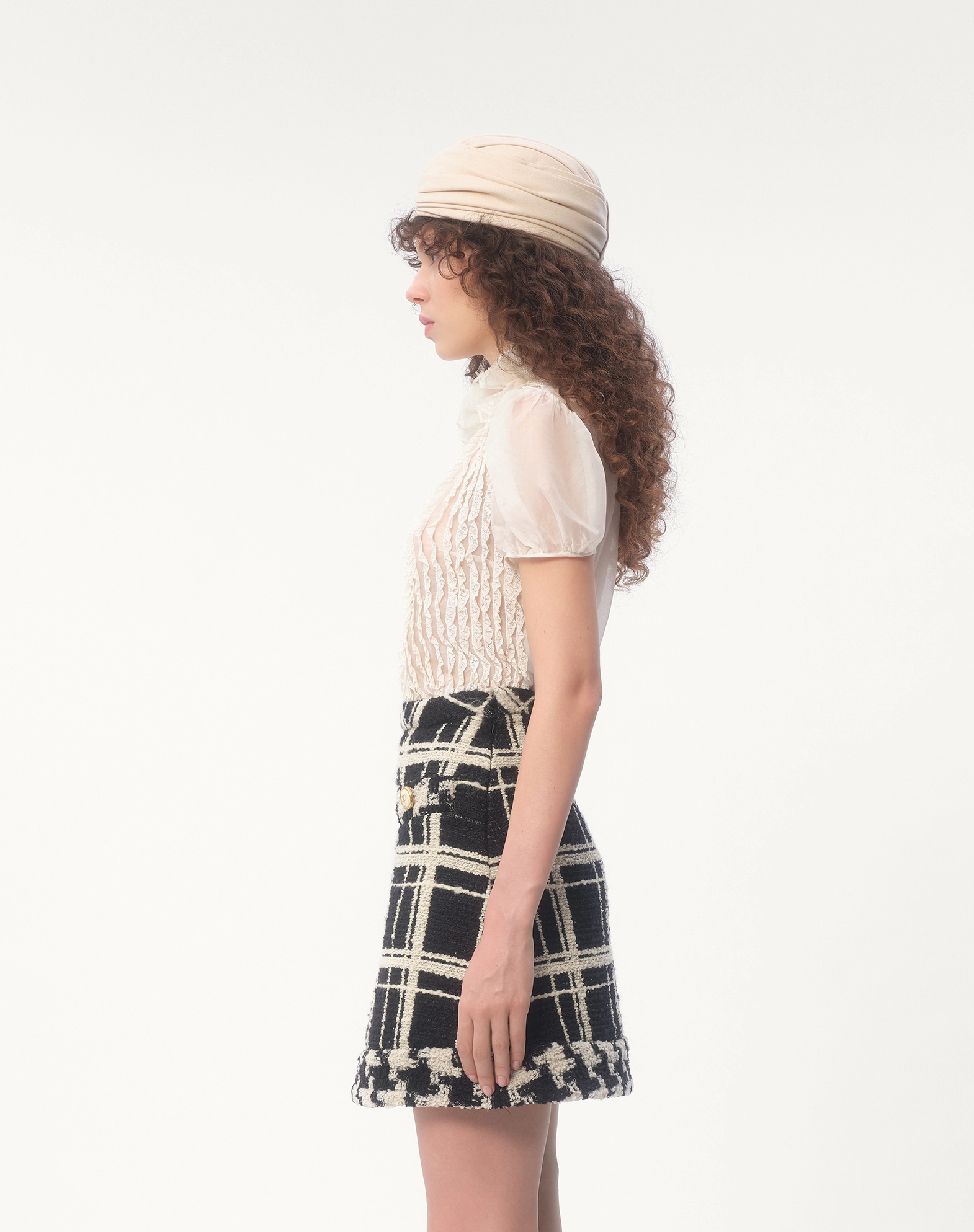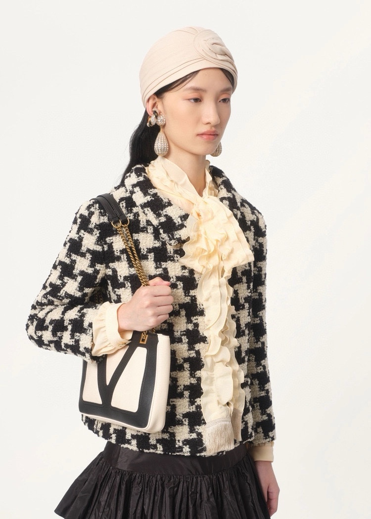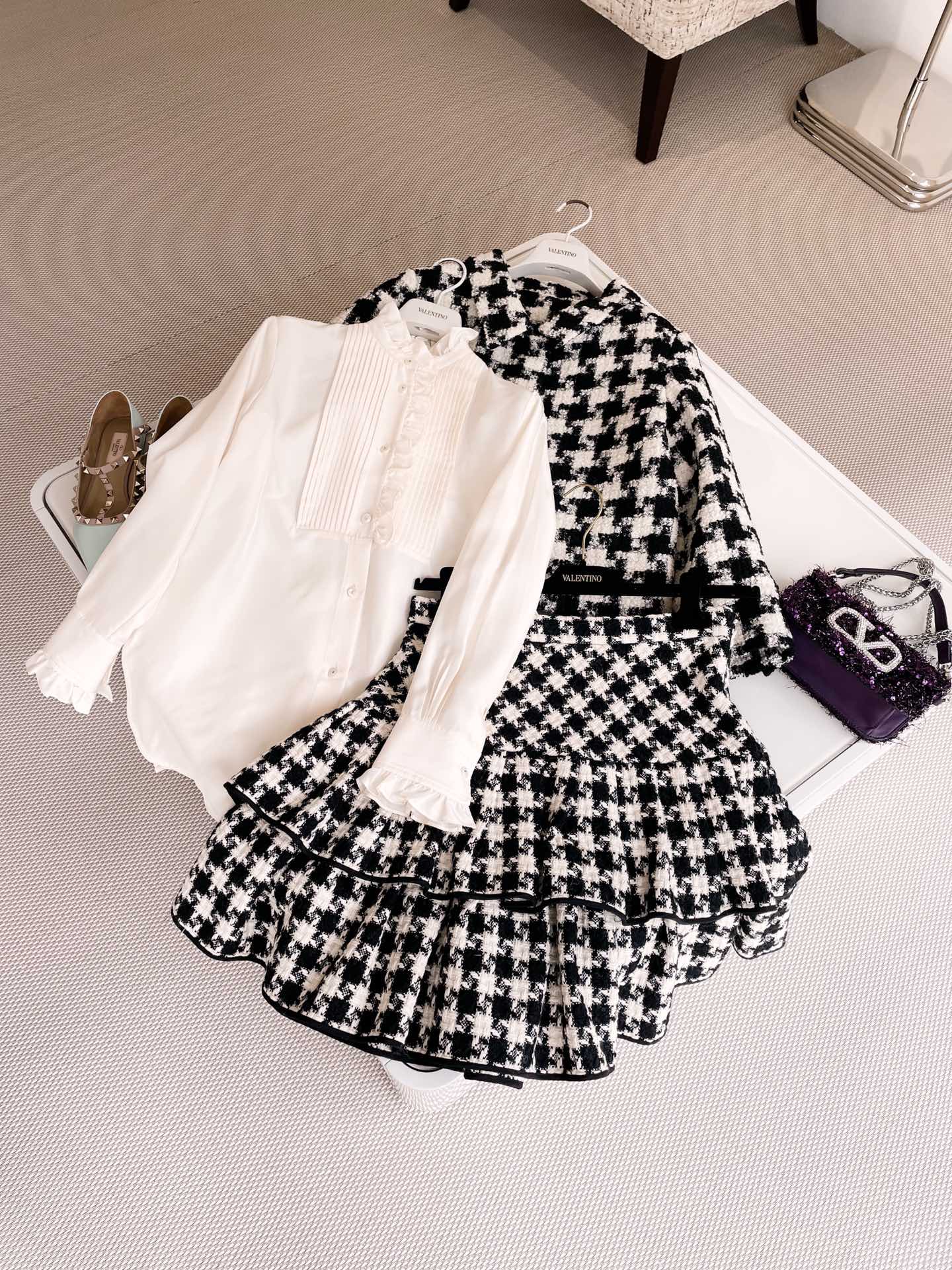NIGO Valentino Women's Spring & Autumn Thousand Bird Pattern Lapel Wool Macro Pied De Poule Tweed Short Jacket Ngvp #nigo9912
