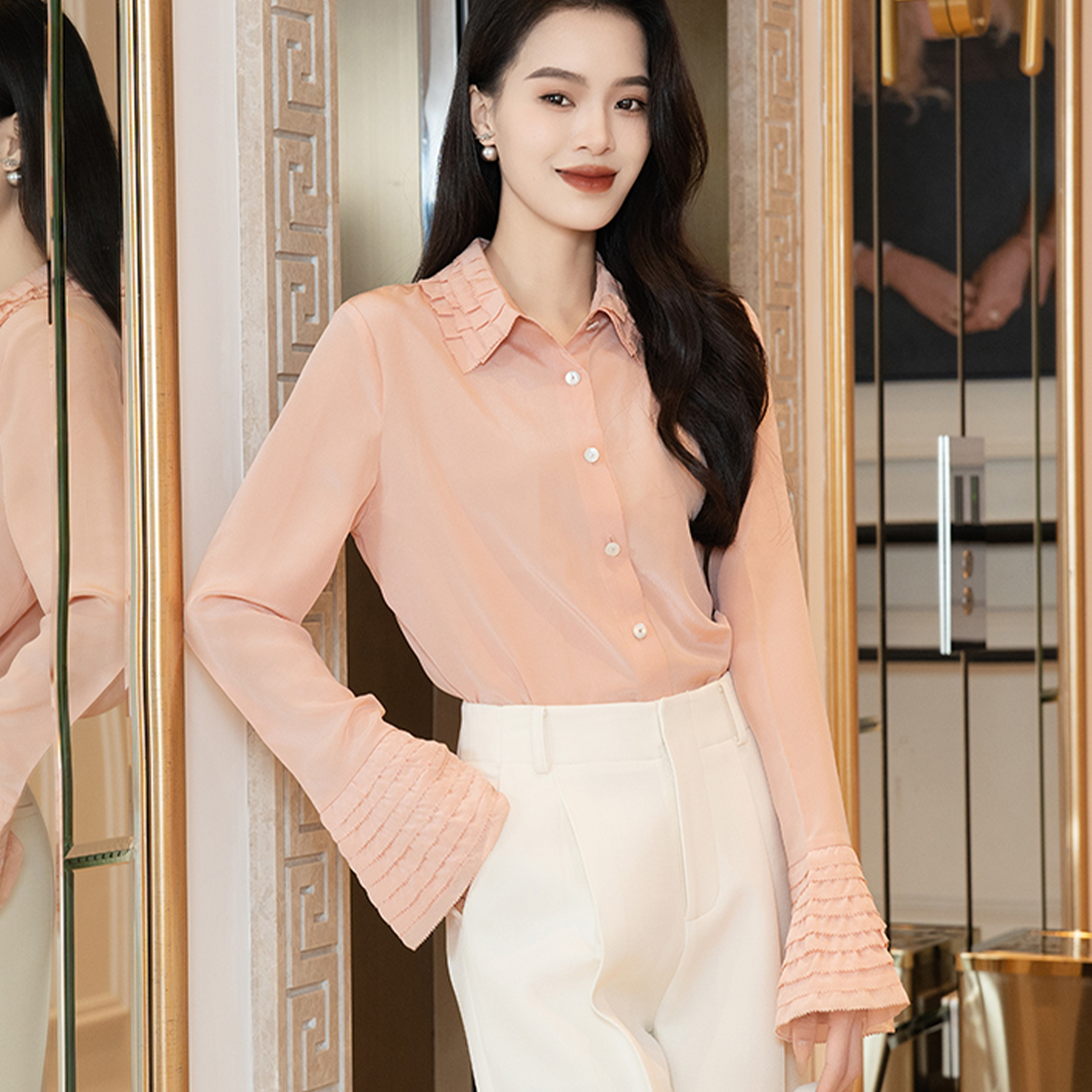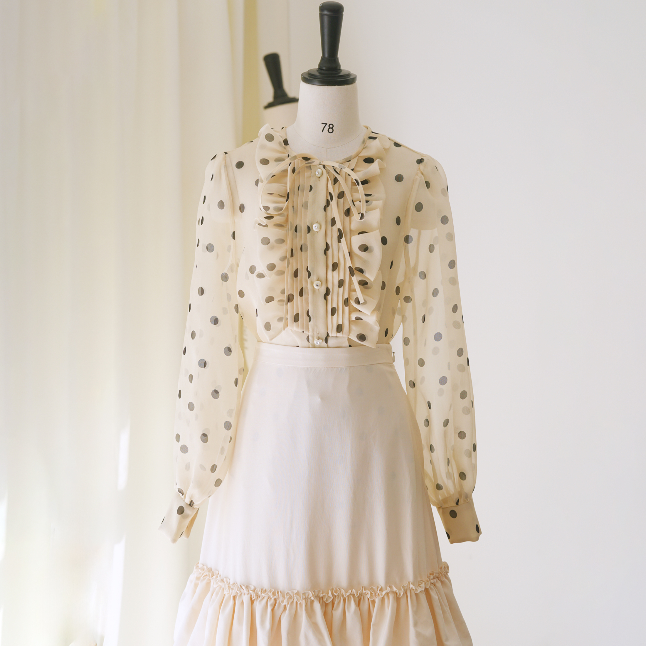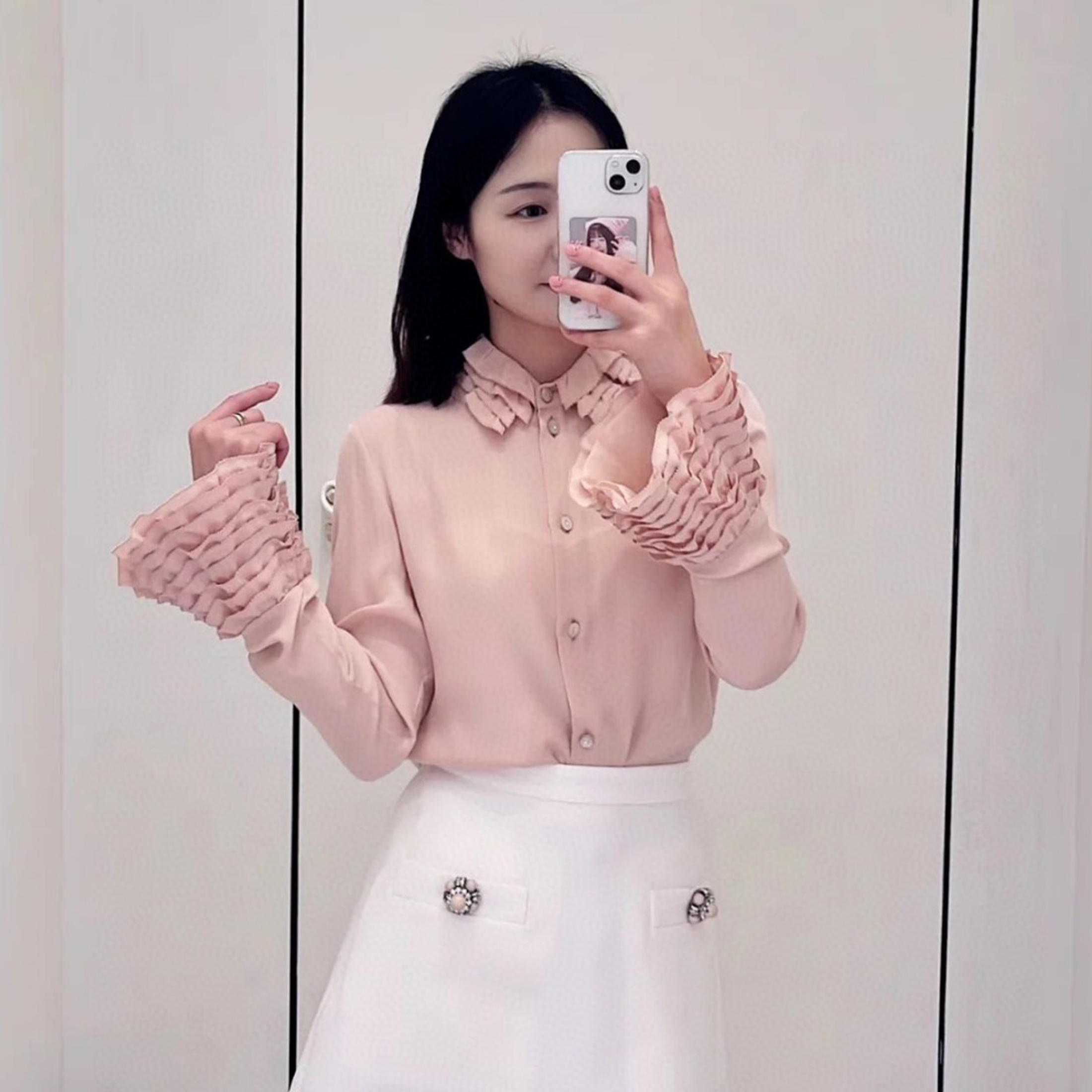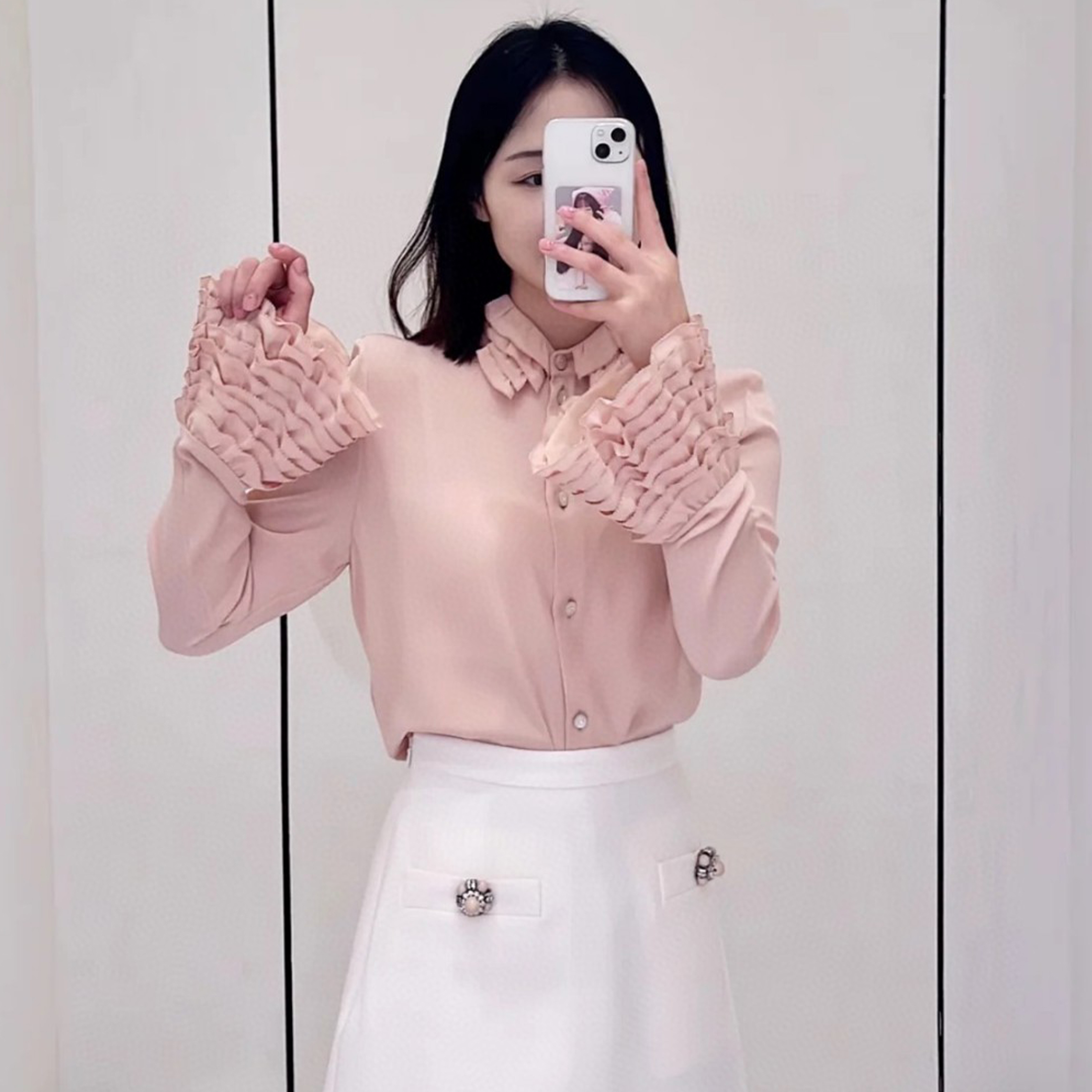 NIGO Valentino Women's Summer Silk Ruffle Vintage Bubble Sleeve Solid Color Chiffon Shirt Ngvp #nigo9911