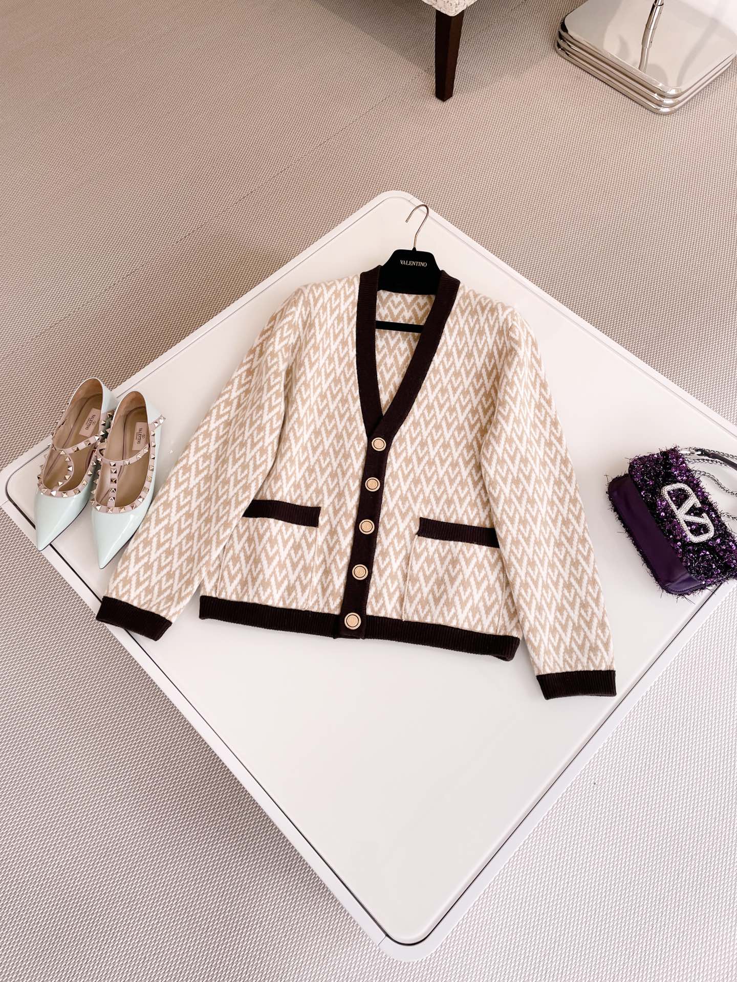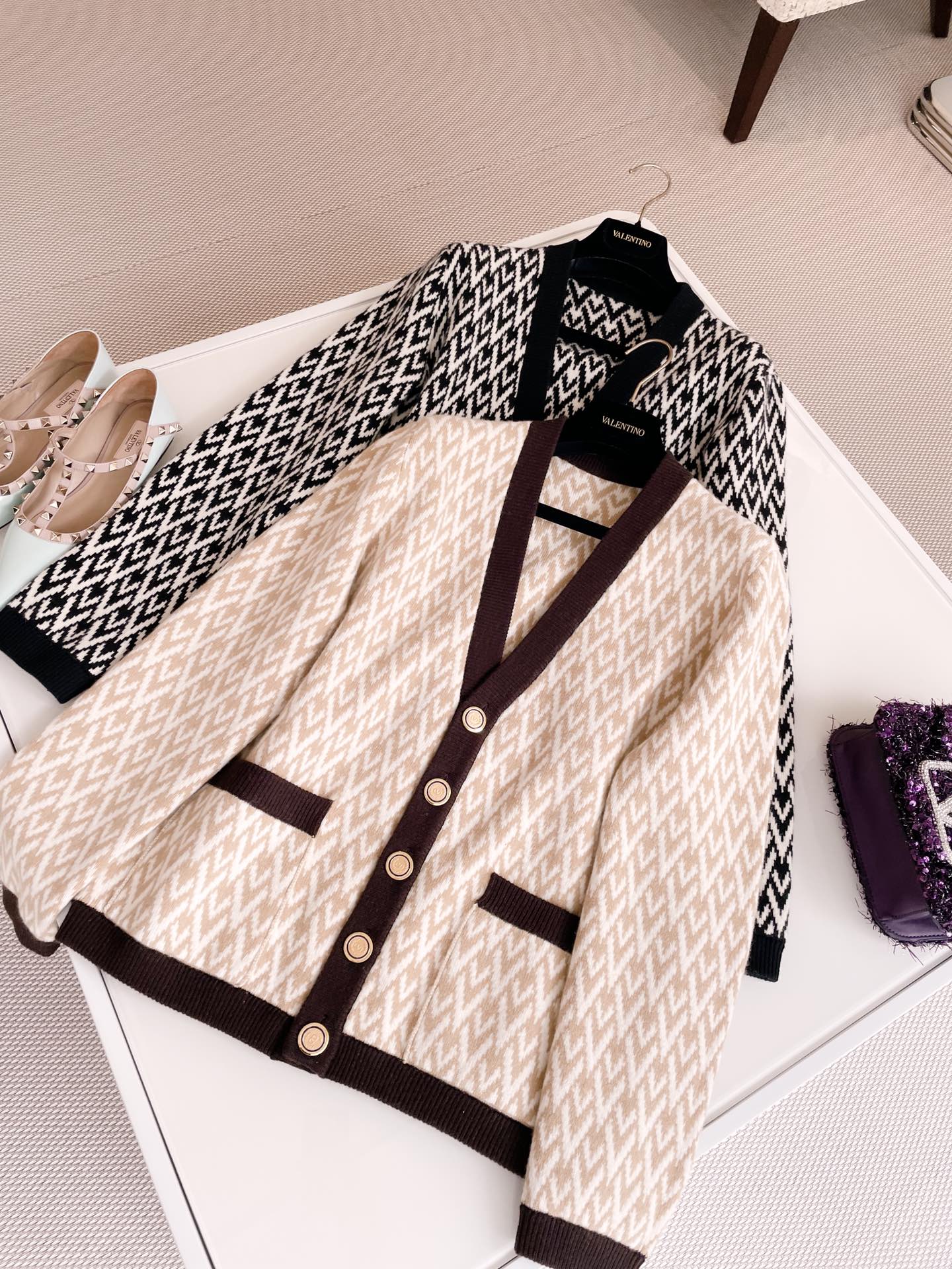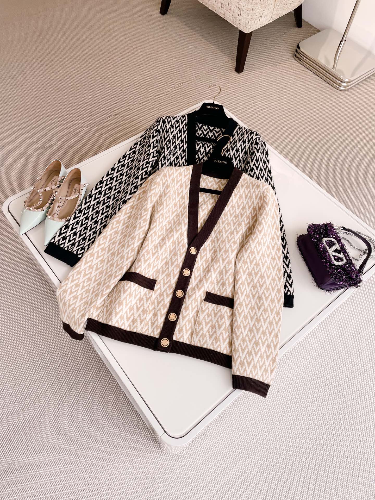 NIGO Valentino Spring Women's Monogrammed Knit V-Neck Single Breasted Long Sleeve Cardigan Jacket #nigo74351