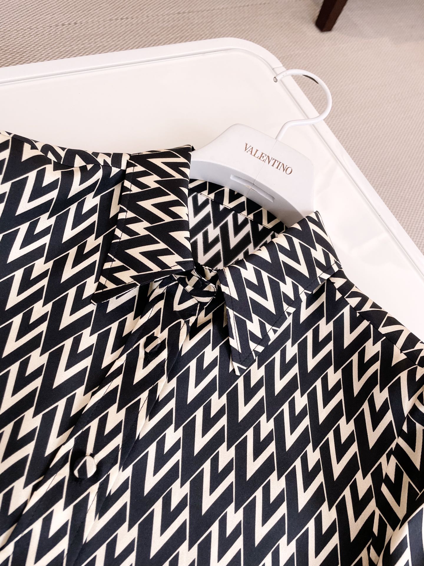 NIGO Valentino Women's Summer Solid Color Letter Printed Silk Lapel Single Breasted Long Sleeve Shirt #nigo74352