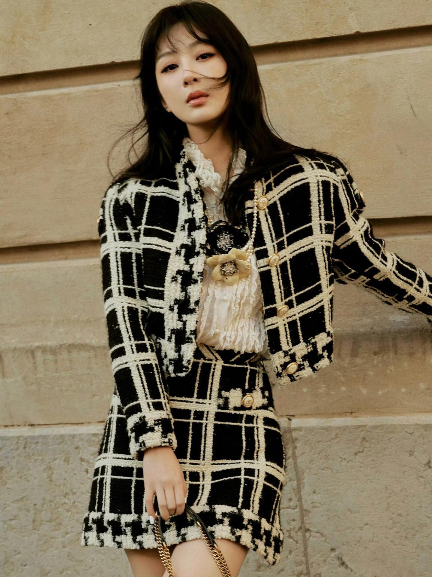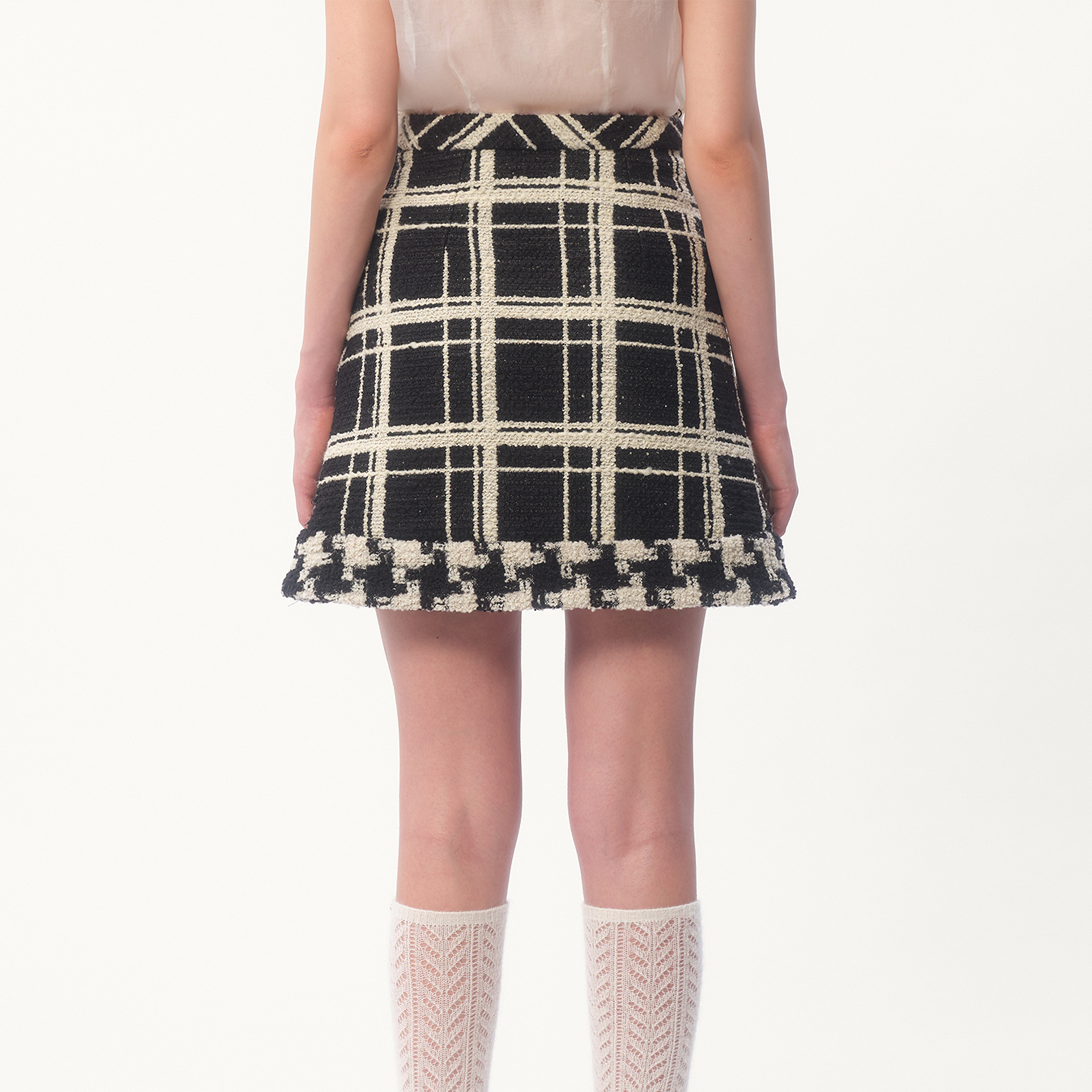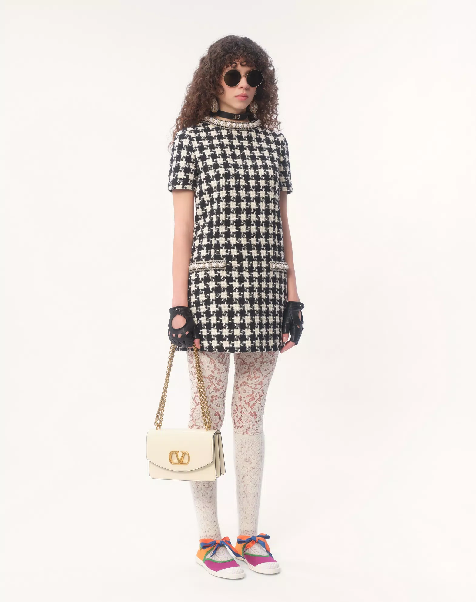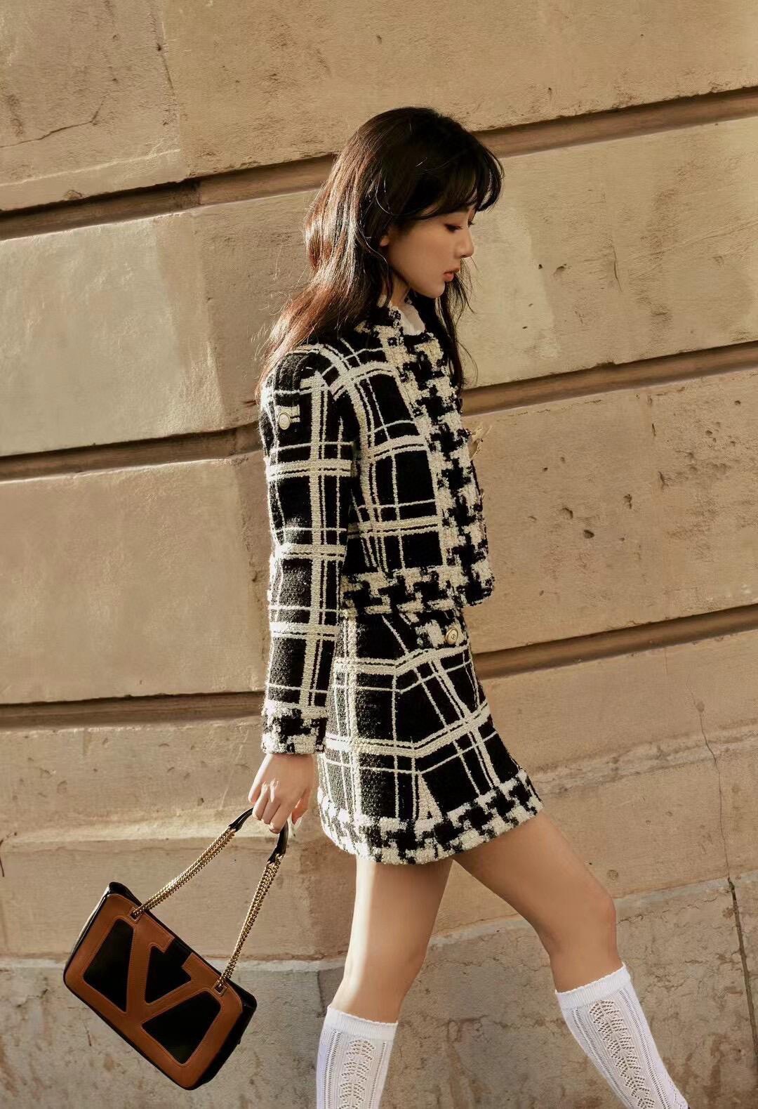 NIGO Valentino Women's Summer Embroidered Damir Light Tweed Rhinestone Round Neck Check Fitted Short Dresses Ngvp #nigo9733