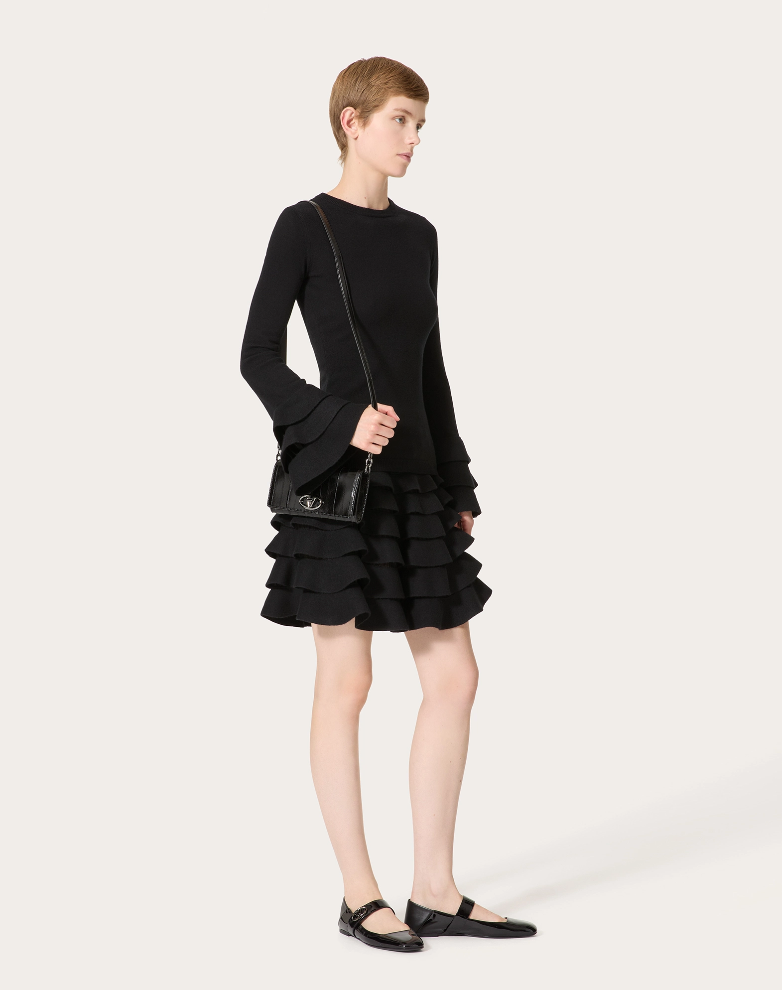 NIGO Valentino Women's Summer Black Short Mid Waist Fit Knit Ruffle Casual Half Skirt Ngvp #nigo9727