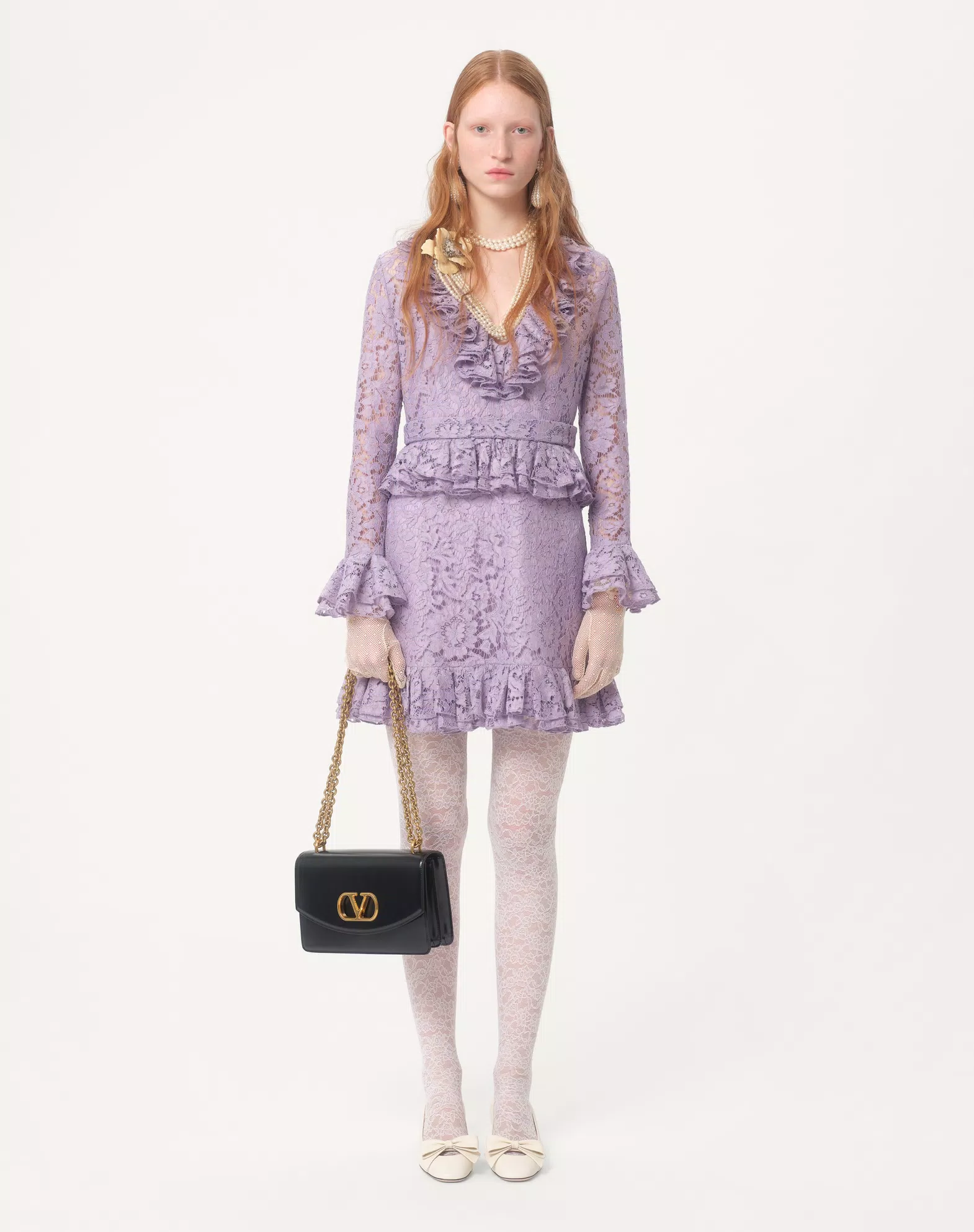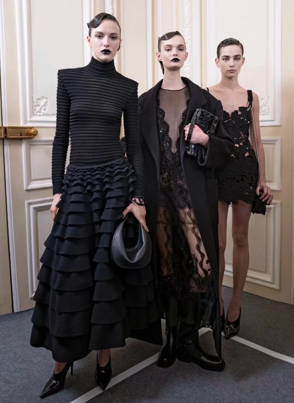 NIGO Valentino Women's Spring And Autumn Heavy Lace V-Neck Solid Color Fit Short Long Sleeve Dresses Ngvp #nigo9732