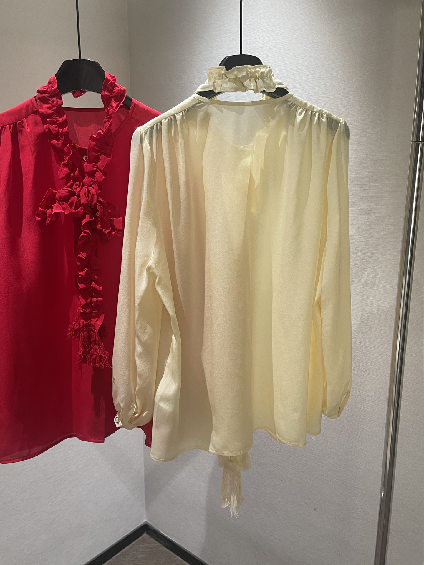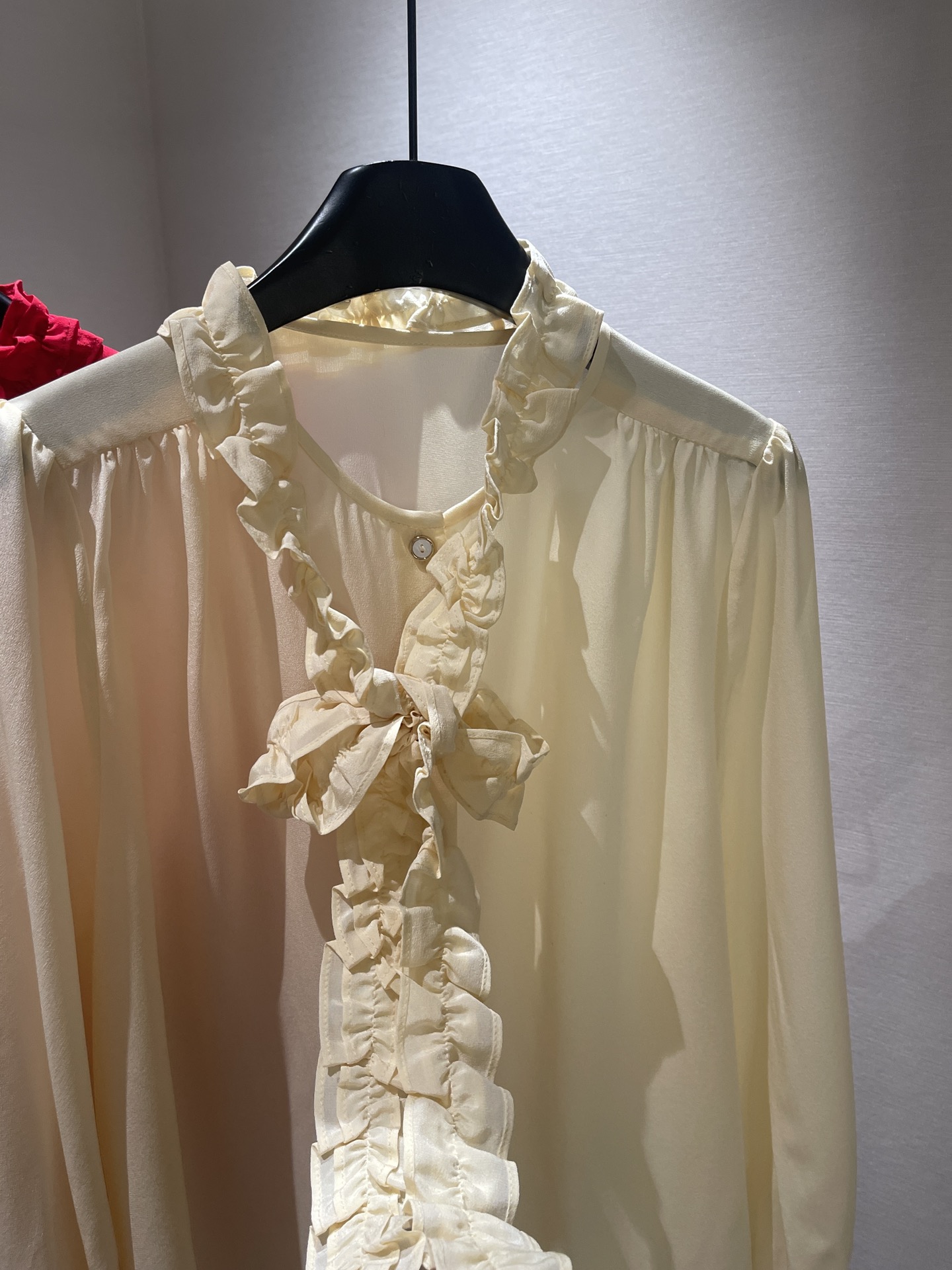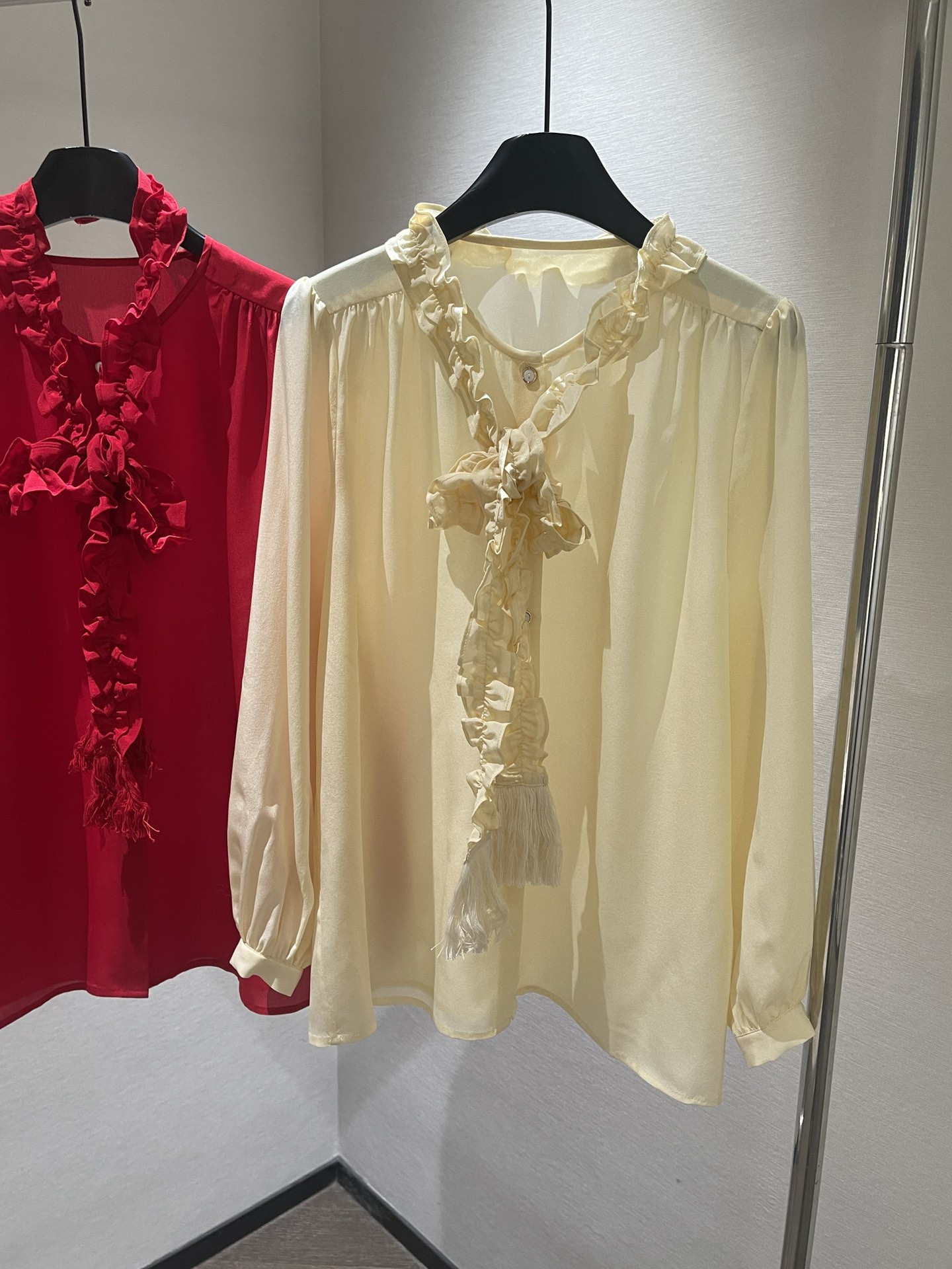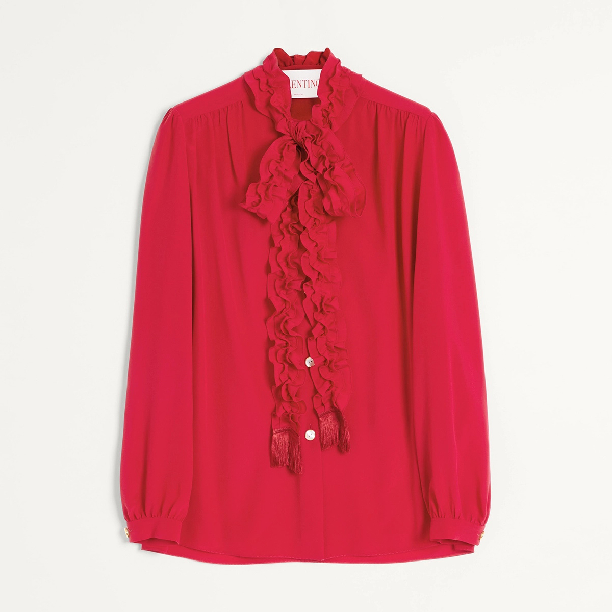 NIGO Valentino Women's Summer Solid Color Long Sleeved Bow Flutter Silk Single Breasted Shirt #nigo74765