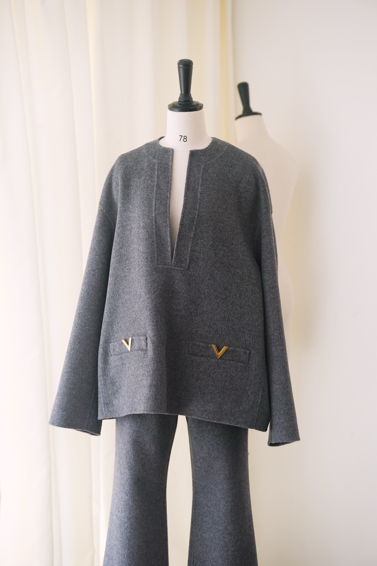 NIGO Valentino Women's Spring, Autumn And Winter V-Neck Solid Color Wool Cashmere Long Sleeve Fitted Sweater Ngvp #nigo9477