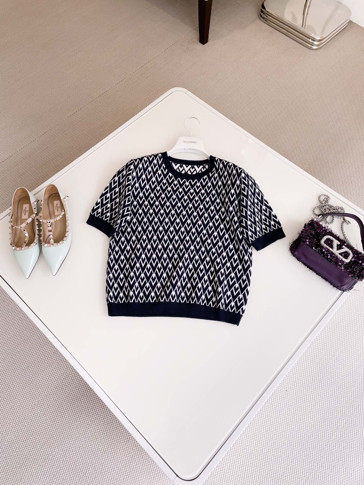 NIGO Valentino Women's Summer Letter Appliquéd Knit Round Neck Short Sleeve T-Shirt #nigo73937