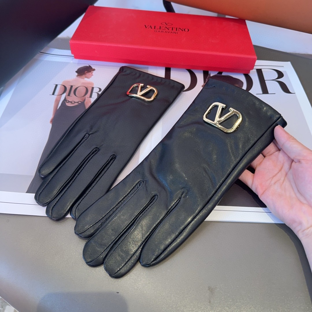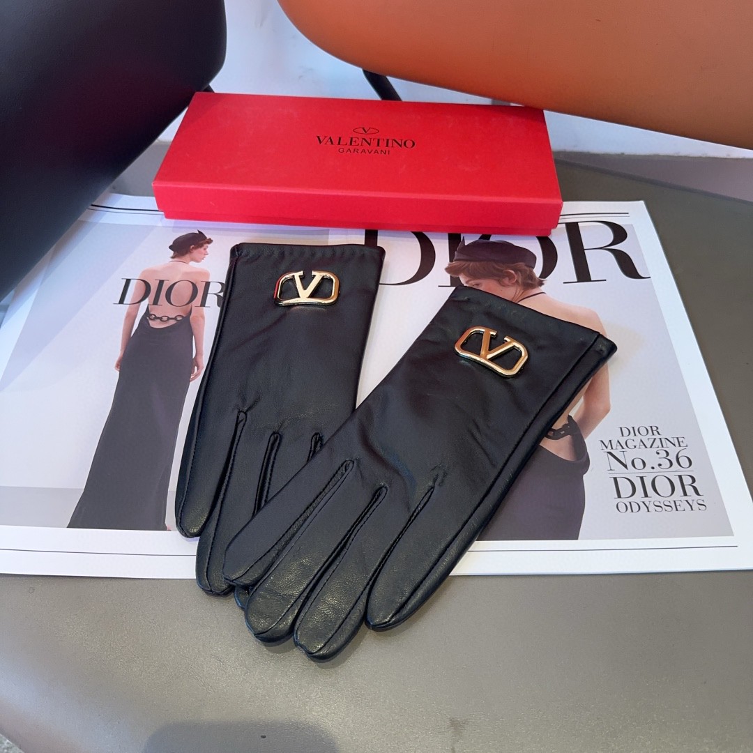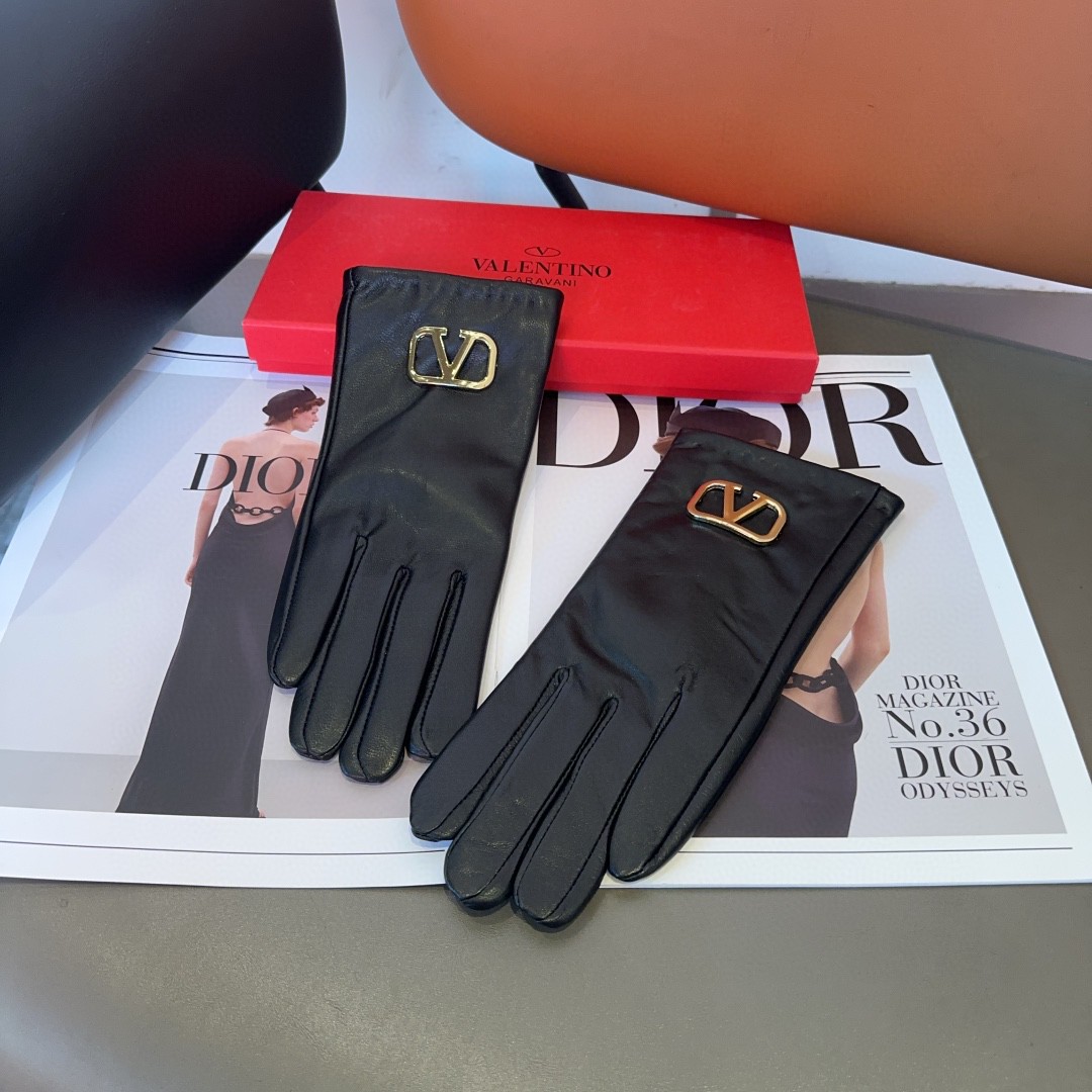 NIGO Valentino Women's Autumn and Winter Padded Lined Black Leather Women's Gloves #nigo73971