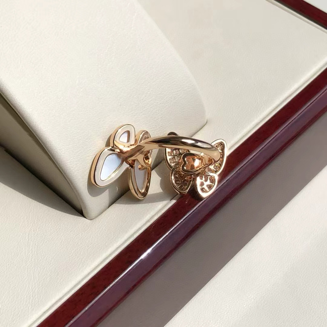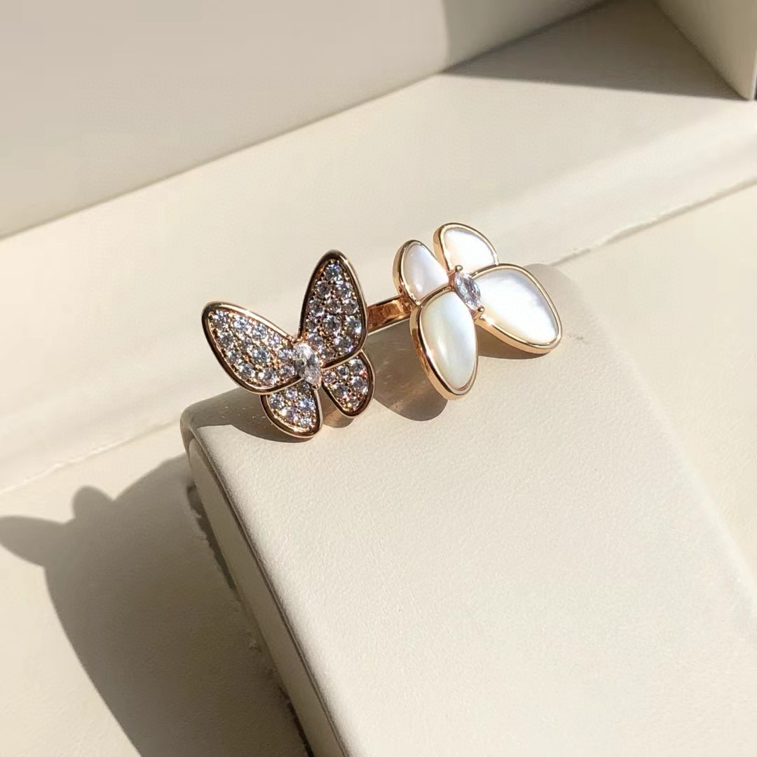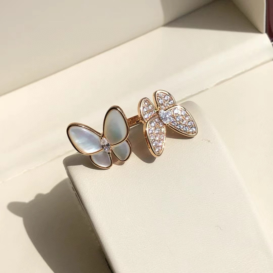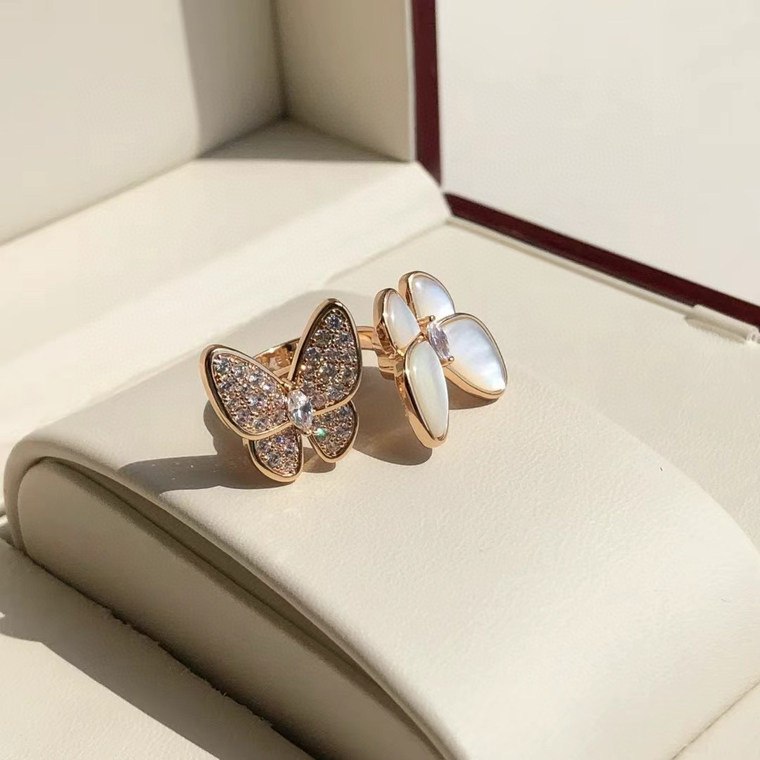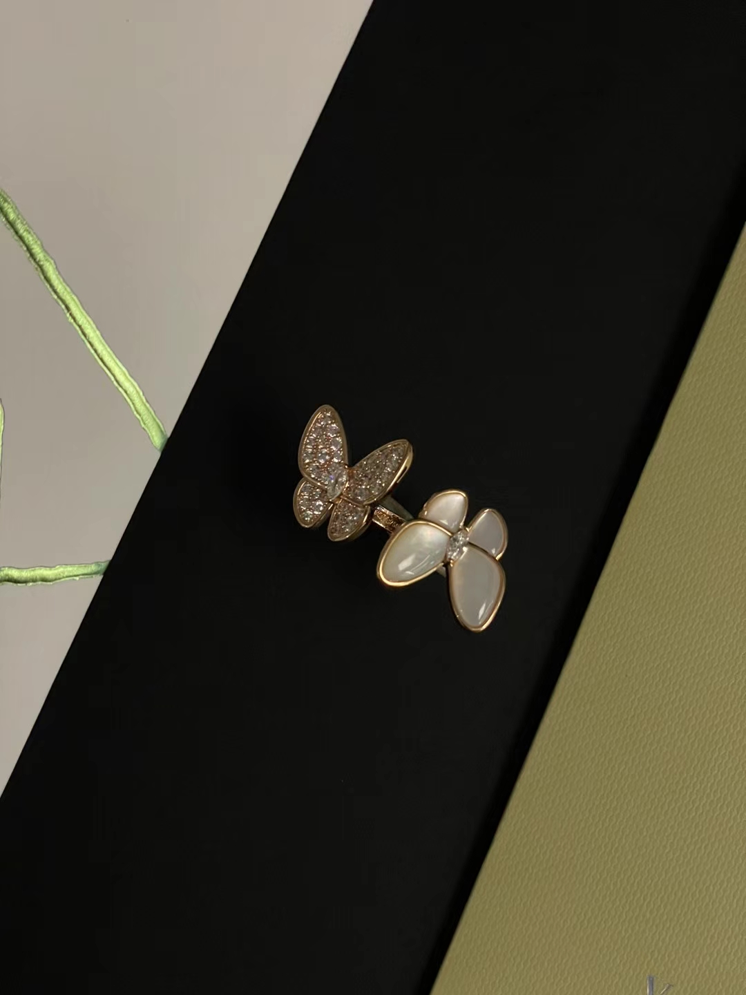 NIGO Van Cleef&Arpels Two Butterfly Women's Rose Gold Butterfly Shape Ring Jewelry Accessories #nigo75542