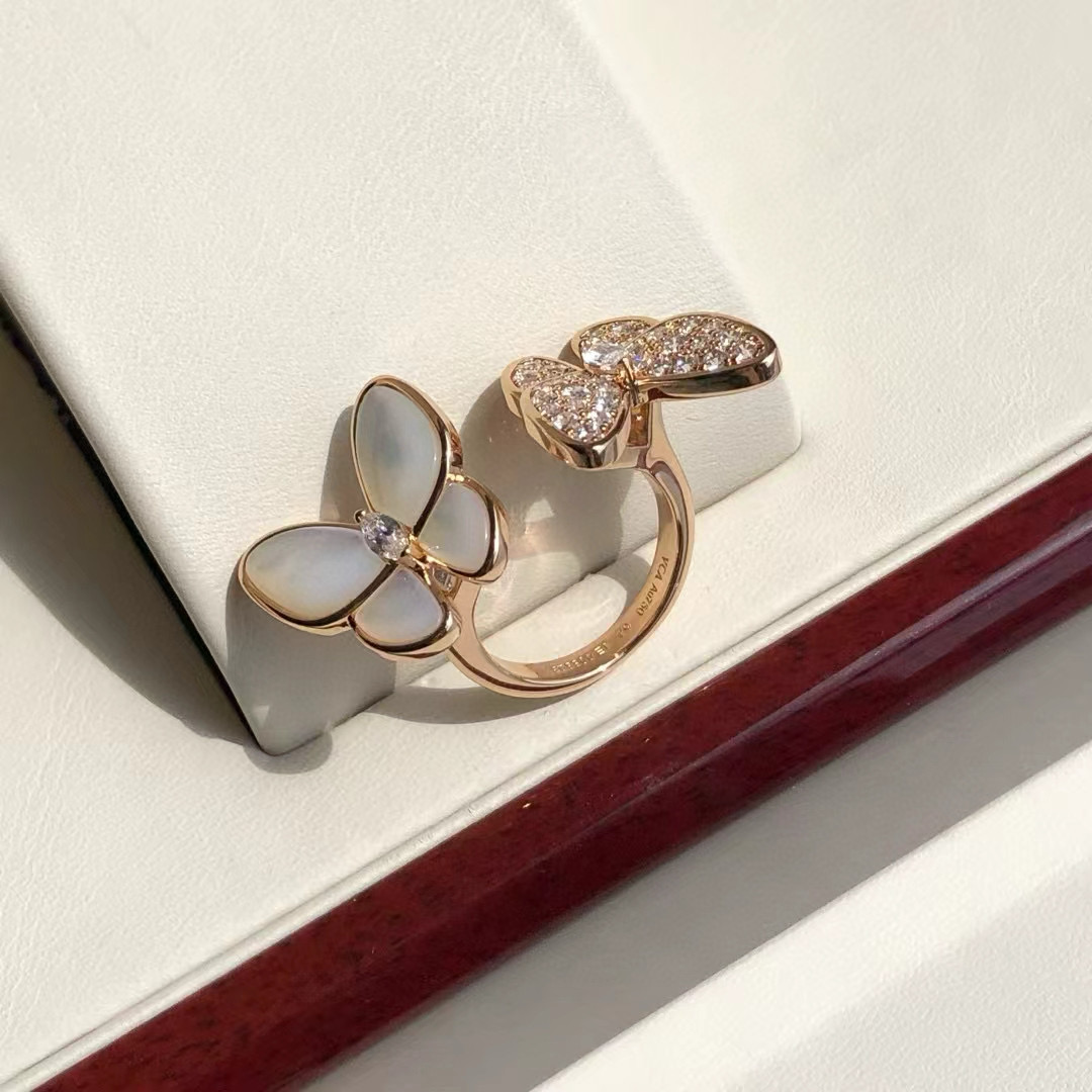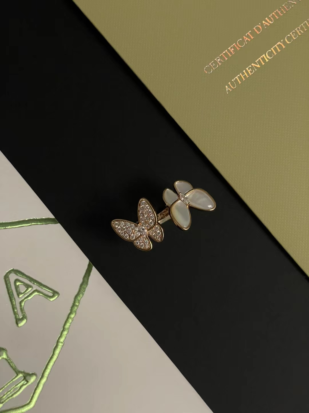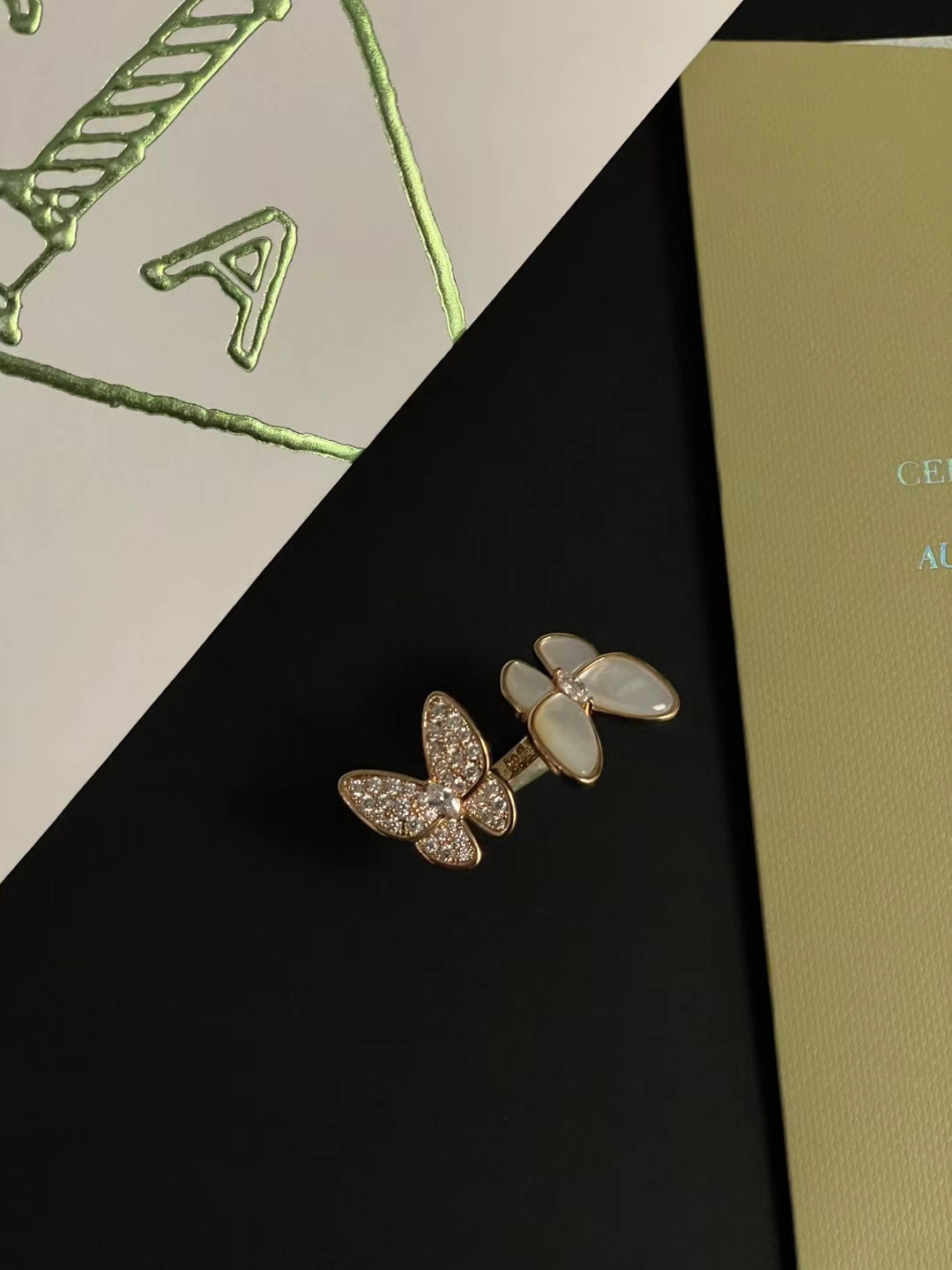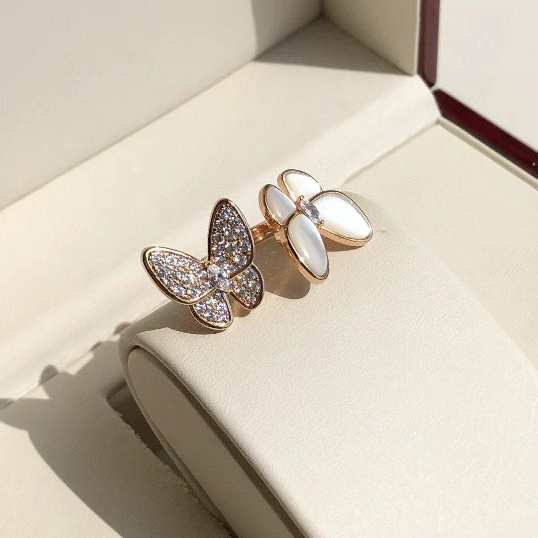 NIGO Van Cleef&Arpels Two Butterfly Women's Rose Gold Butterfly Shape Ring Jewelry Accessories #nigo75542