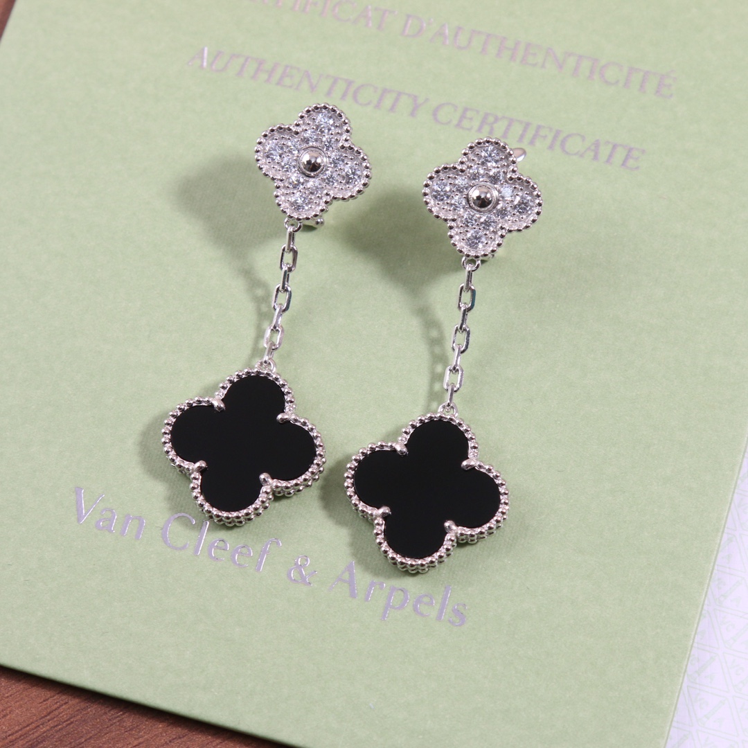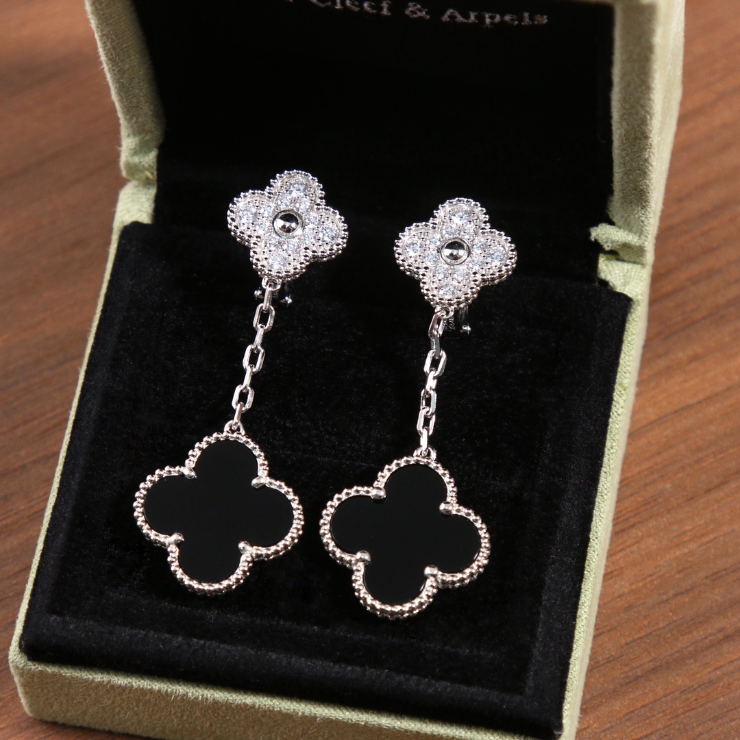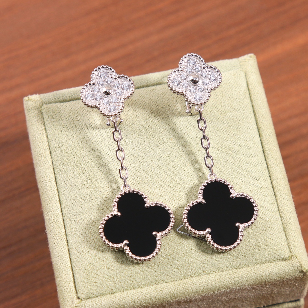 NIGO Van Cleef&Arpels Women's Fashion Black Agate Clover V Gold Material Magic Alhambra Earrings Jewelry #nigo71633